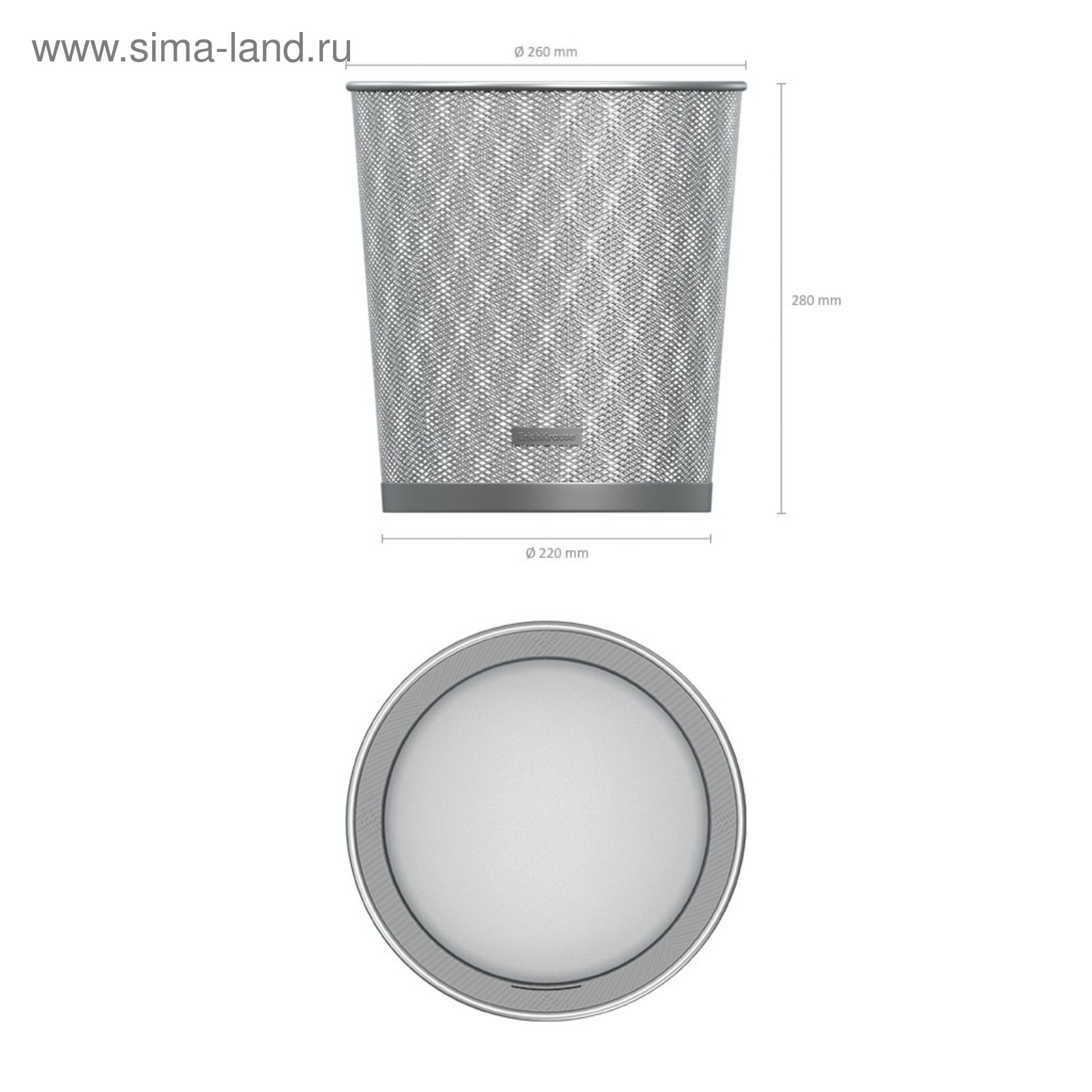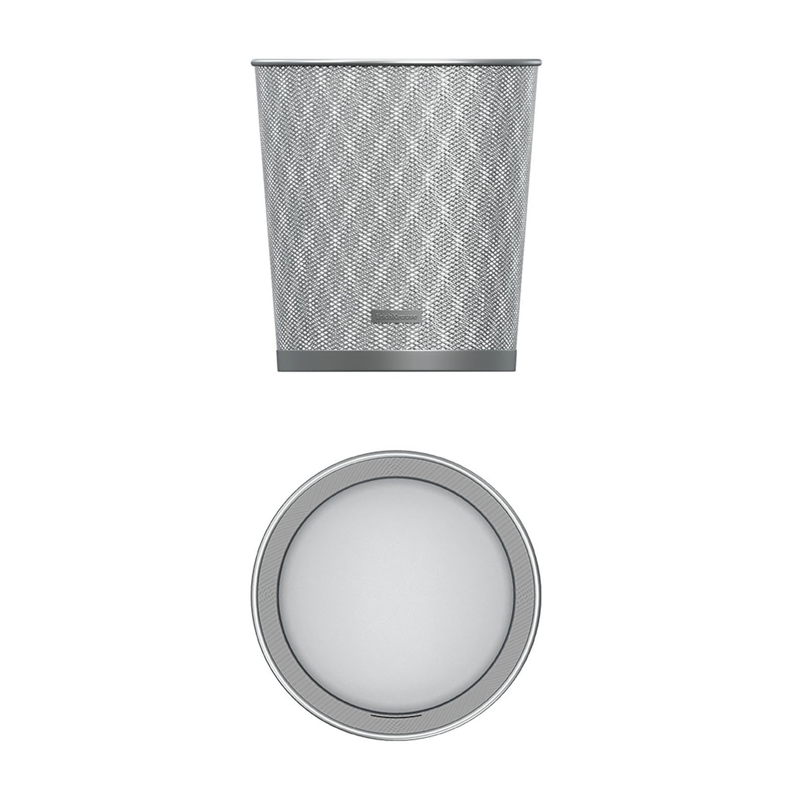 Корзина для бумаг металлическая 13 литров Erich Krause, серебристая, основание 260 мм, верх 280 мм