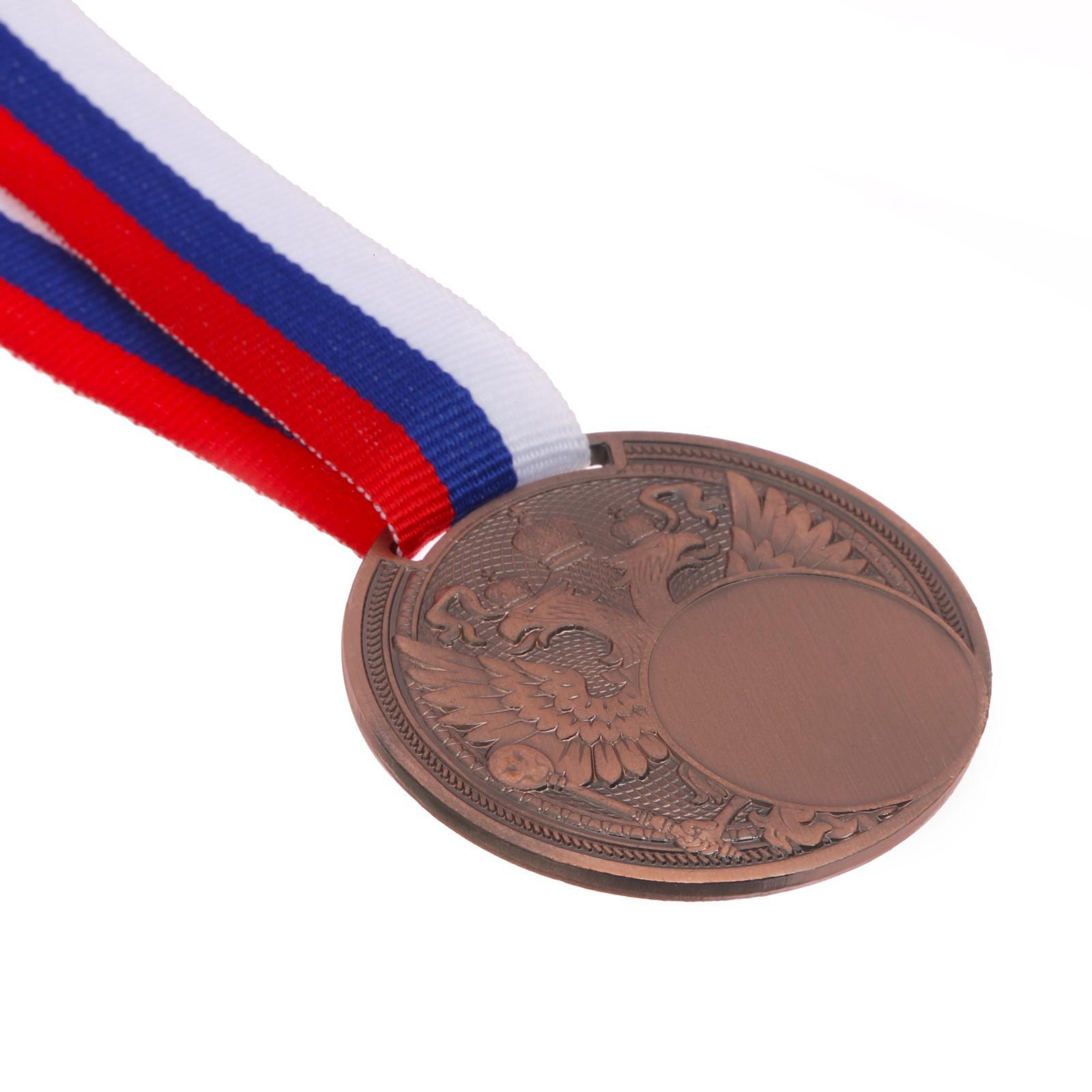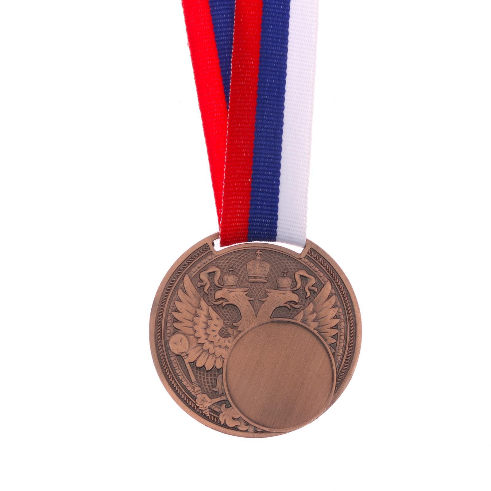 Медаль под нанесение «герб», d= 5 см. цвет бронза. с лентой. Медаль — знак отличия, которым награждают самых достойных. Она вручается лишь тем, кто проявил настойчивость и волю к победе. Каждое достижение — это важное событие, которое должно остаться в памяти на долгие годы. Любое спортивное состязание, профессиональное или среди любителей, любое корпоративное мероприятие — отличный повод для того, чтобы отметить лучших из лучших. Диаметр места под нанесение - 2, 5 см. Цвет: Бронзовый Диаметр, мм: 50 Вид упаковки: Пакет Материал: Металл Вид спорта: Универсальный Наличие символики РФ: Да Наличие ленты: Да Призовое место: 3 место  развернуть описание ▼