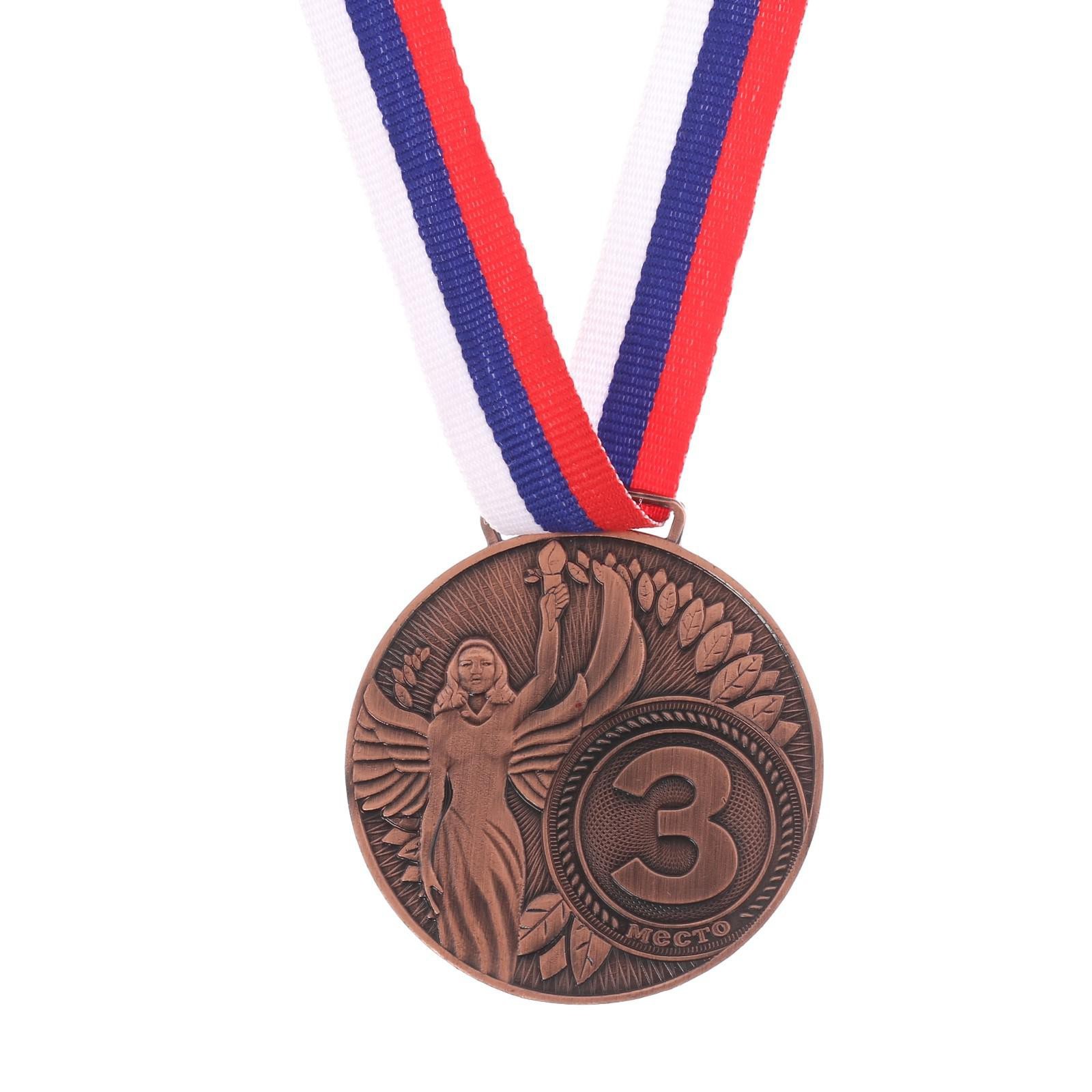 Медаль призовая «ника», d= 4,5 см. 3 место. цвет бронза. с лентой. Медаль — знак отличия, которым награждают самых достойных. Она вручается лишь тем, кто проявил настойчивость и волю к победе. Каждое достижение — это важное событие, которое должно остаться в памяти на долгие годы. Любое спортивное состязание, профессиональное или среди любителей, любое корпоративное мероприятие — отличный повод для того, чтобы отметить лучших из лучших. Цвет: Бронзовый Вид упаковки: Пакет Материал: Металл Вид спорта: Универсальный Наличие символики РФ: Нет Наличие ленты: Да Призовое место: 3 место  развернуть описание ▼