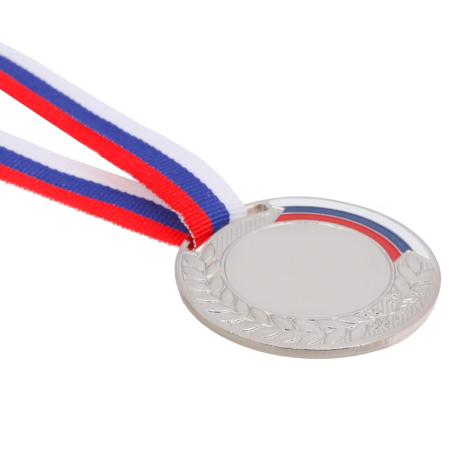 Медаль под нанесение «лавры», D= 5 см. цвет серебро. с лентой