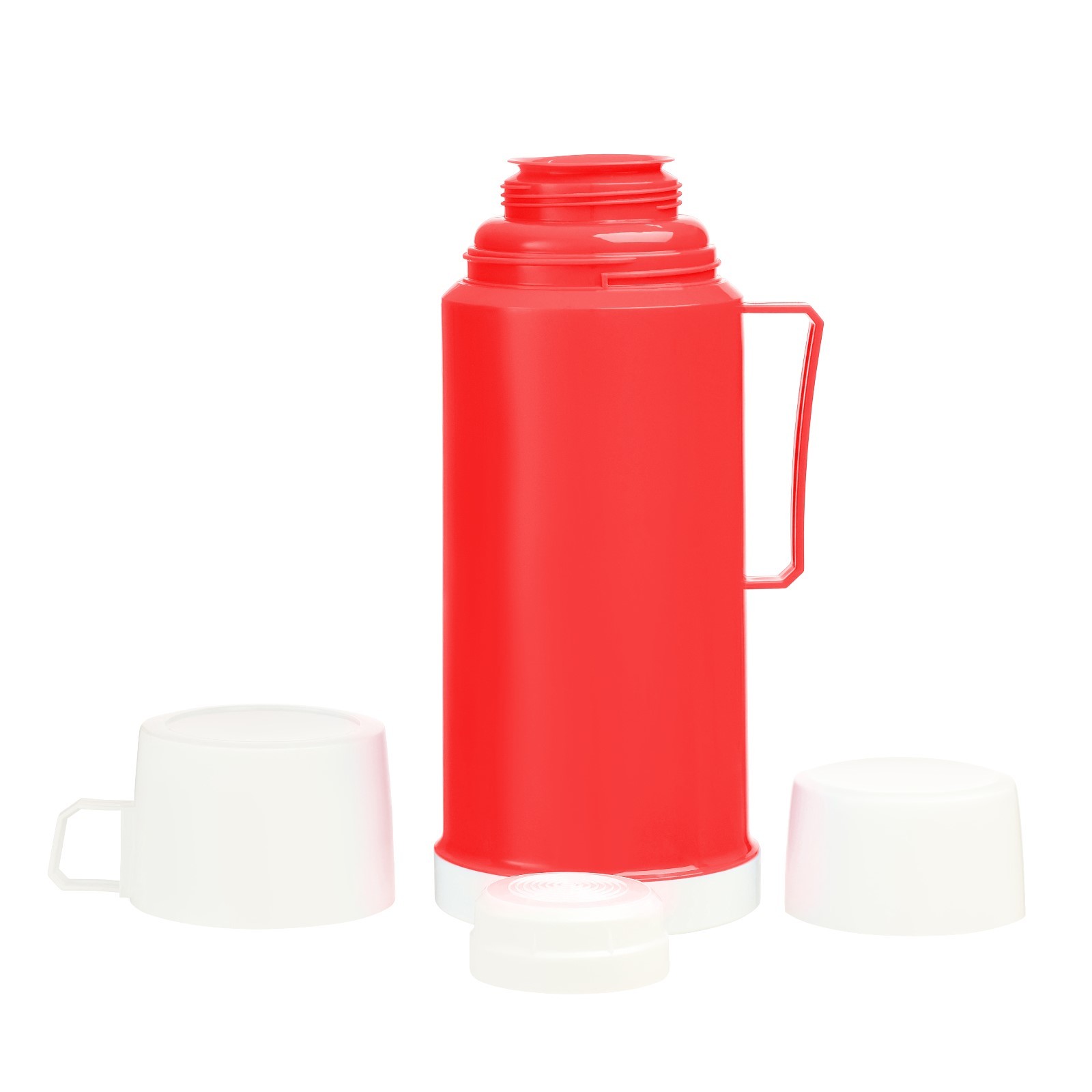 Термос со стеклянной колбой "классик" с 1 кружкой и 1 чашкой, 1 л, 13 х 29 см, красный