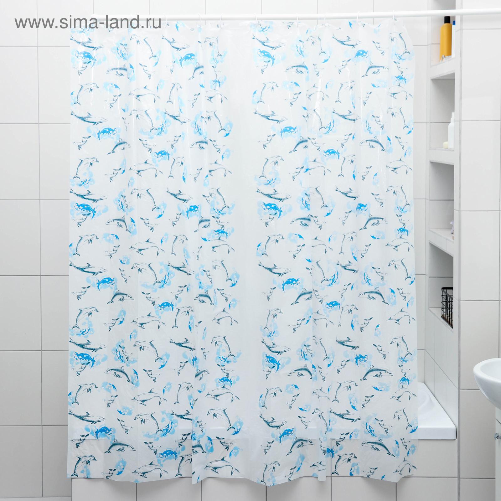 Штора для ванной «дельфины», 180x180 см, полиэтилен, цвет белый