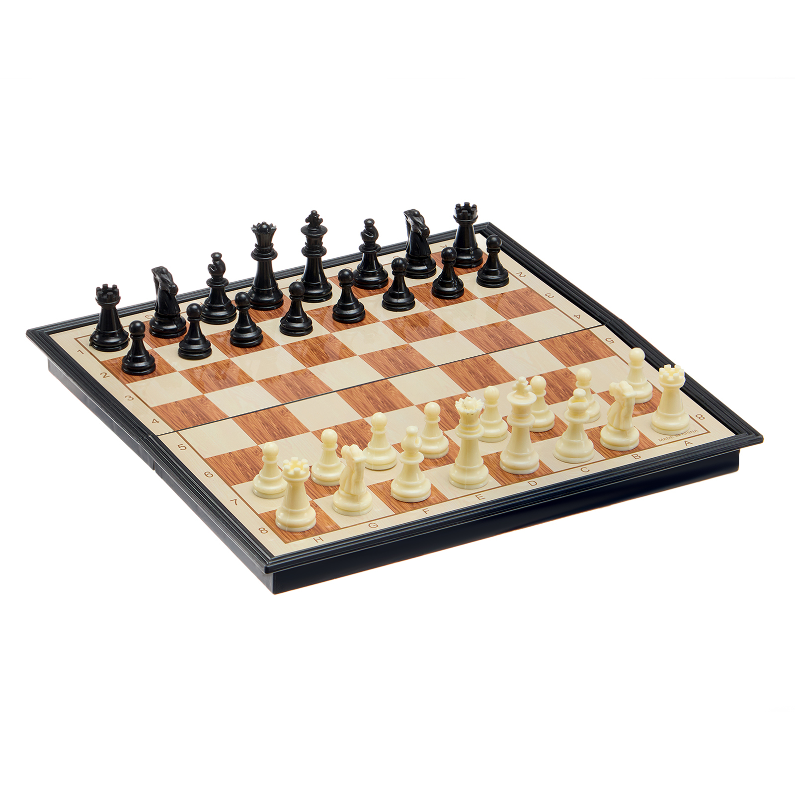 Шахматы настольные магнитные, 24 х 24 см. Размер, см: 24 х 24 Материал: Пластик Вид: Шахматы (доска + фигуры) Особенности: Без особенностей Материал шашек, шахмат: Пластик Материал игральной доски: Пластик  развернуть описание ▼