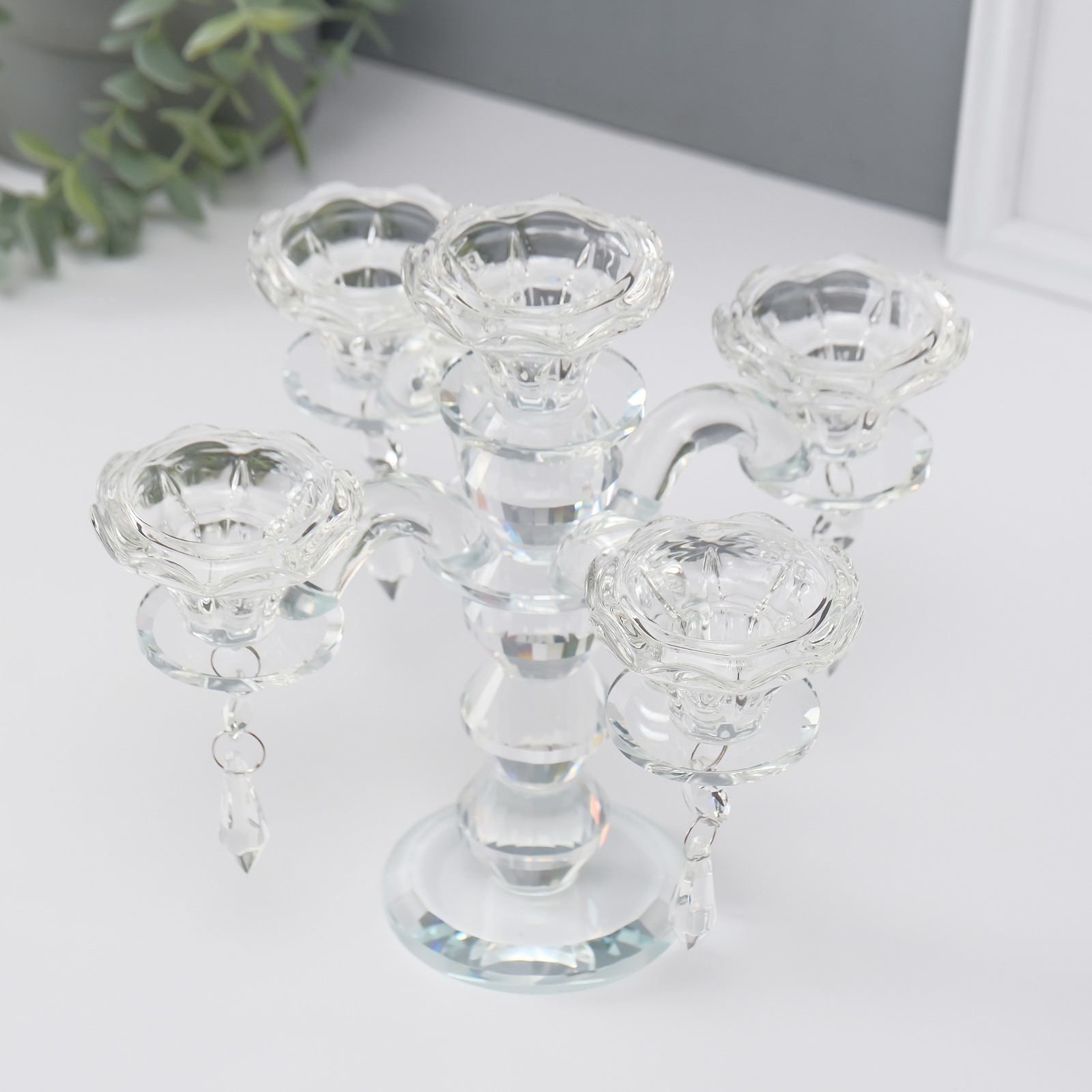 Стеклянный подсвечник на 5 свечей «канделябр», 19 23 23 см