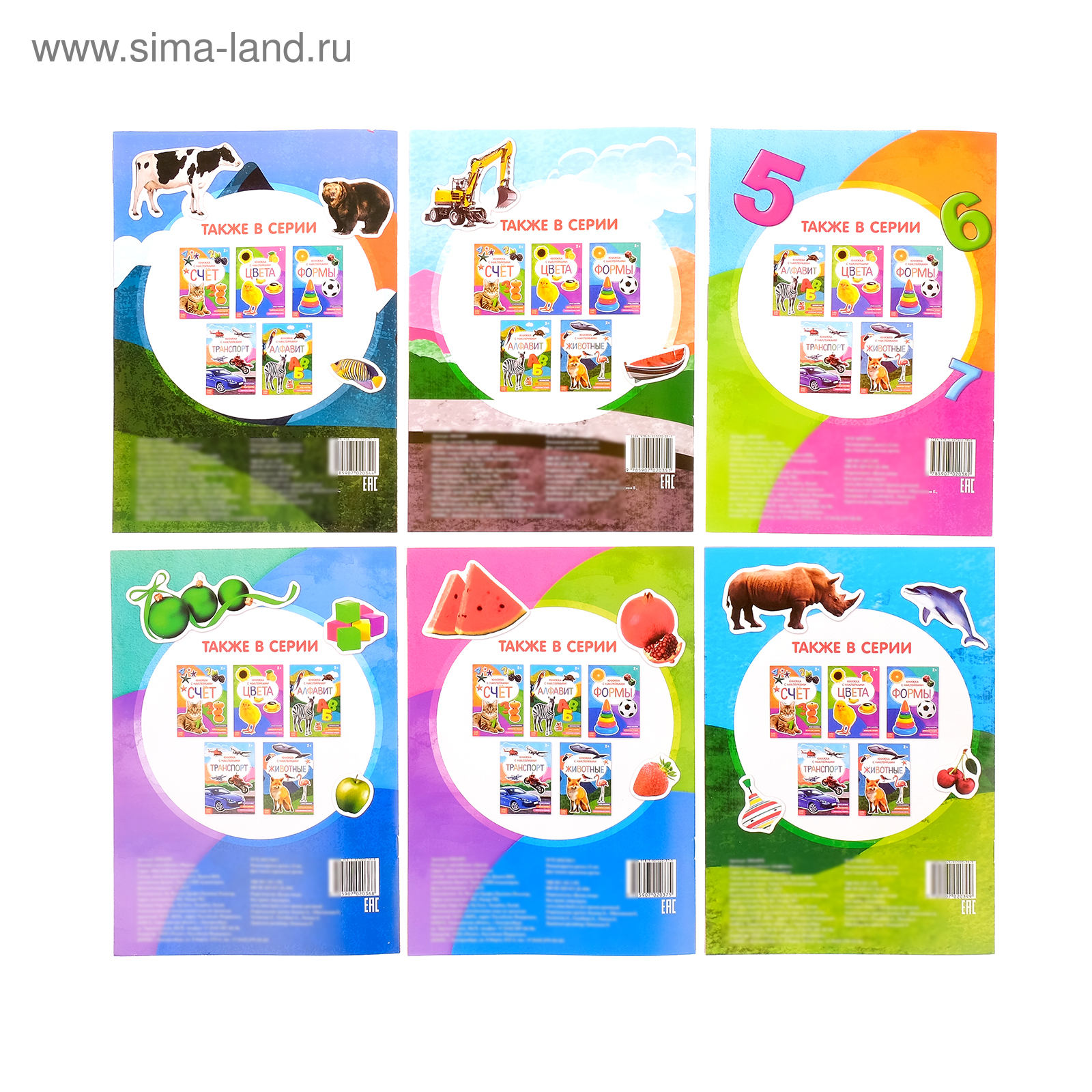Книги с наклейками, набор №2, 6 шт. по 12 стр.