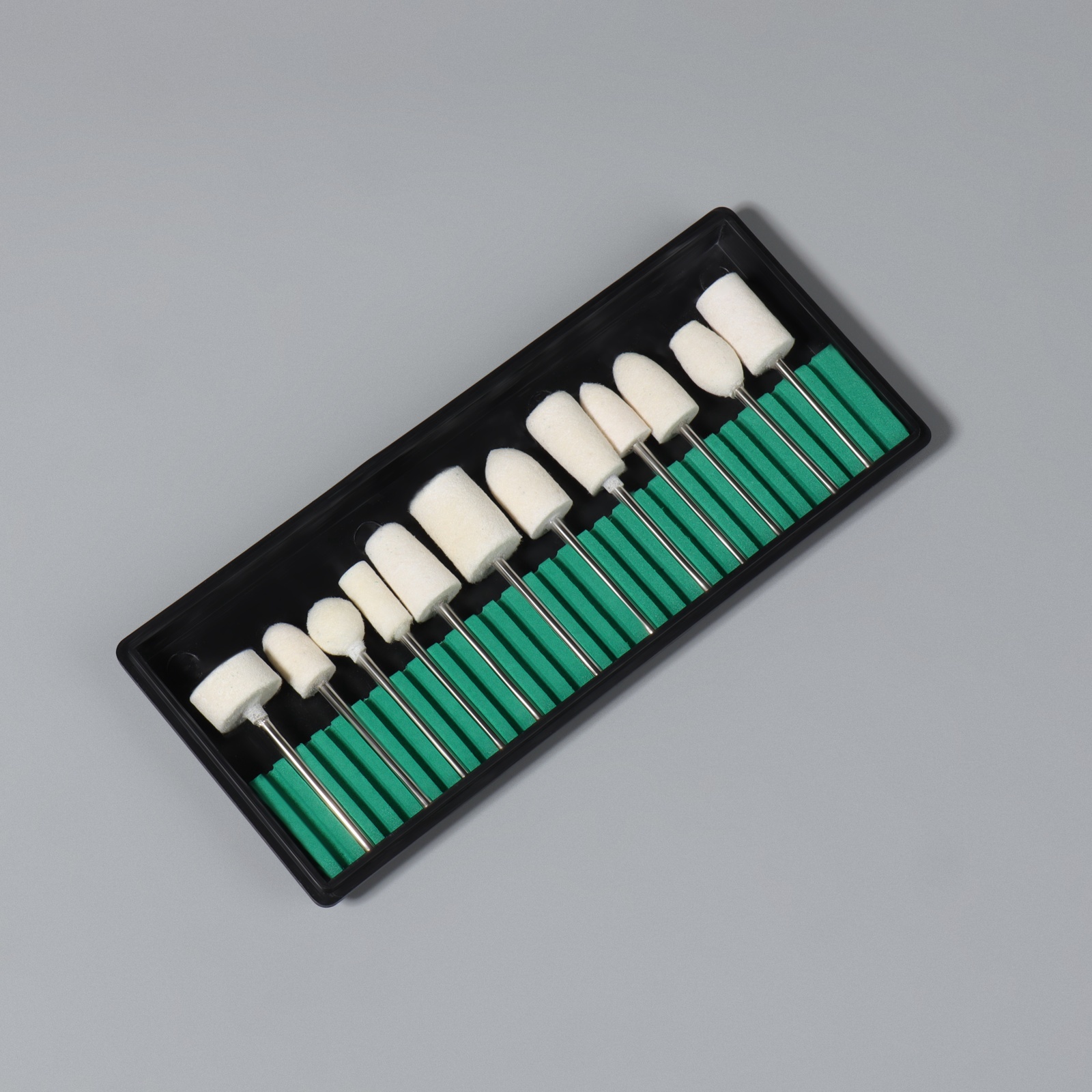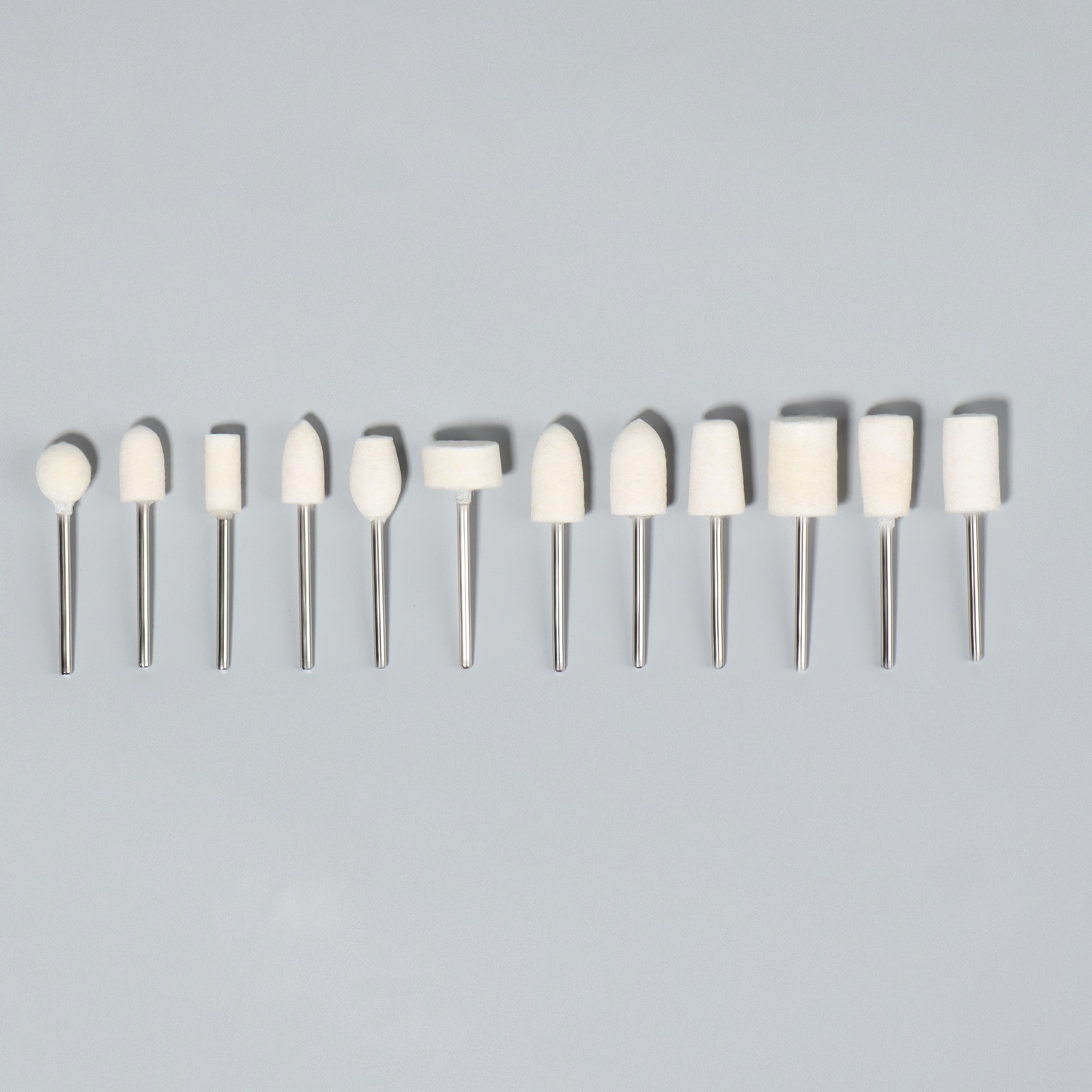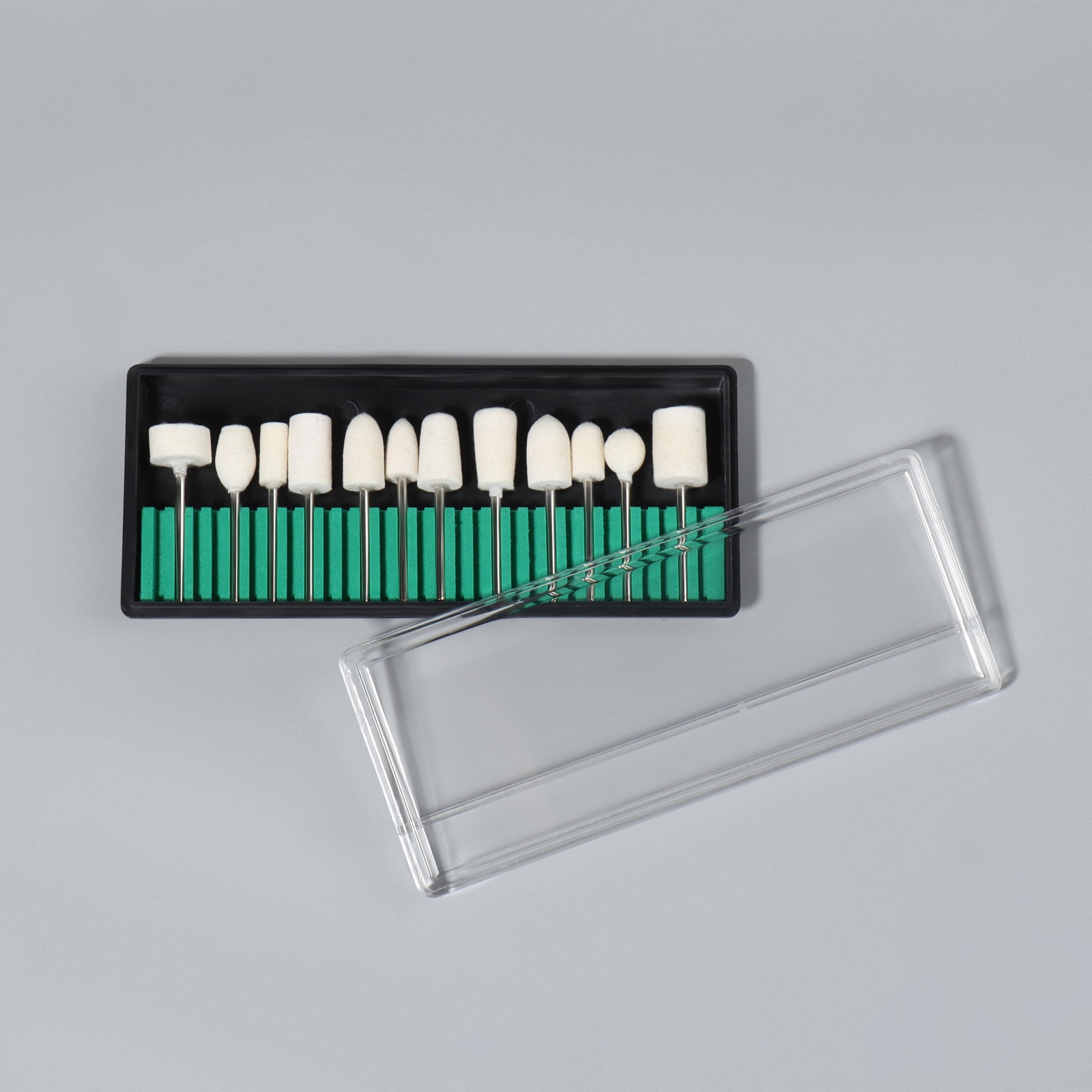 Фрезы войлочные для маникюра в пластиковом органайзере, 12 шт.