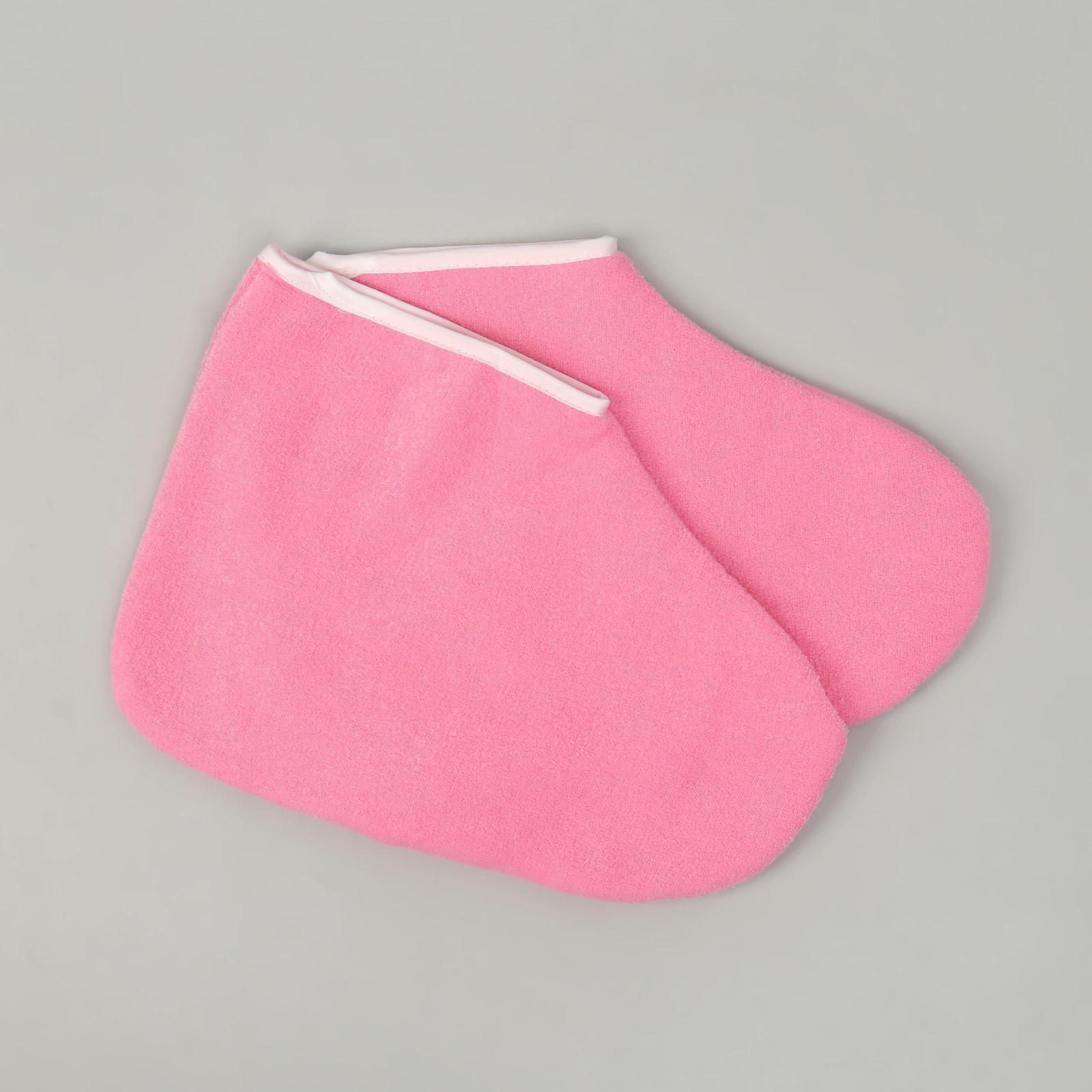 Носочки для парафинотерапии, 28 21 см, розовые. Махровые носочки помогают усилить эффект от парафинотерапии, скрабирования и других спа-процедур. После использования изделий вы сможете ощутить, какой ухоженной, мягкой и нежной стала кожа. Многоразовые носочки можно стирать, при этом они не потеряют форму. Изделия универсального размера. Для удобства фиксации в верхней части предусмотрена липучка. Способ применения С помощью пемзы или скраба удалите ороговевшие клетки кожи.Нанесите средство для ухода: питательный крем или сыворотку.При использовании горячего парафина:опустите ногу в растопленный парафин в парафиновой ванне, вытащите и повторите от 3 до 6 раз;оберните ногу полиэтиленовой плёнкой или наденьте одноразовые полиэтиленовые носочки, затем махровые носки;через 20–30 минут снимите остатки средства влажным прохладным полотенцем.При использовании холодного парафина:нанесите плотный слой крем-парафина;оберните ногу полиэтиленовой плёнкой или наденьте одноразовые полиэтиленовые носочки, затем махровые носки;через 15–20 минут снимите остатки средства сухой салфеткой.Нанесите на ногу крем и сделайте лёгкий массаж.Набор:Нет|Цвет:Розовый|Детские:Нет|Вид упаковки:Пакет|Рисунок:Нет|Материал:Хлопок|Материал:Полиэстер|Вид:Носочки для педикюра|Темпер. ограничение НЕ НИЖЕ :0|Назначение:Увлажнение|Назначение:Питание и восстановление|Особенности:Текстильные|Особенности:С пропиткой|Страна:Китай  развернуть описание ▼