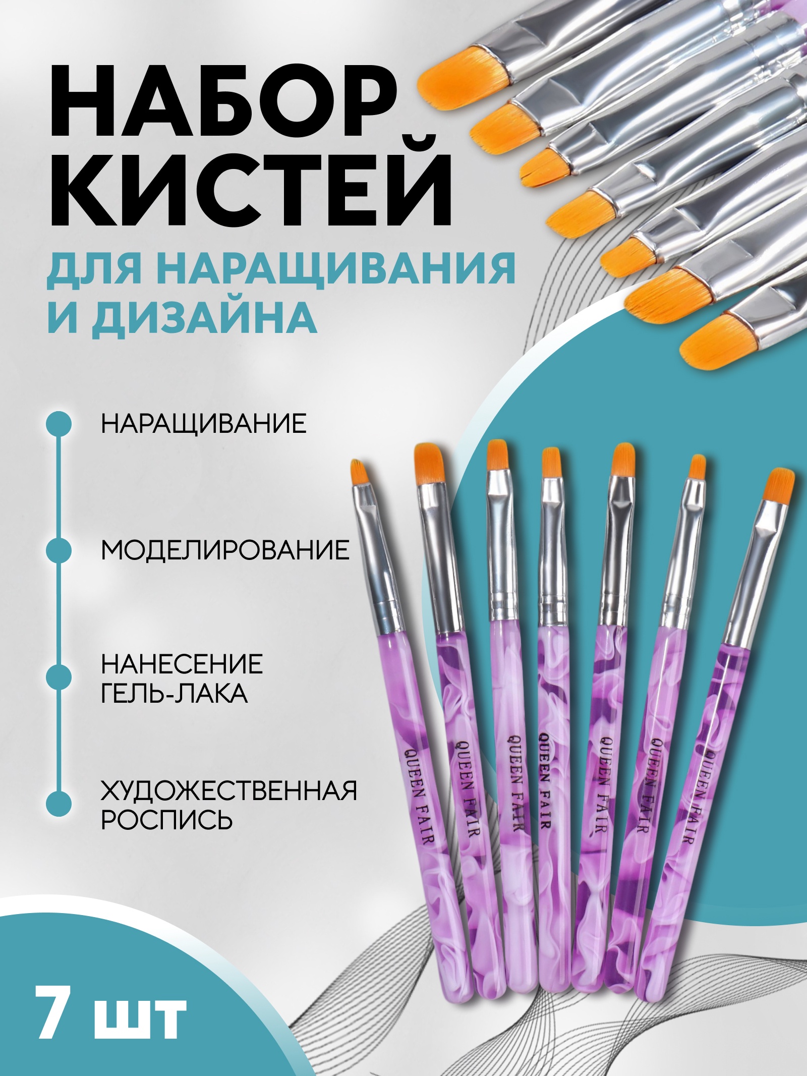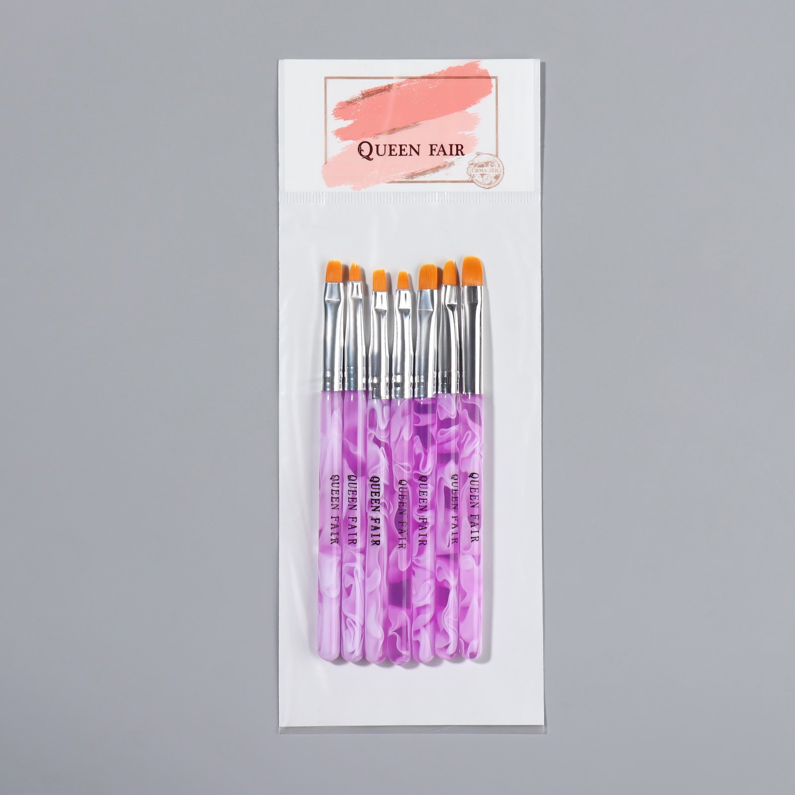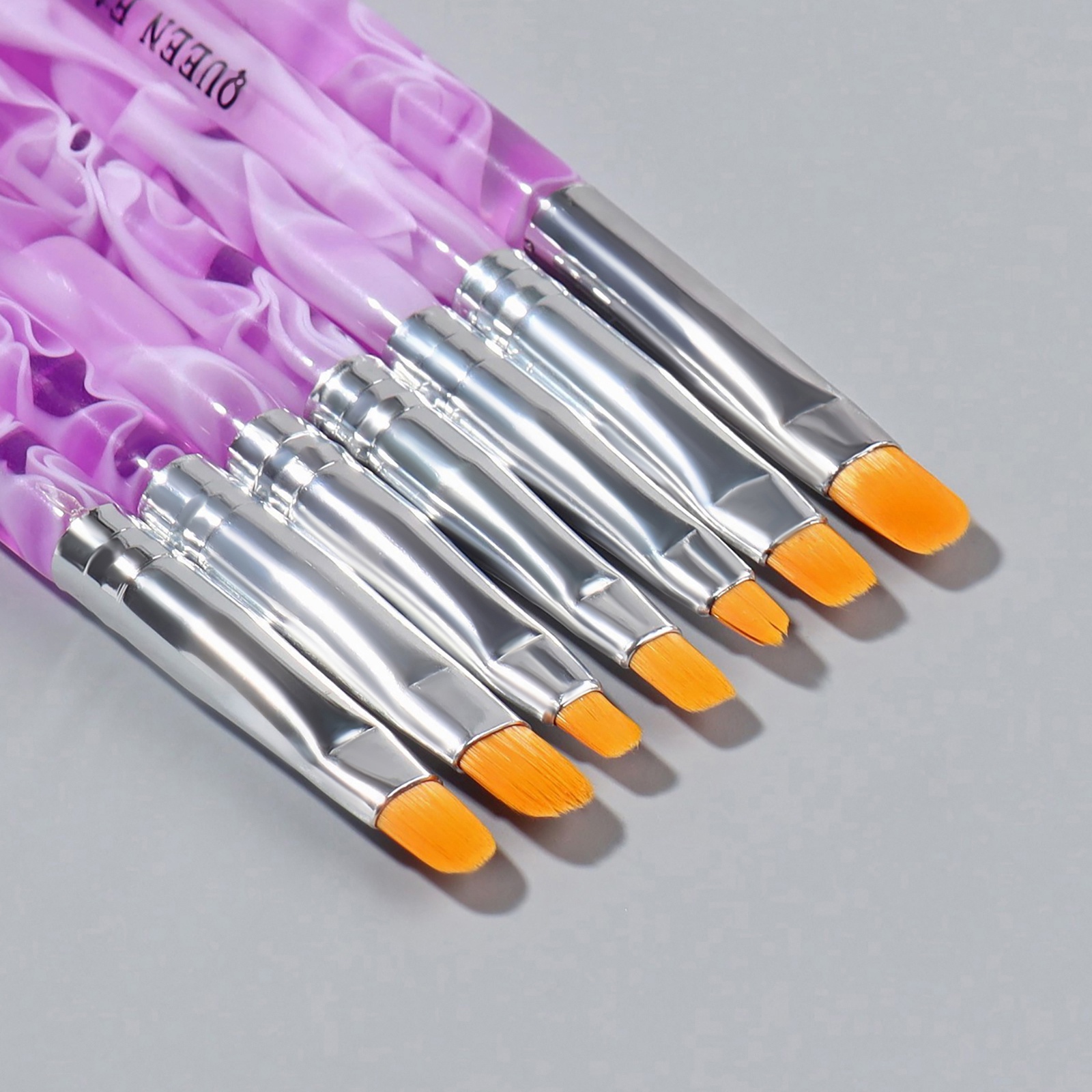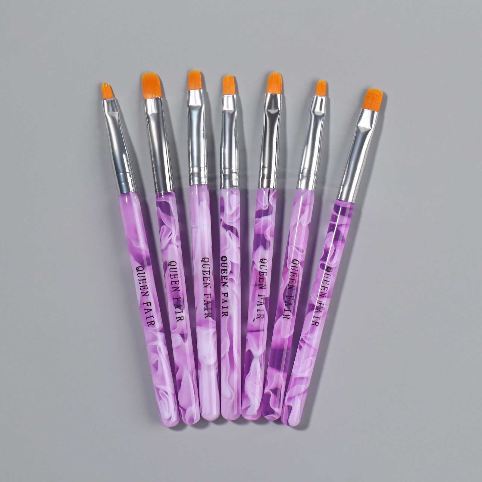 Набор кистей для наращивания и дизайна ногтей, плоские, 7 шт., 14 см, №2/4/6/8/10/12/14, сиреневый