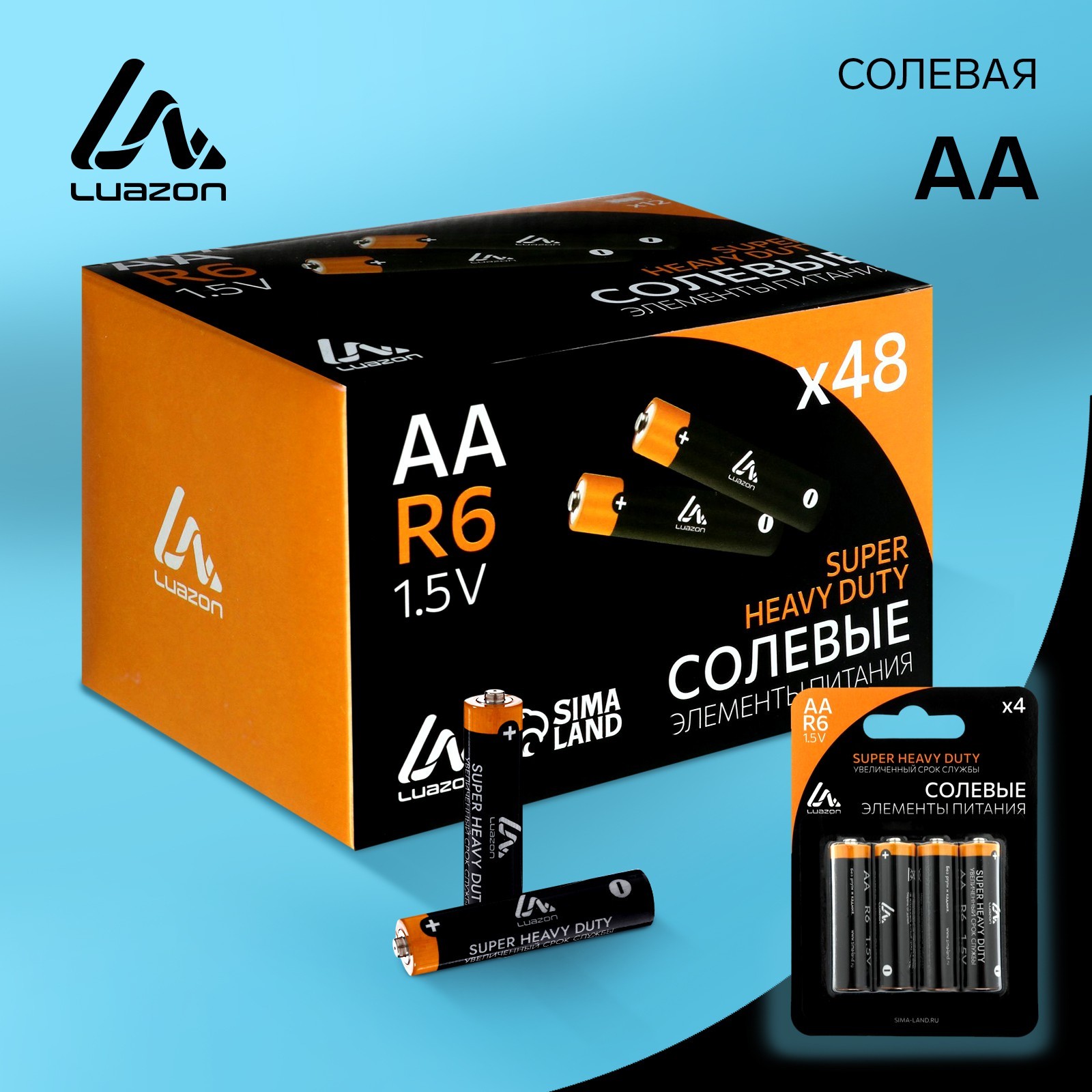 Батарейка солевая Luazon Super Heavy Duty, Aa, R6, блистер, 4 шт