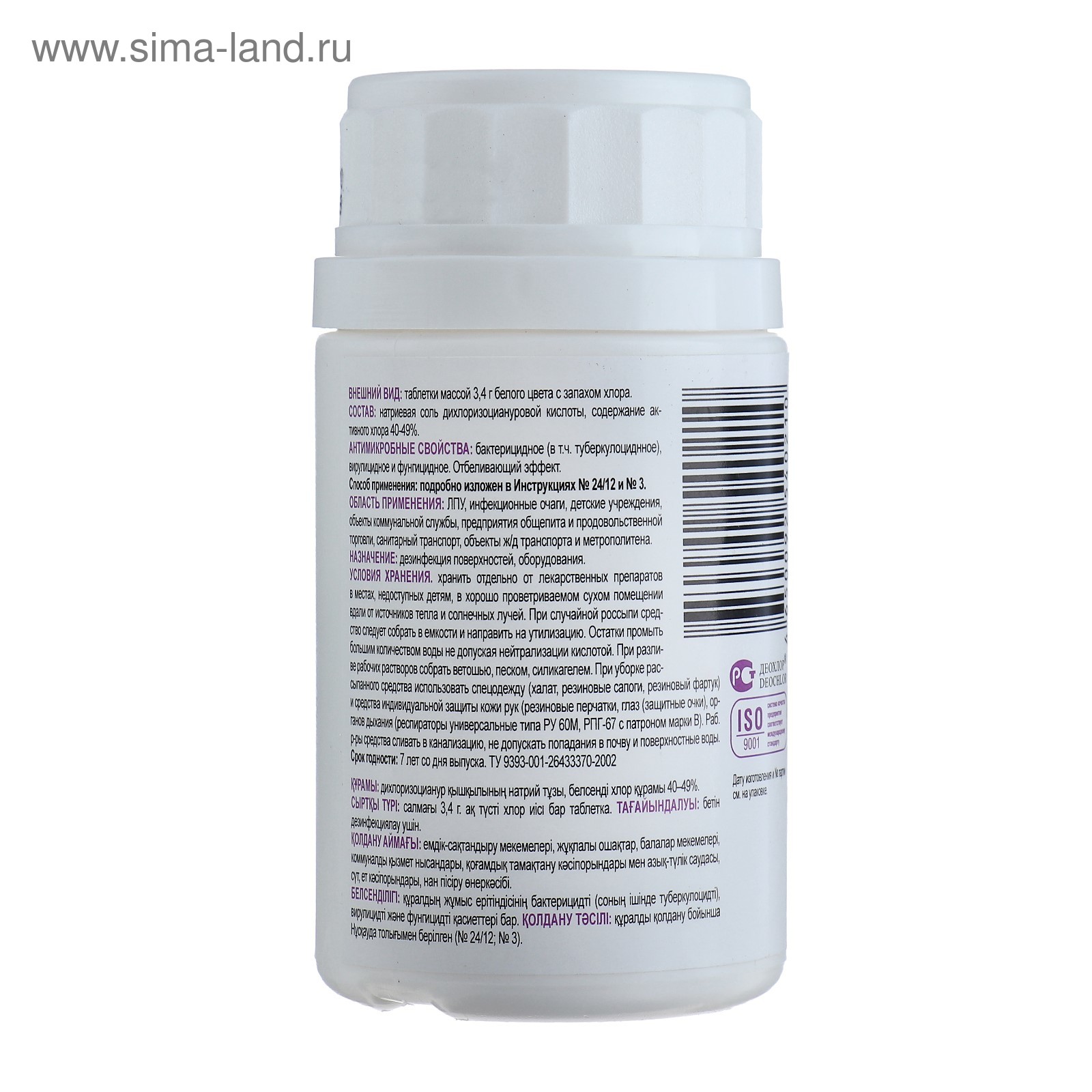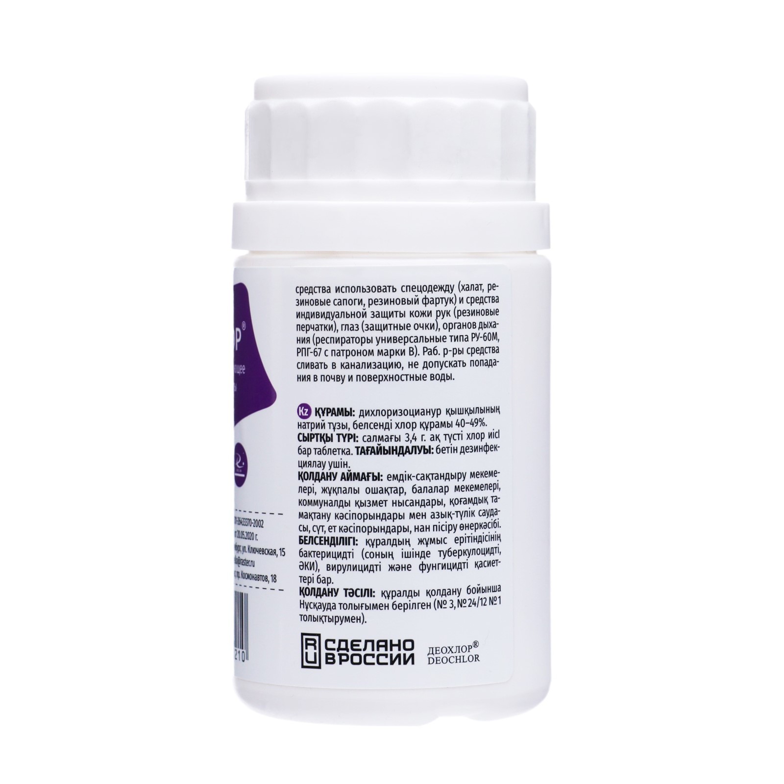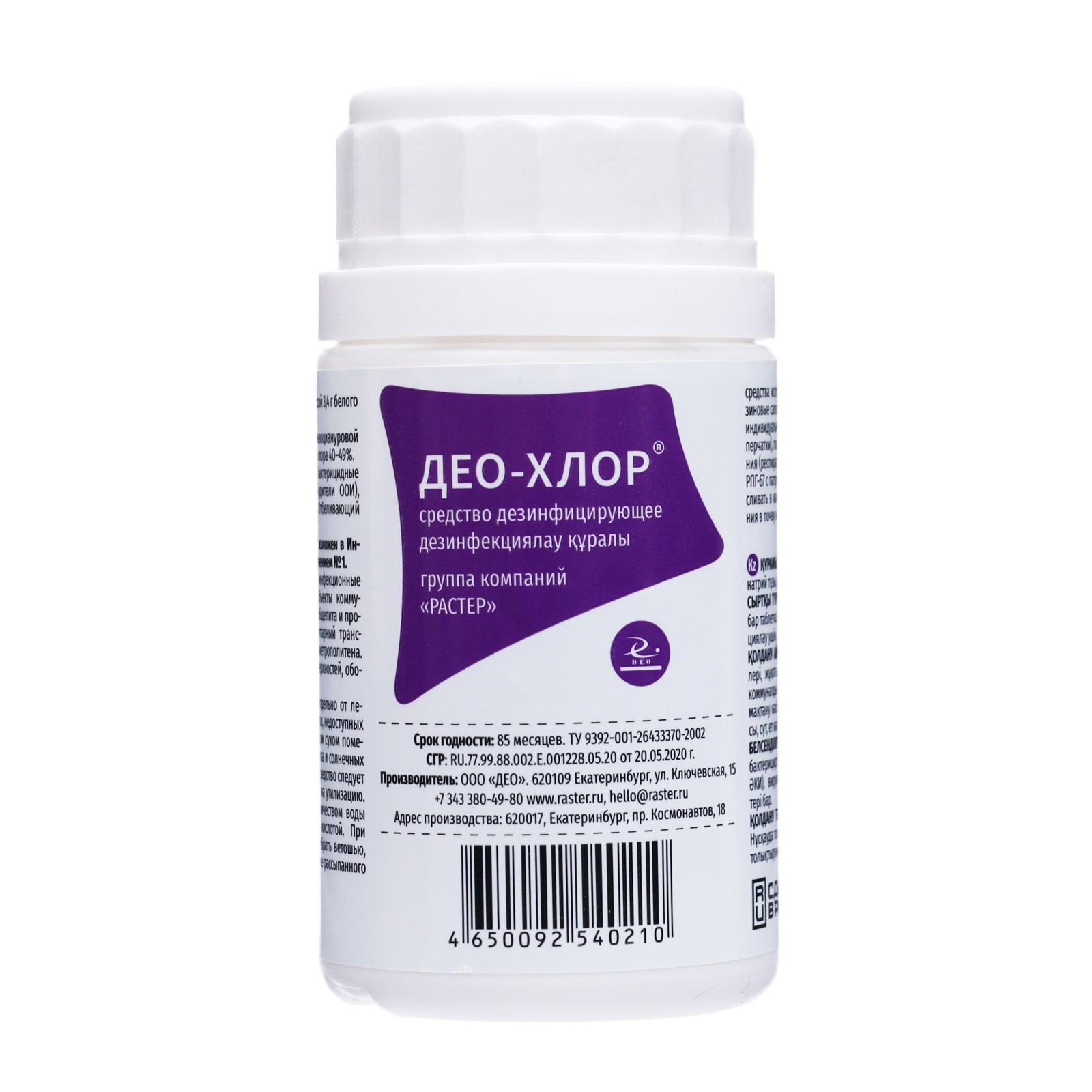 Дезинфицирующее средство с моющим эффектом «део-хлор», 25 таблеток по 3.4 г. Препарат «Део-Хлор» обладает дезинфицирующими и моющими свойствами. Не имеет резкого запаха хлора. Средство разрешено использовать в детских учреждениях. Назначение: дезинфекция и мытьё яиц (в том числе на пищеблоках ЛПО), поверхностей в помещениях, предметов обстановки (в том числе систем вентиляции и кондиционирования), санитарно-технического оборудования, игрушек, белья, посуды, предметов ухода за больными, изделий медицинского назначения, обработка медицинских отходов, биологических жидкостей, отбеливание белья;проведение текущей и заключительной дезинфекции и генеральной уборки;обеззараживание воздуха (в том числе для борьбы с плесенью) и поверхностей в помещениях аэрозольным методом при инфекции любой этиологии;обеззараживание крови на твёрдых поверхностях и тканях. Особенности средства: безопасно для персонала и пациентов;позволяет устранить загрязнения и продезинфицировать поверхность одновременно;разрешено применять в отделениях неонатологии и ДОУ как для текущей, так и для заключительной дезинфекции;имеет отдельные зарегистрированные режимы дезинфекции и отбеливания белья;есть режим дезинфекции яиц;срок годности средства (таблетки и гранулы) в невскрытой упаковке производителя — 85 месяцев. Срок годности рабочих растворов средства — 9 суток;выпускается в форме таблеток, что позволяет точно дозировать препарат и исключить ошибки при его разведении;смывать раствор с поверхностей не требуется. Свойства «Део-Хлор»: бактерицидные (в отношении грамотрицательной и грамположительной микрофлоры, в том числе возбудителей туберкулёза (Mycobacterium B5, Mycobacterium terrae), возбудителей внутрибольничных инфекций, особо опасных инфекций (чума, холера, туляремия, сибирская язва));вирулицидные (в отношении возбудителей энтеровирусных инфекций — полиомиелита, Коксаки, ВИЧ, гриппа, в том числе птичьего, свиного);фунгицидные (в отношении грибов и плесеней, в том числе родов Кандида, Трихофитон, Аспергиллюс, Мукор и прочих);овоцидные (эффективно против возбудителей паразитарных инфекций). Производитель: ООО «ДЕО», Россия. Действующее вещество: натриевая соль дихлоризоциануровой кислоты, ПАВ. parts count: 0 Вес, кг/Объём, л: 0.1 Вес, г/Объём, мл: 85 Объём, мл: 85 Форма выпуска: Таблетки Назначение: Бытовые Вид: Хлоросодержащиее  развернуть описание ▼