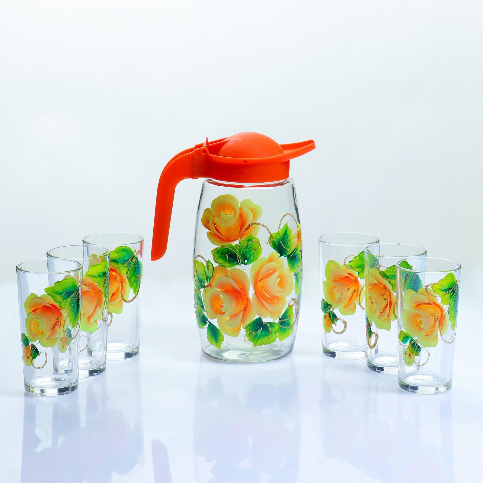 Набор для сока "розалия", художественная роспись, 6 стаканов, 1250/200 мл, микс