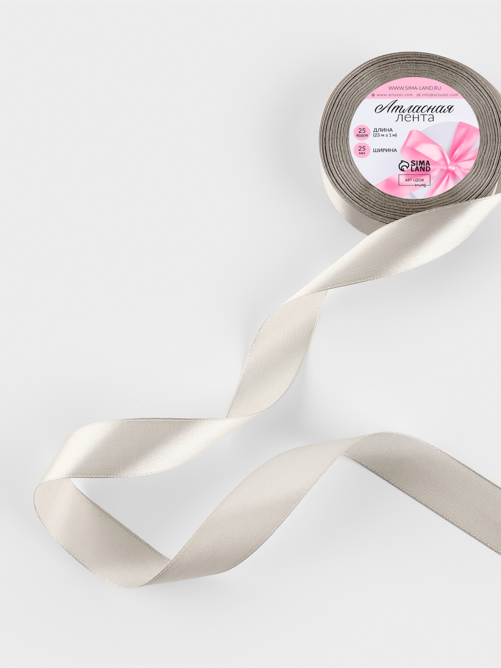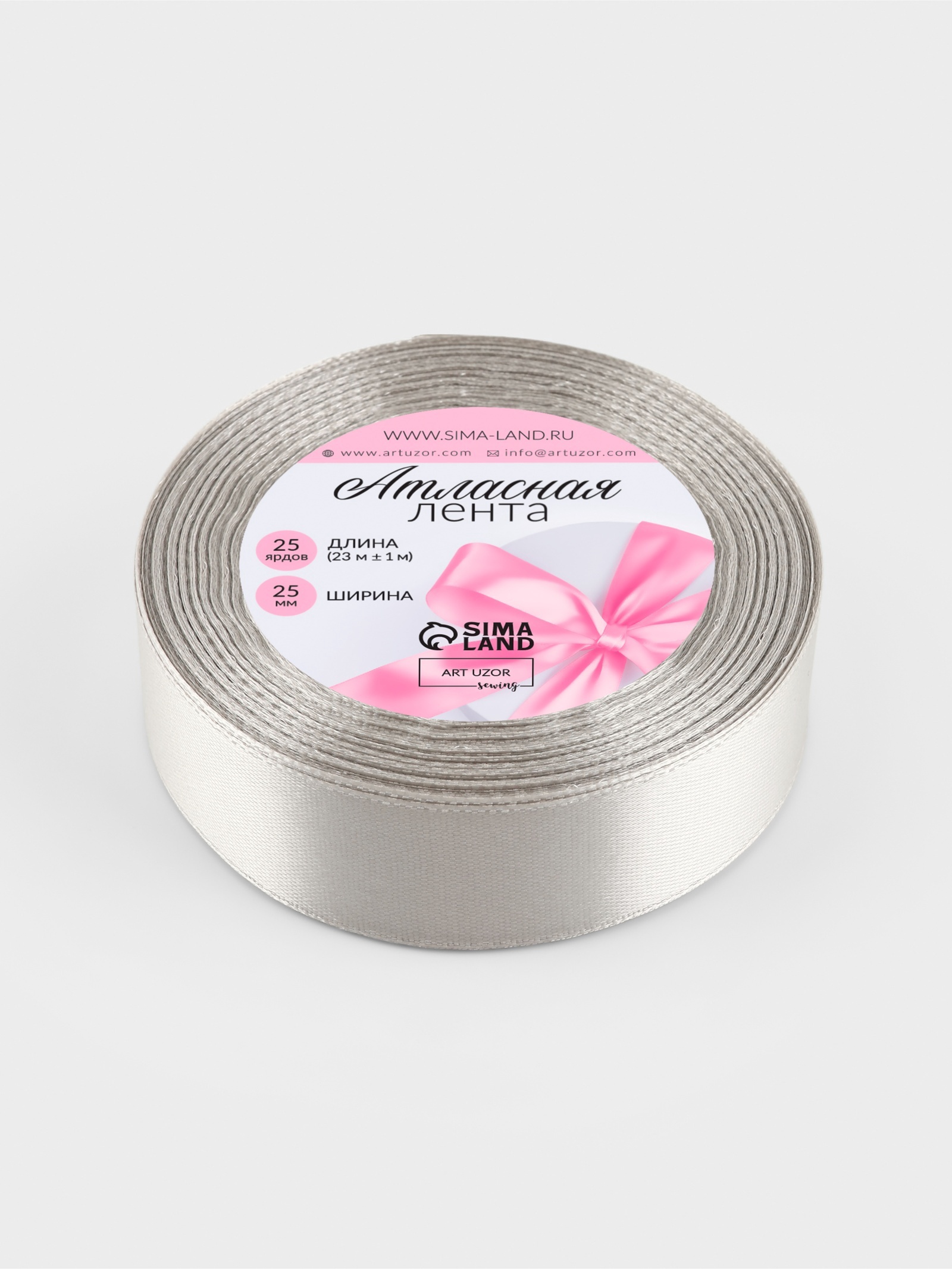 Лента атласная, 25 мм, 23±1 м, светло-серая №179