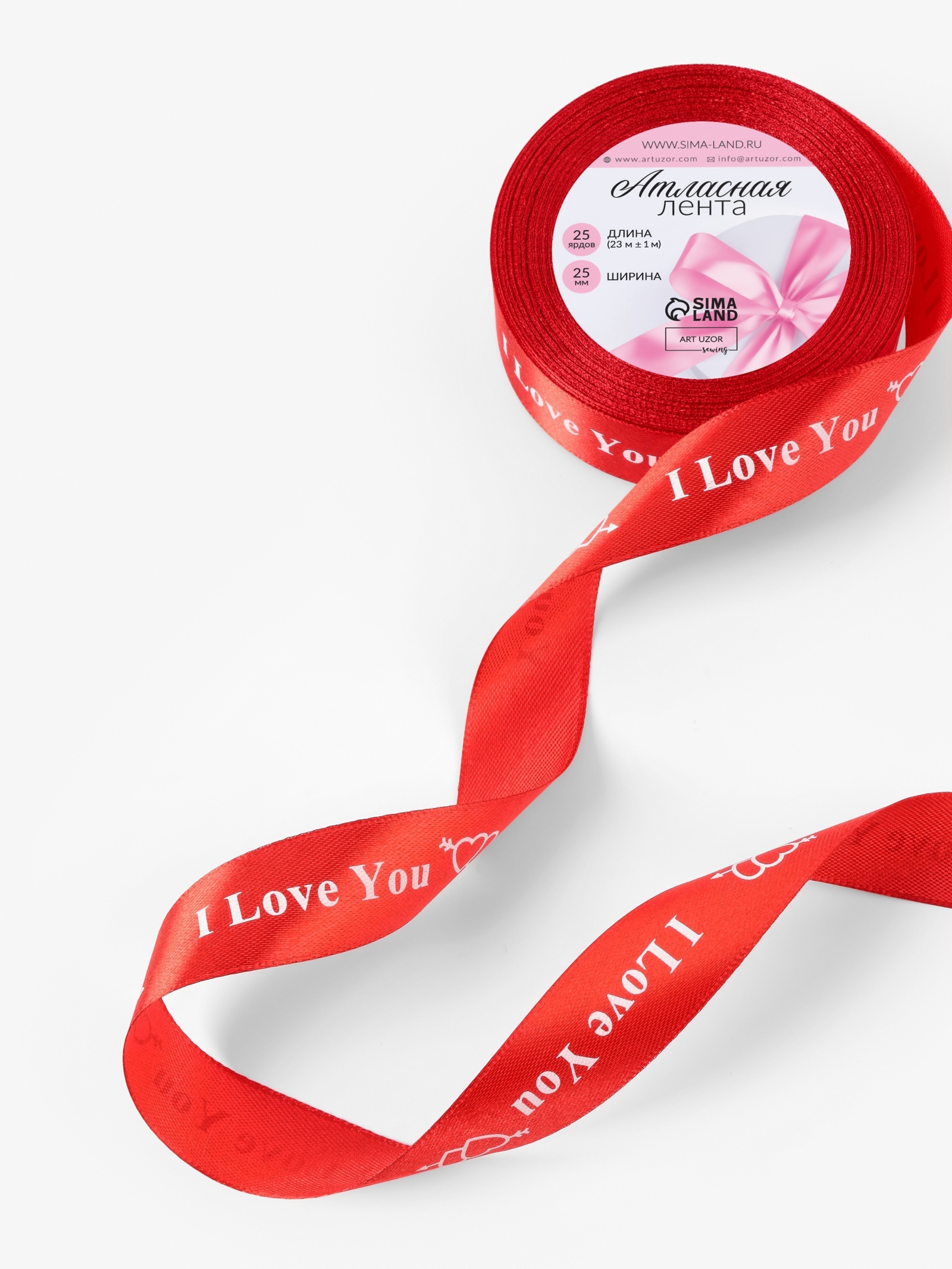 Лента атласная «i Love You», 25 мм, 23±1 м, красная №026