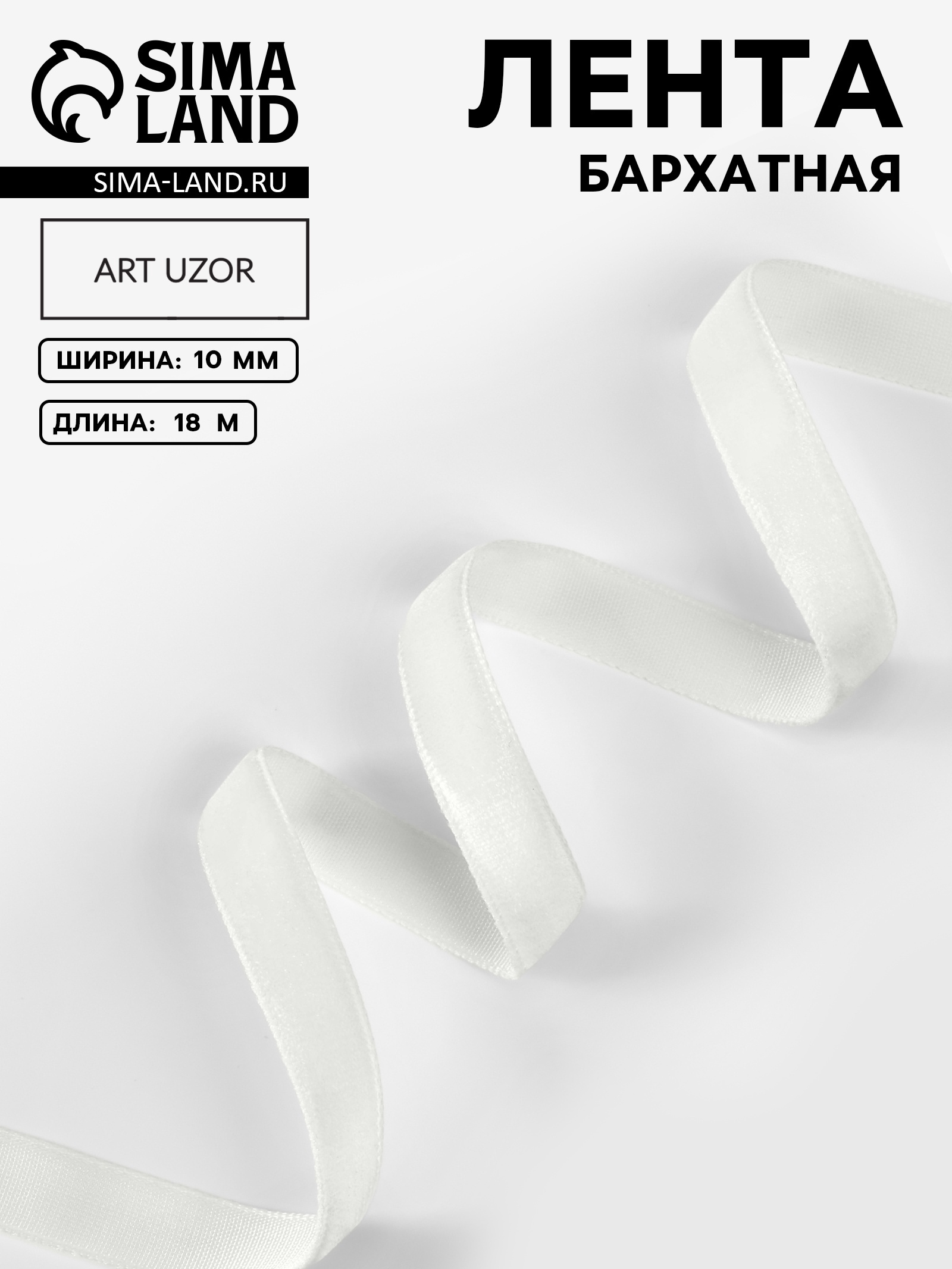 Лента бархатная, 10 мм, 18±1 м, белая №01