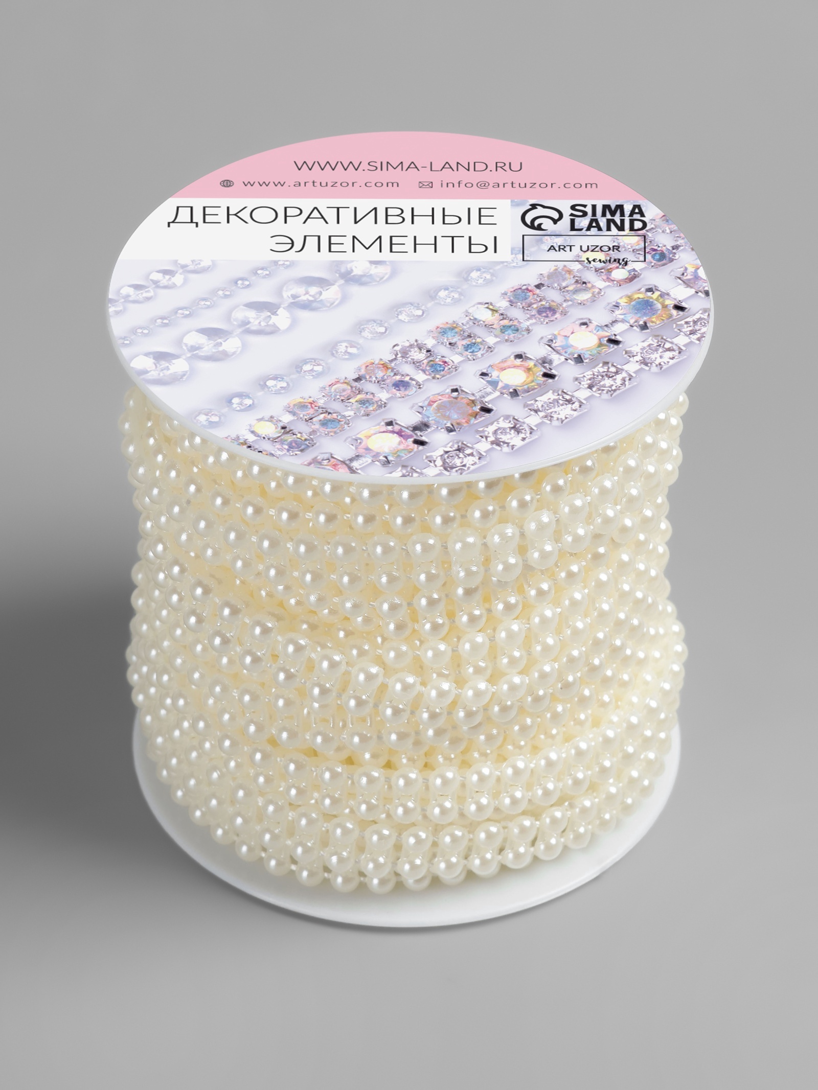 Жемчуг на нитях, плоский, 7 мм, 9±1 м, цвет молочный