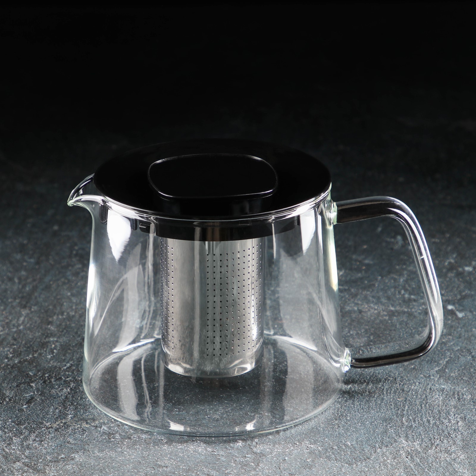 Чайник стеклянный заварочный «локи», 1,4 л, с металлическим ситом, цвет чёрный