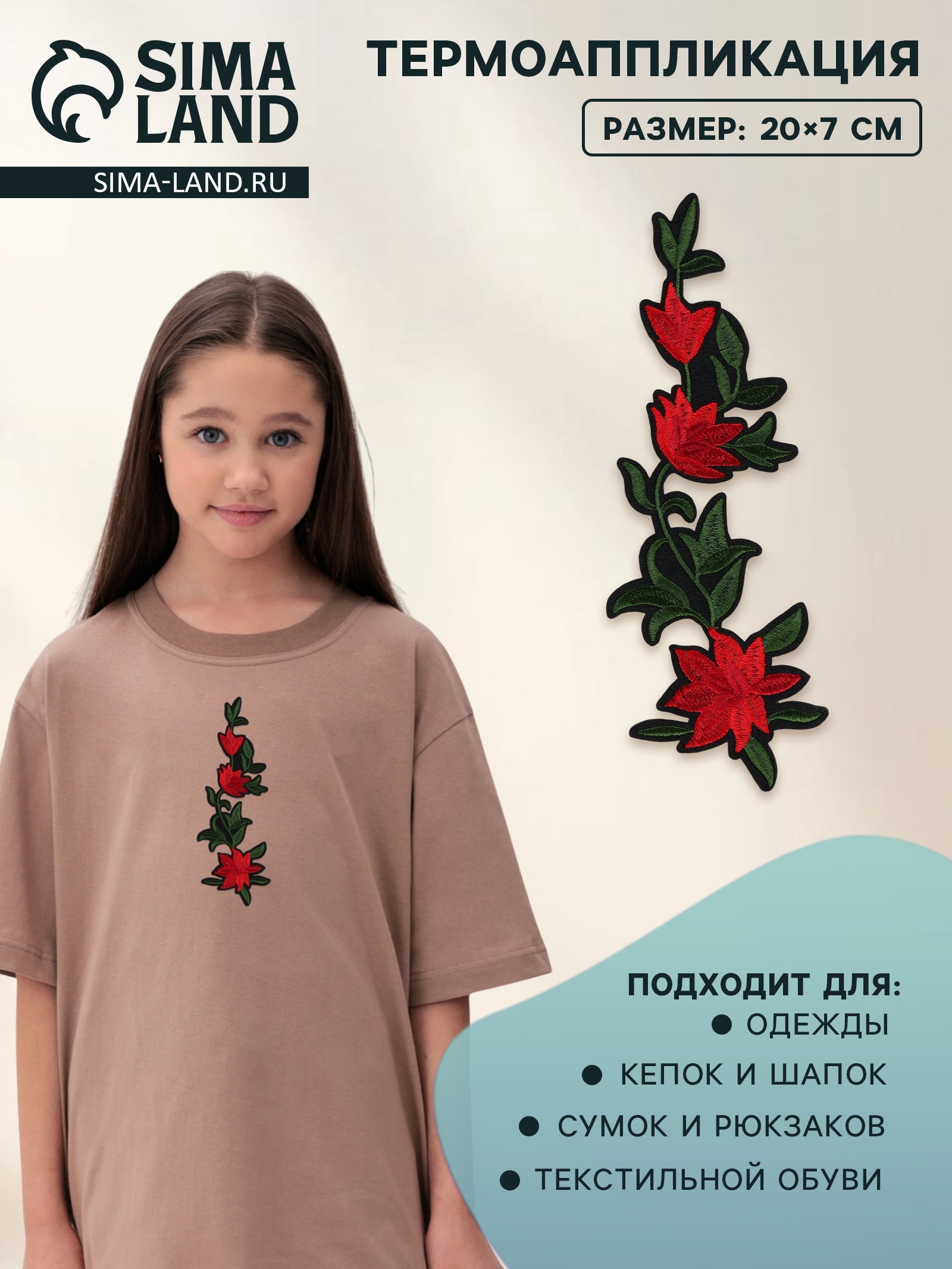 Термоаппликация «цветы», 20 7 см, красная. Термоаппликация «Цветочный орнамент» — это яркие и красочные текстильные наклейки, которые легко фиксируются к ткани с помощью утюга. Идеально подходят для украшения одежды, аксессуаров и других текстильных изделий. Набор:Нет|Цвет:Красный|Для кого:Для девочки|Длина, см:7|Ширина, см:20|Фасовка, шт.:5|Тематика:Цветочно-растительная|Тематика праздника:Универсальная тематика|Материал:Полиэстер|Материал:Нетканый материал|Двусторонний:Нет|Вид наклейки:Термонаклейка|Вид:Текстильные |Особенности :Без особенностей|Страна:Китай  развернуть описание ▼