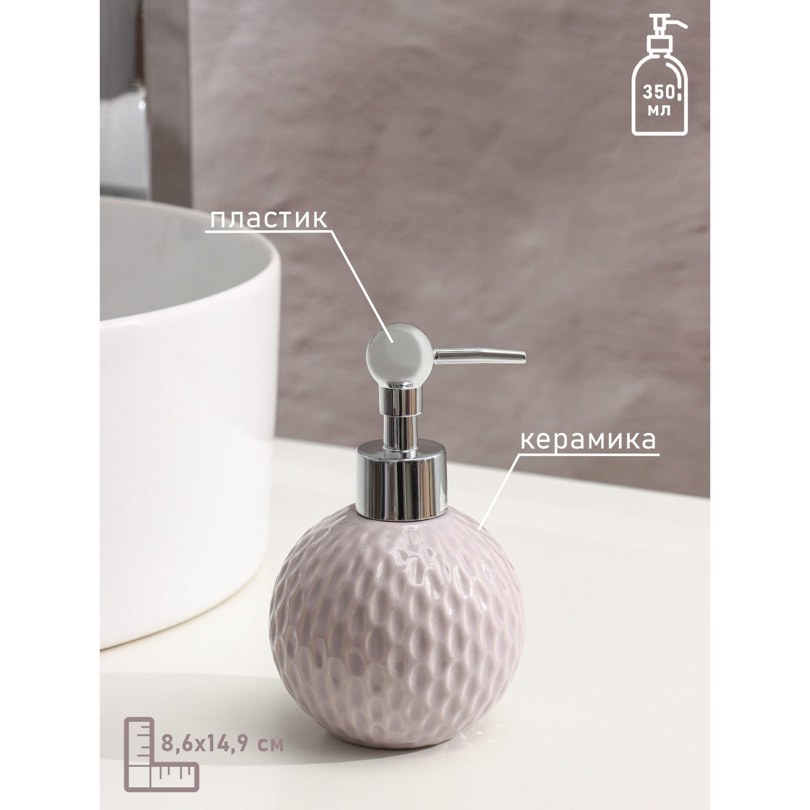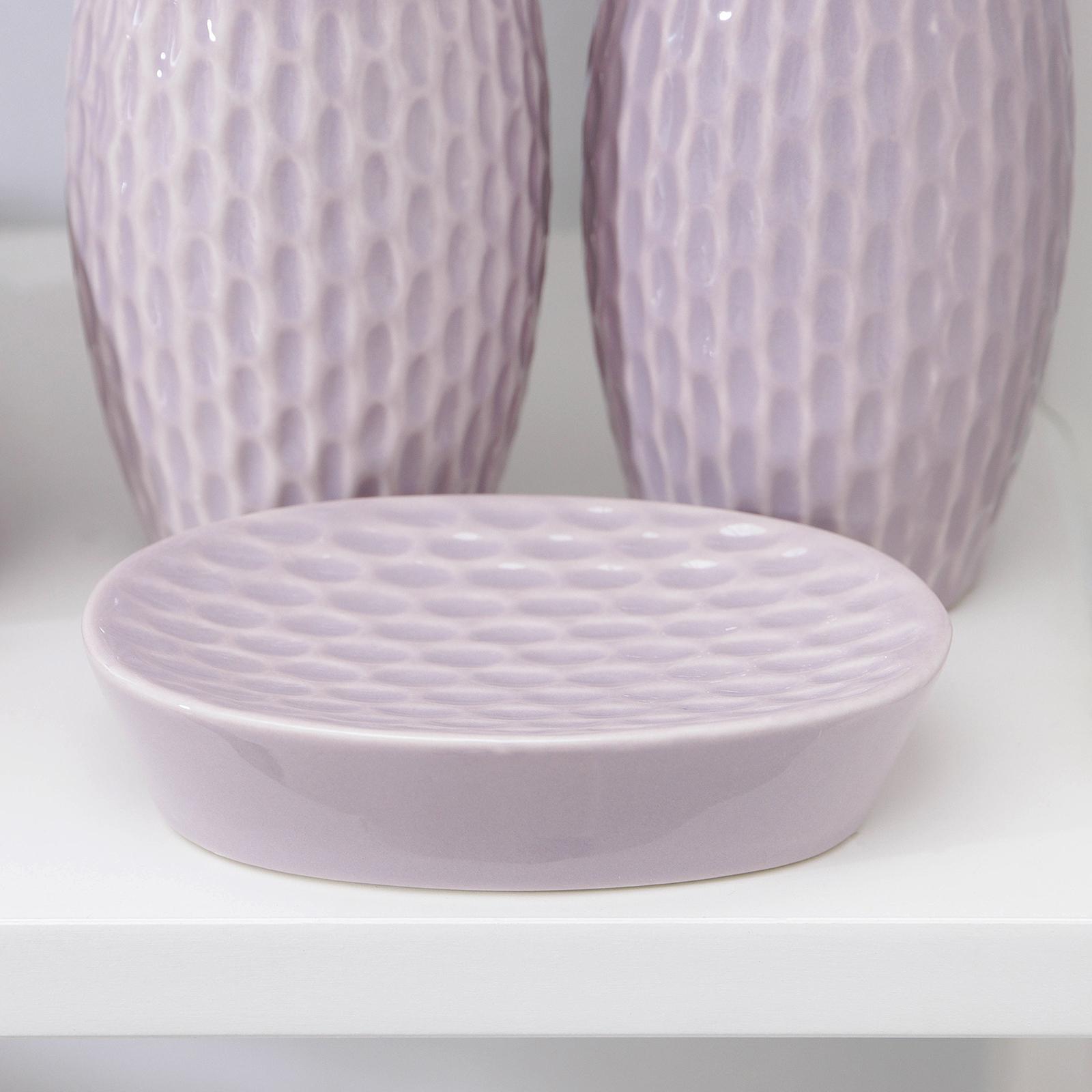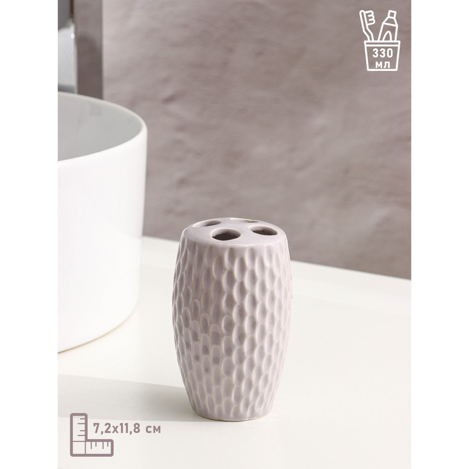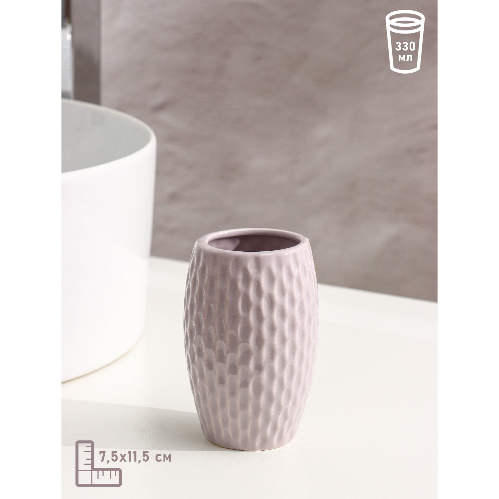 Набор аксессуаров для ванной комнаты доляна «рельеф», 4 предмета (дозатор 300 мл, мыльница, 2 стакана), цвет сиреневый