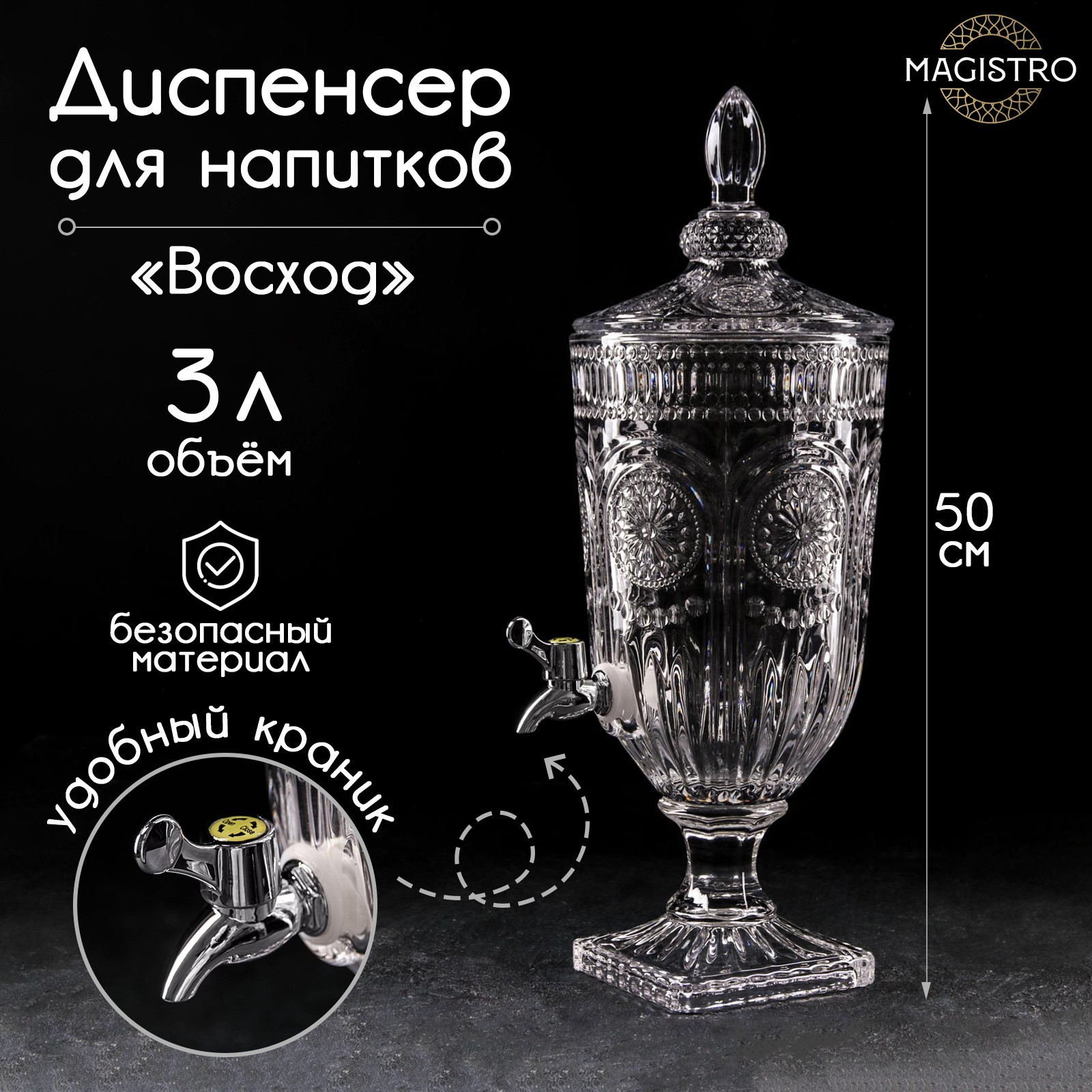 Диспенсер для напитков стеклянный Magistro «восход», 3 л, 25x19x50 см