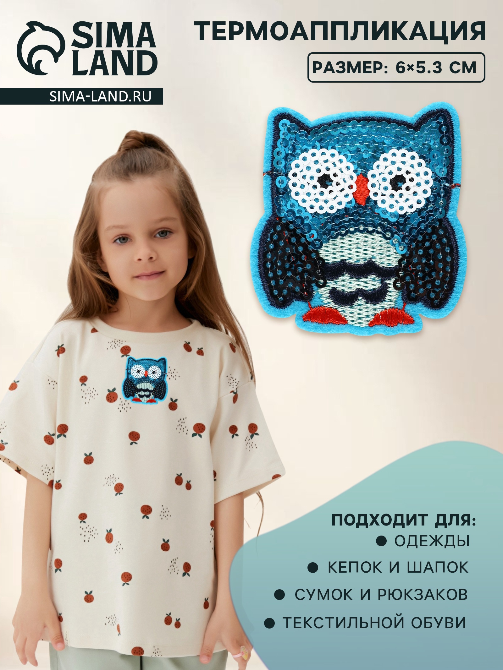 Термоаппликация «сова», с пайетками, 6 5.3 см, синяя