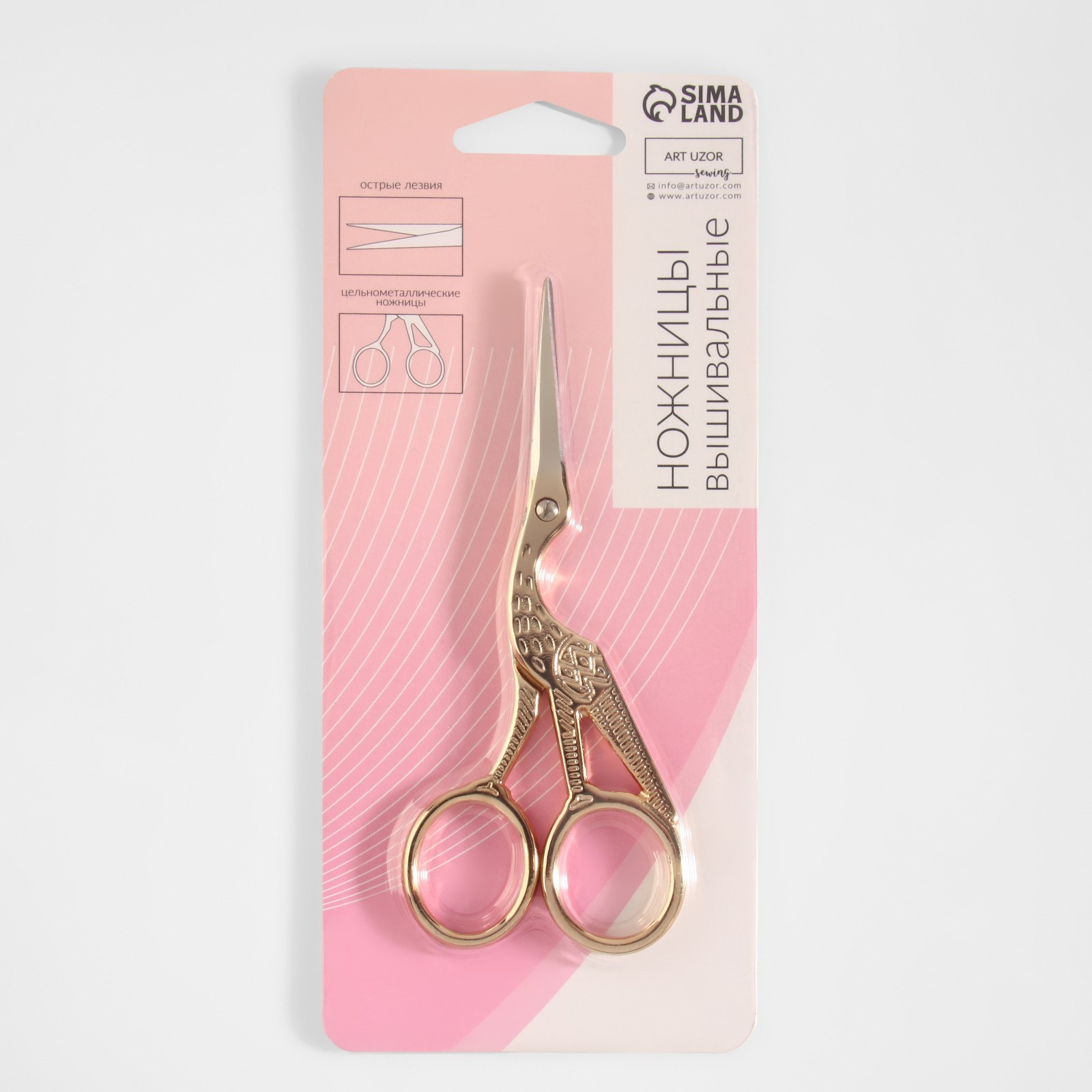 Ножницы для рукоделия «цапельки», скошенное лезвие, 4.5, 11.4 см, цвет золотой