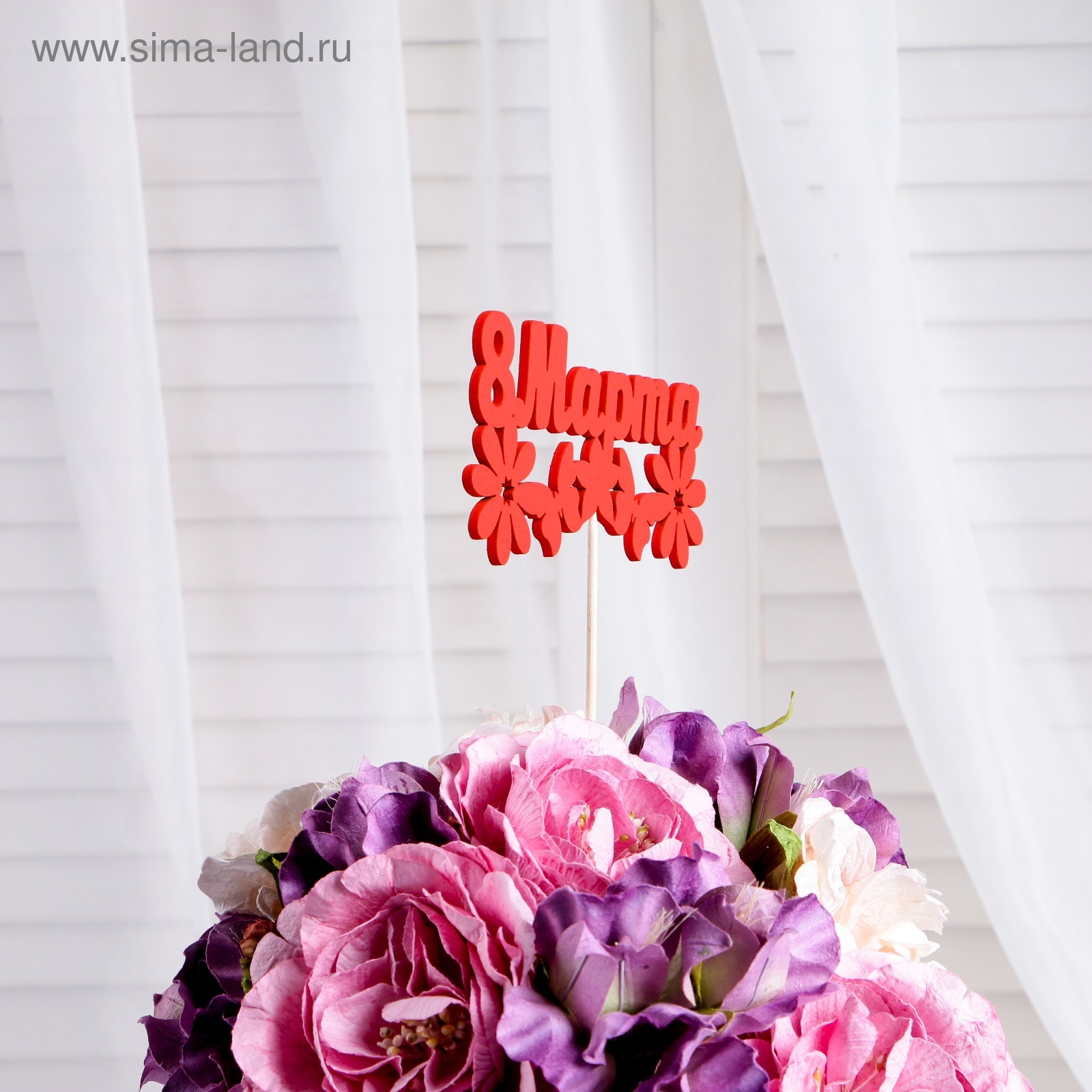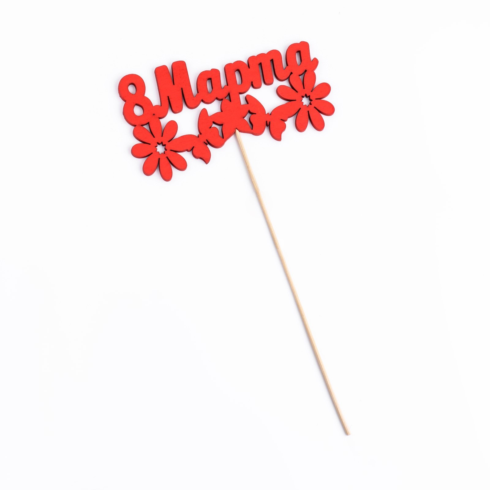 Топпер "8 марта" с ромашками, красный 12,5х6,9 см дарим красиво