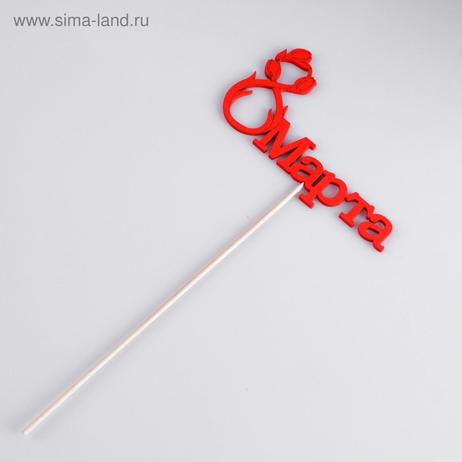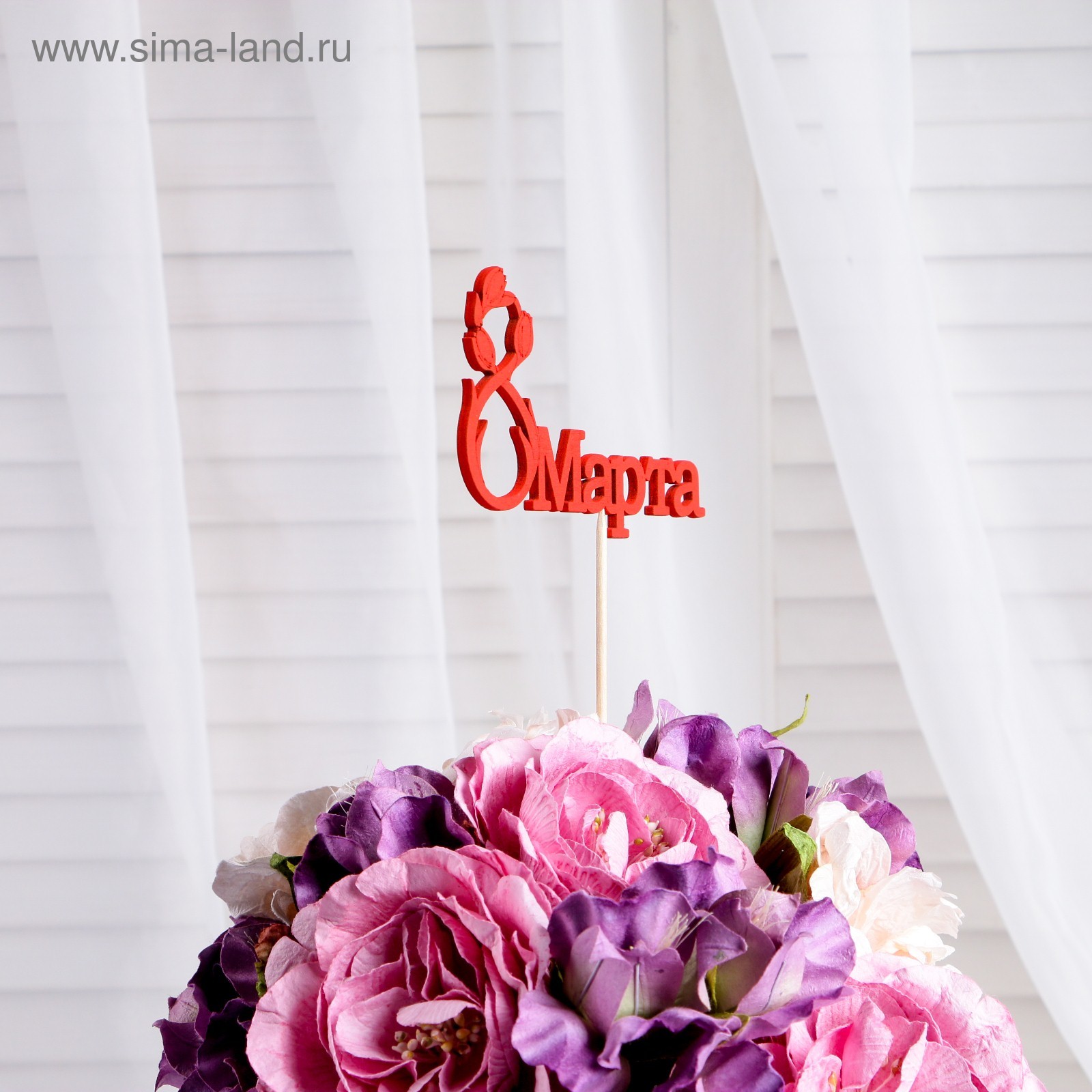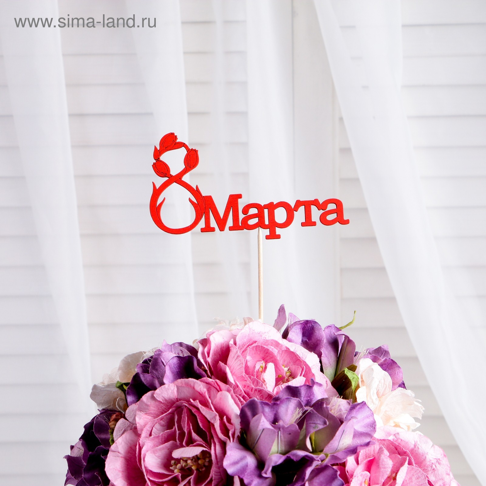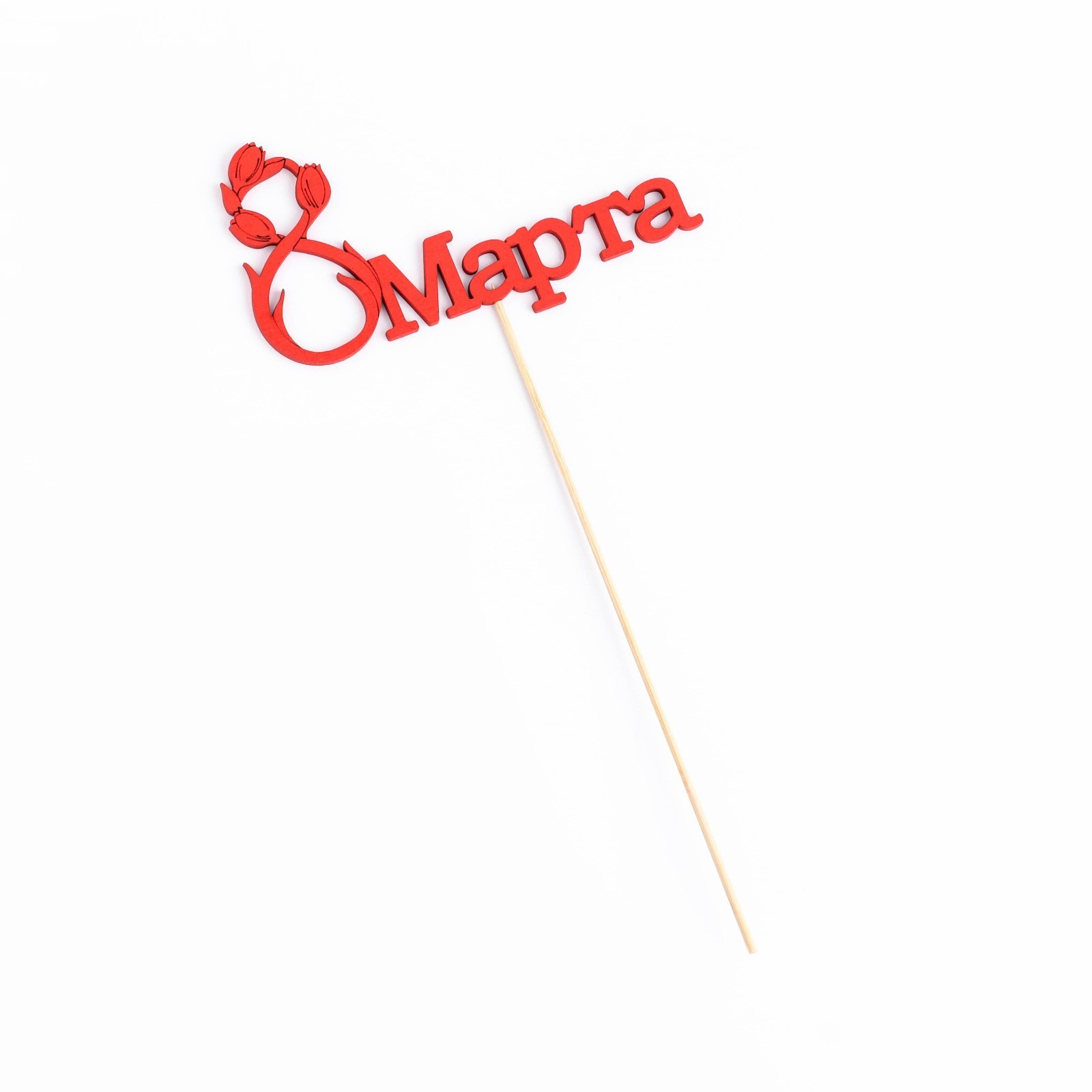 Топпер "8 марта" с тюльпанами, красный, 12х7см дарим красиво