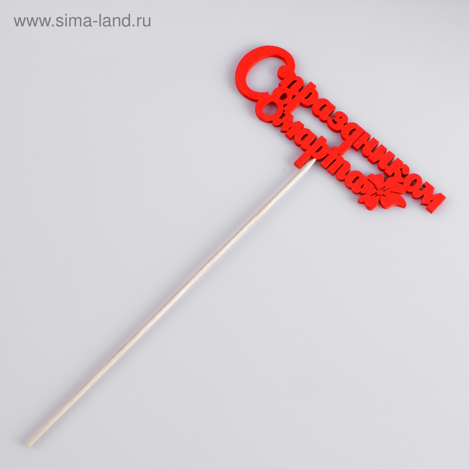 Топпер "с праздником 8 марта" красный 12,5х4,5см дарим красиво