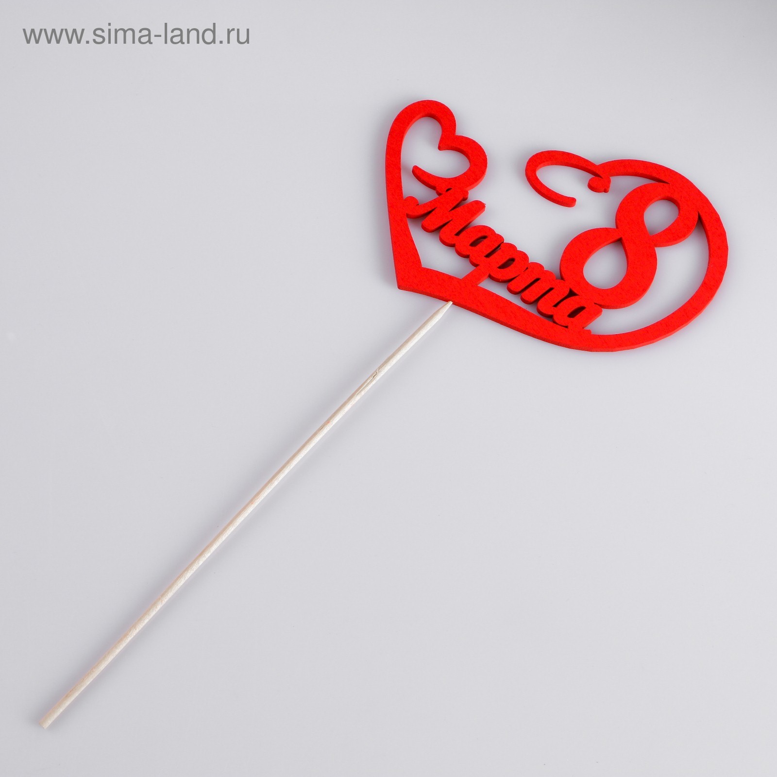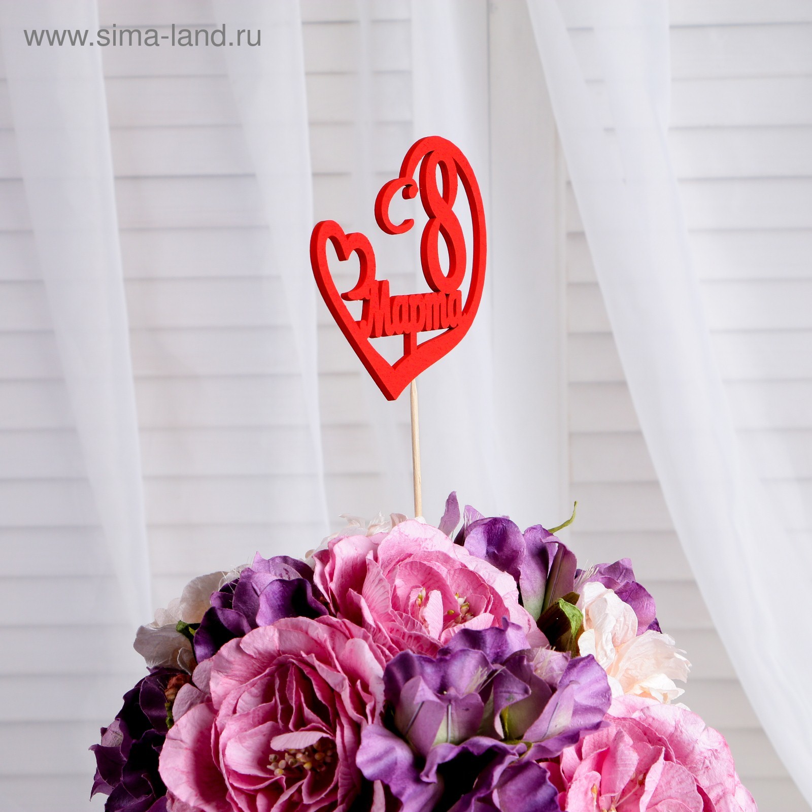 Топпер "с 8 марта", сердце, красный, 12.5х11см дарим красиво