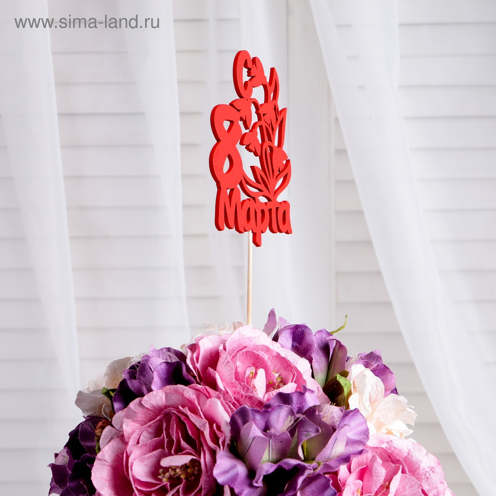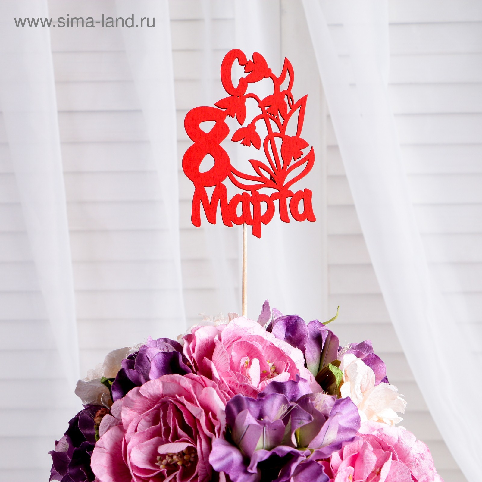 Топпер "8 марта" ландыши, красный 12х8,5см дарим красиво