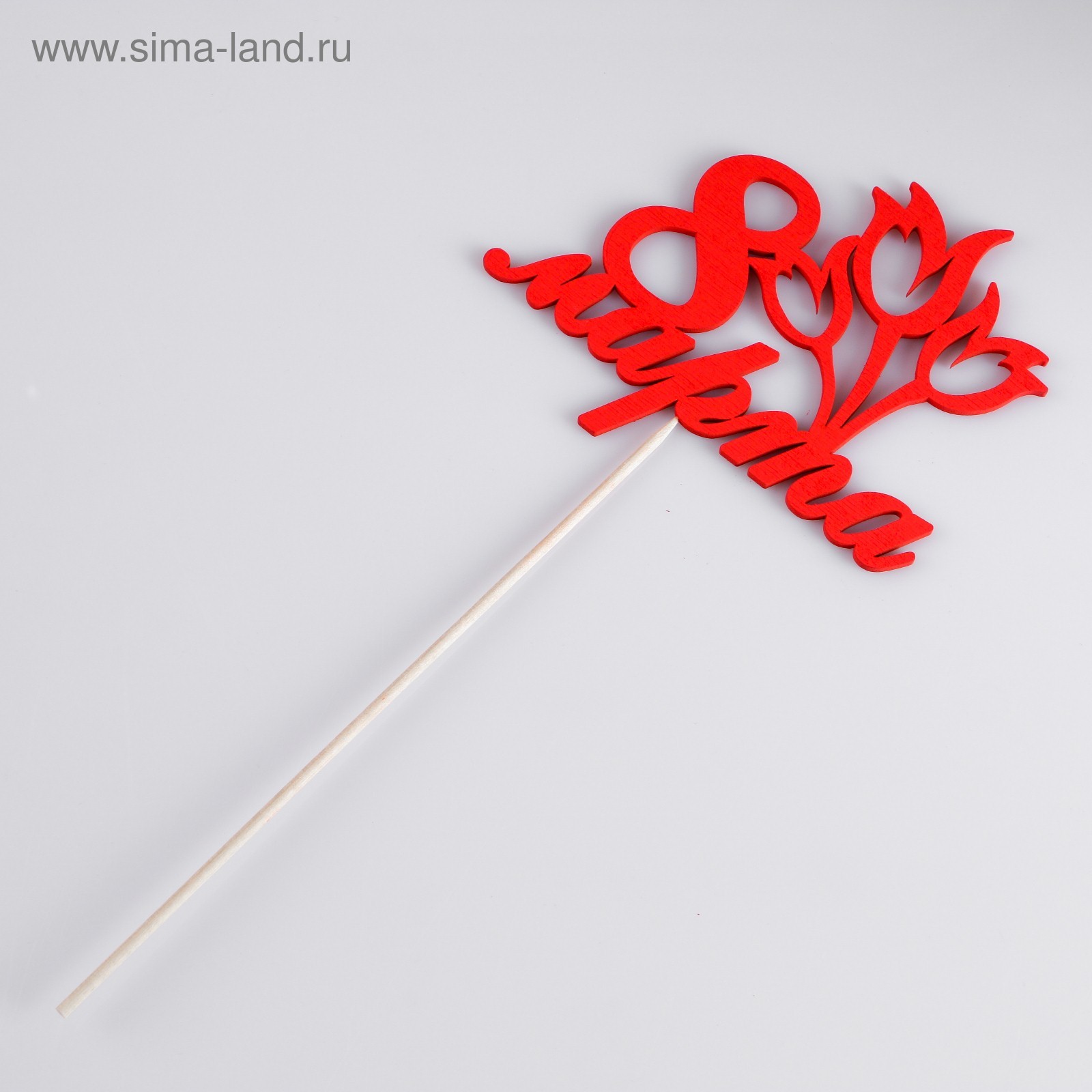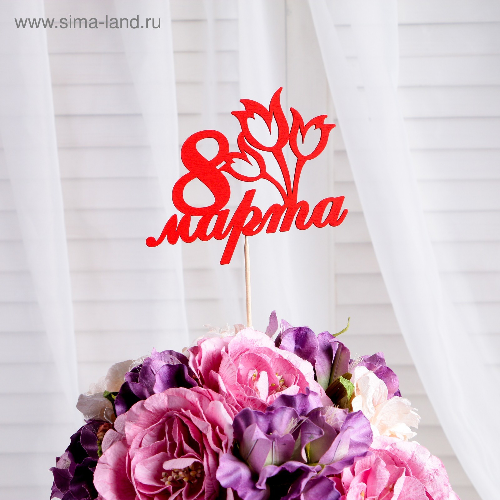 Топпер "8 марта" букет тюльпанов, красный,12.5х10.4см дарим красиво
