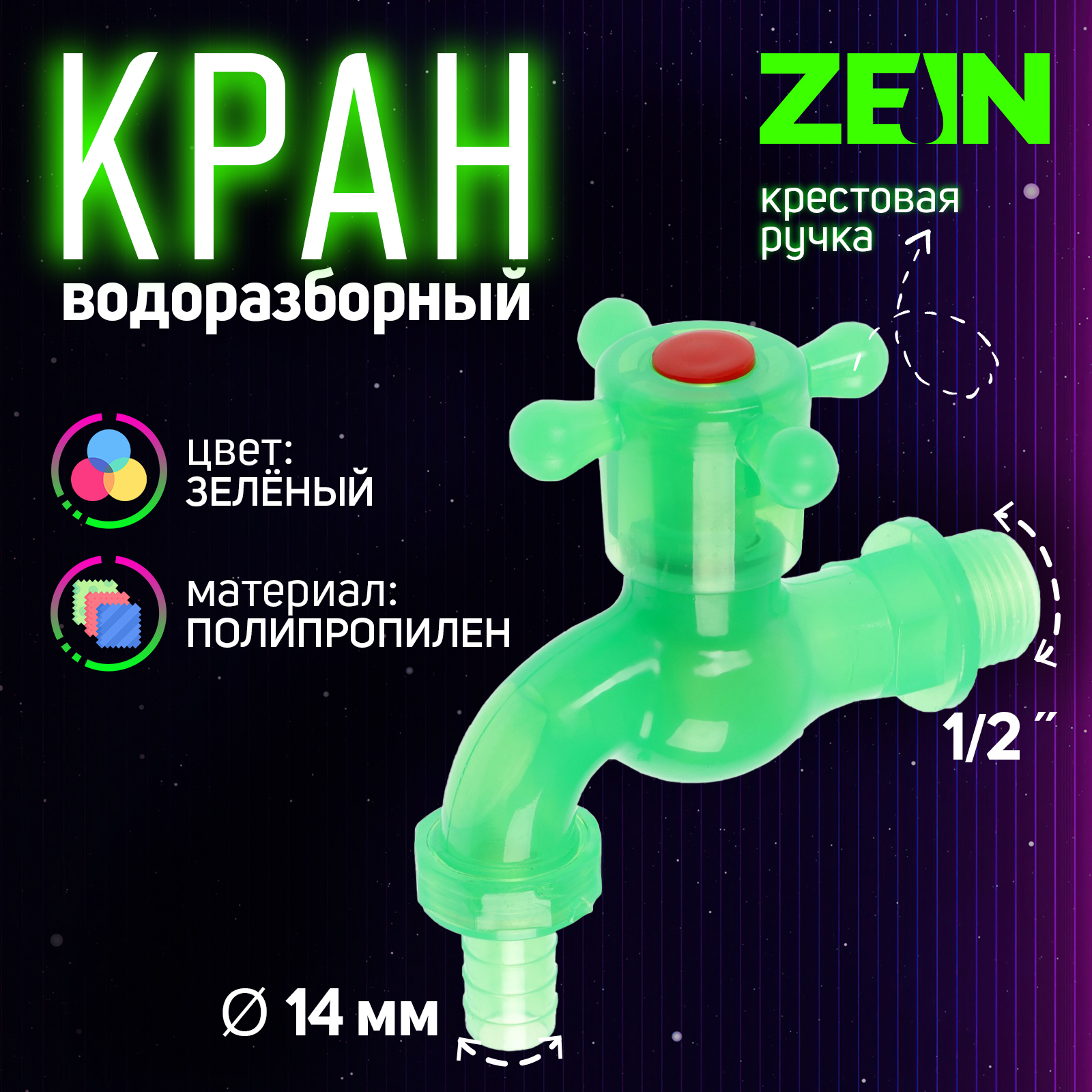 Кран водоразборный Zein, 1/2, со штуцером, с крестовой ручкой, Pp, зеленый