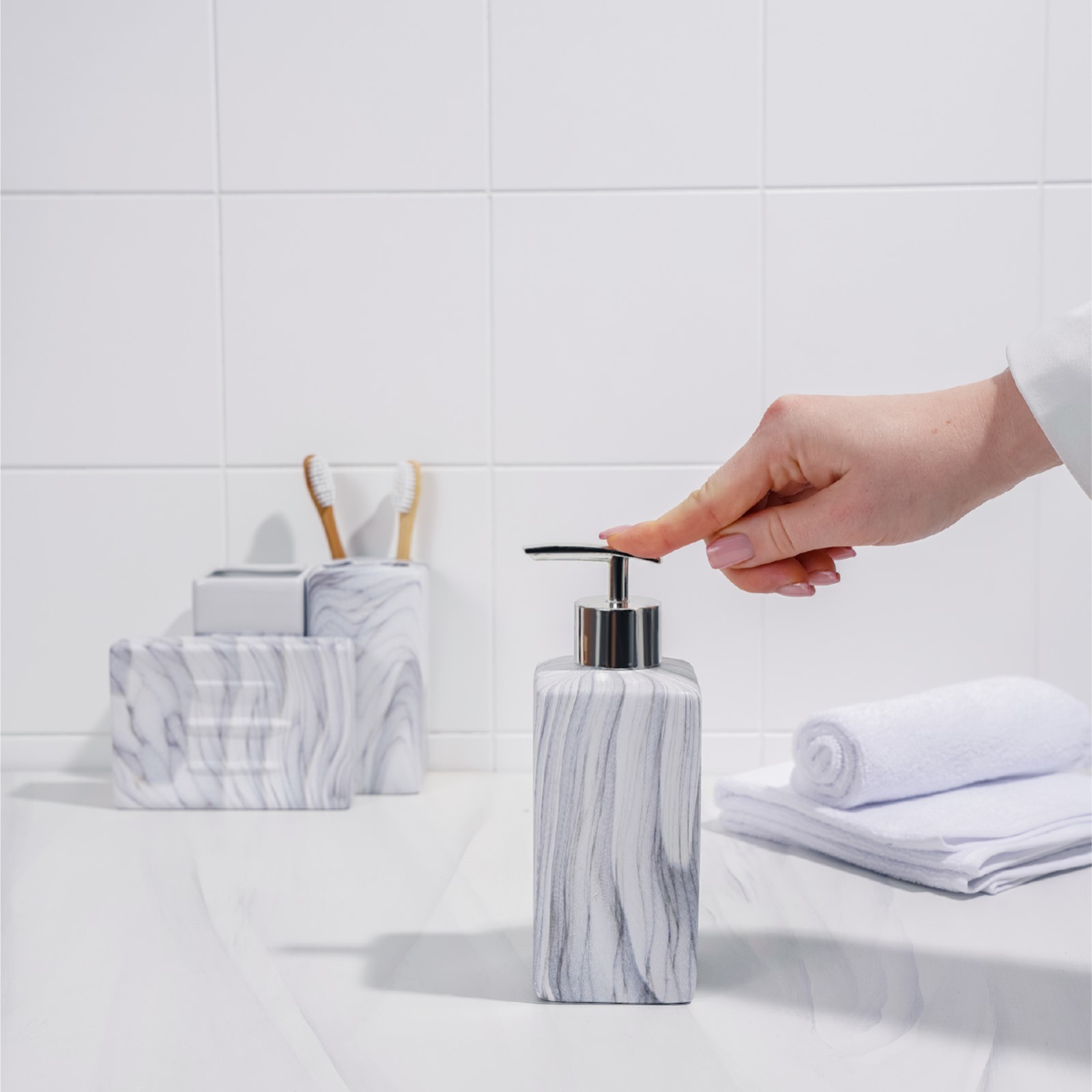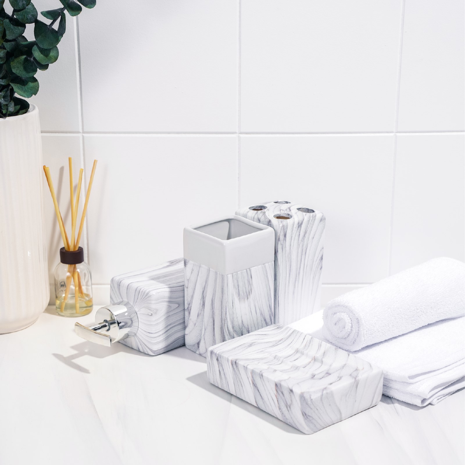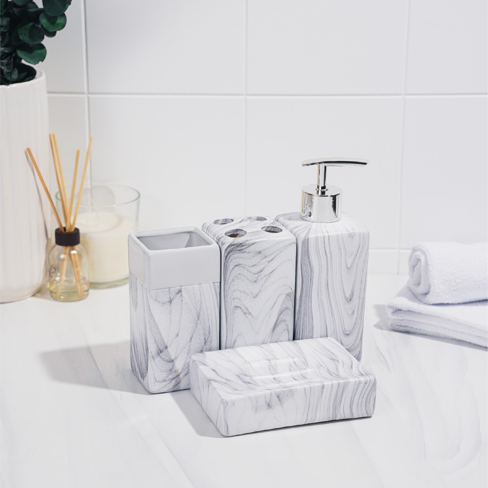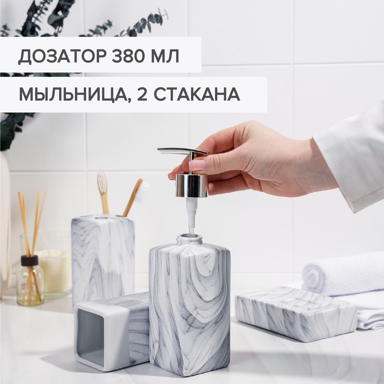 Набор аксессуаров для ванной комнаты «мрамор», 4 предмета (дозатор, мыльница, 2 стакана)