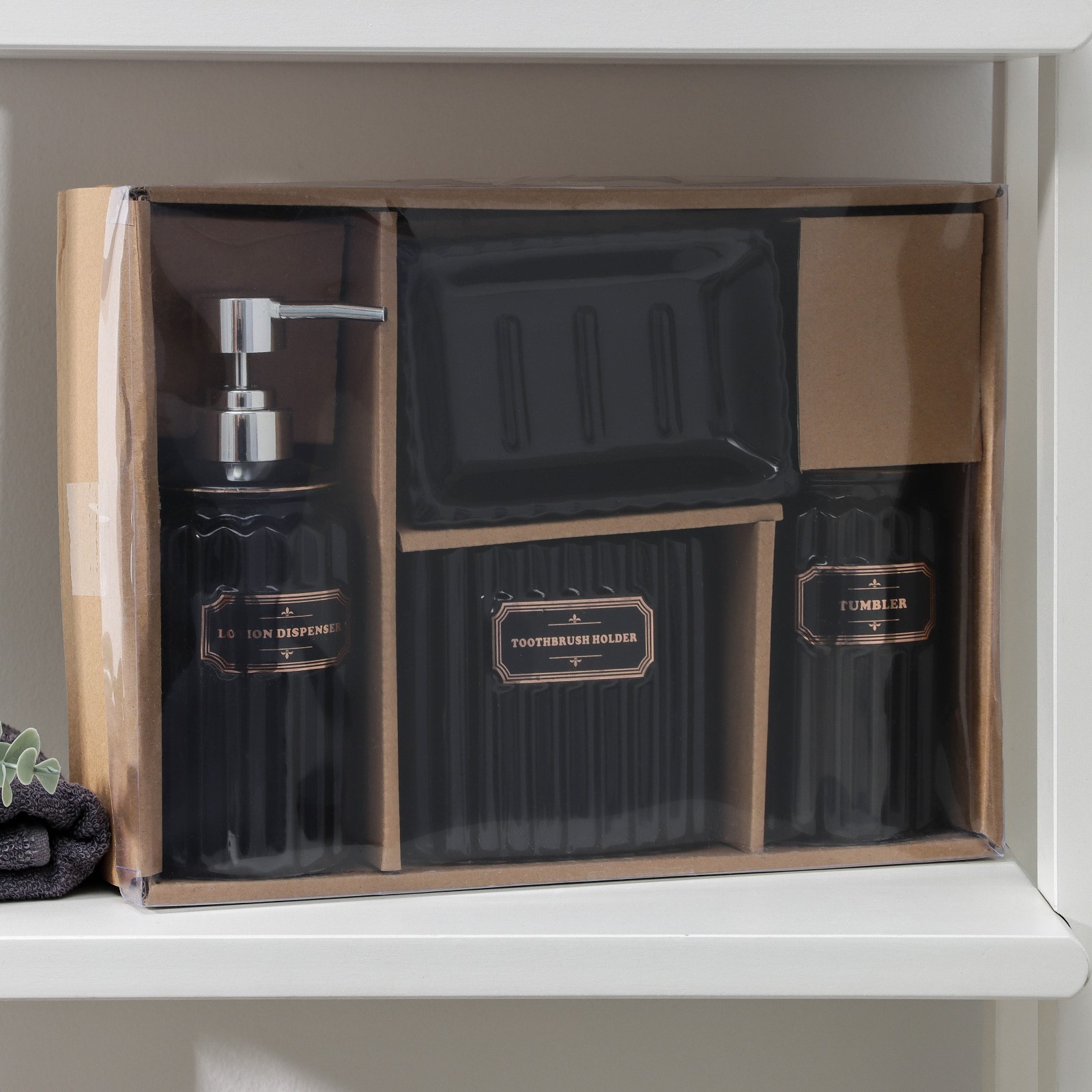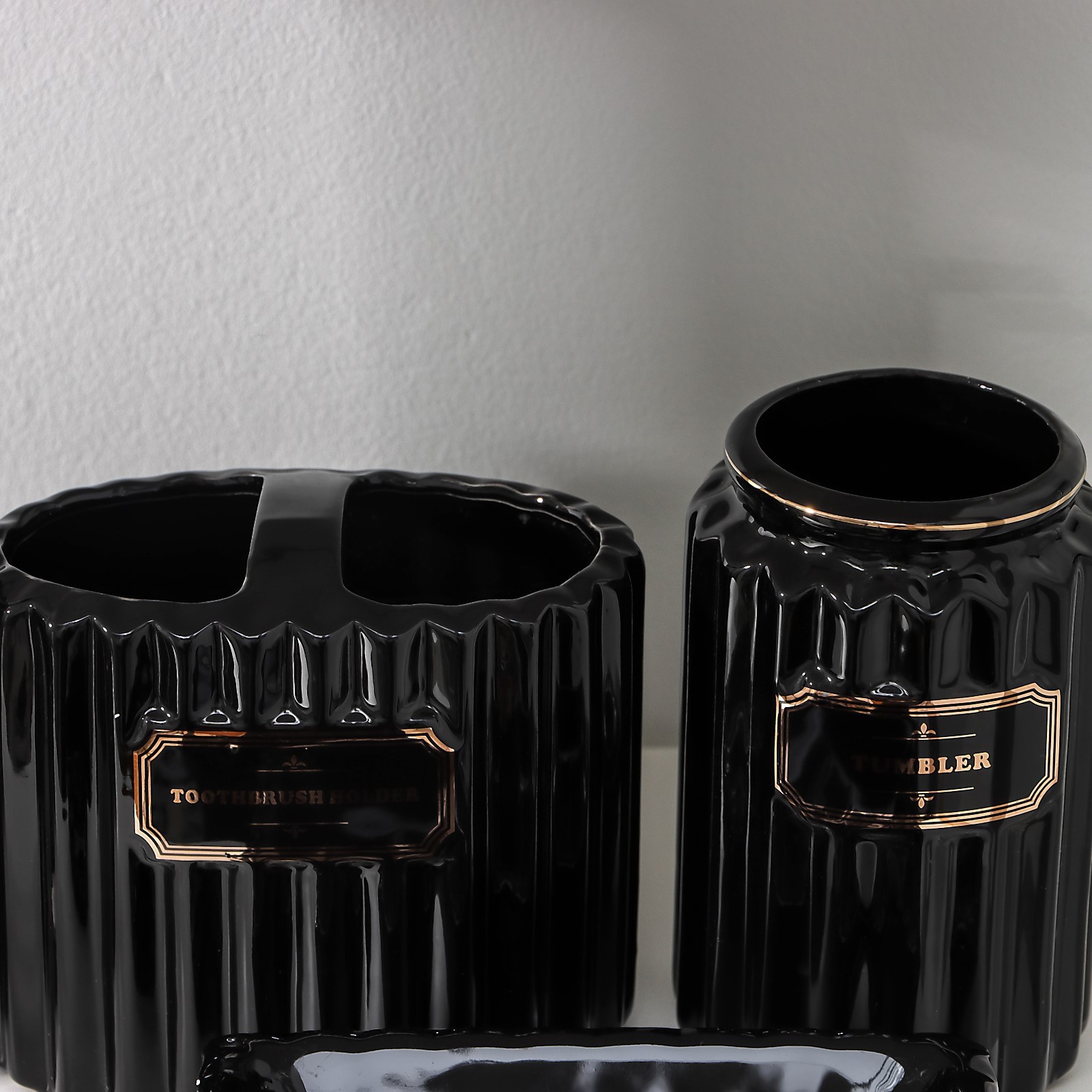 Набор аксессуаров для ванной комнаты «классика», 4 предмета (дозатор 350 мл, мыльница, 2 стакана), цвет чёрный
