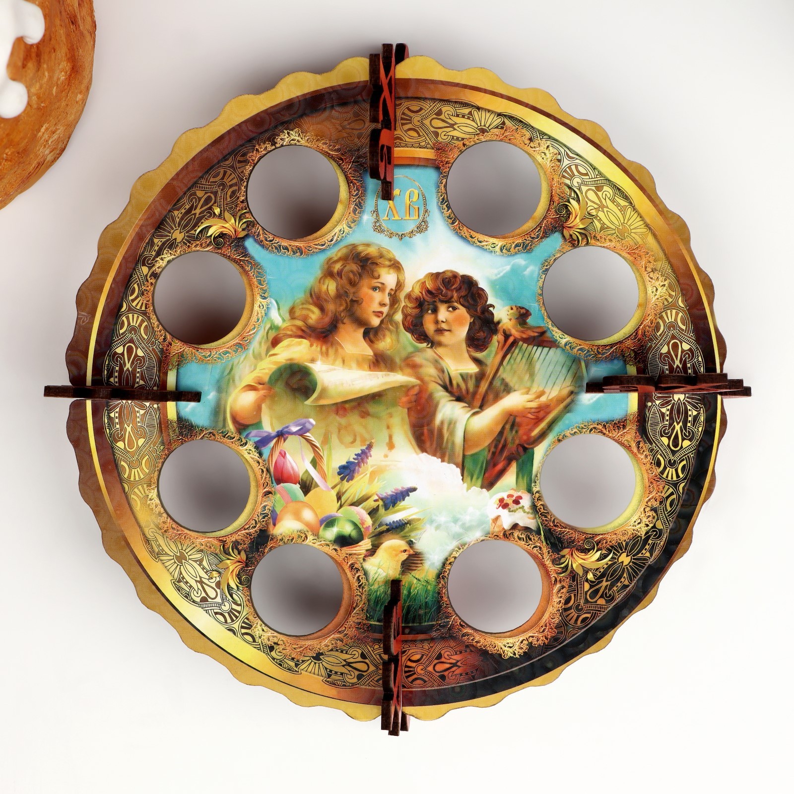 Пасхальная подставка на 8 яиц "ангелочки", 19,5x19,5 см
