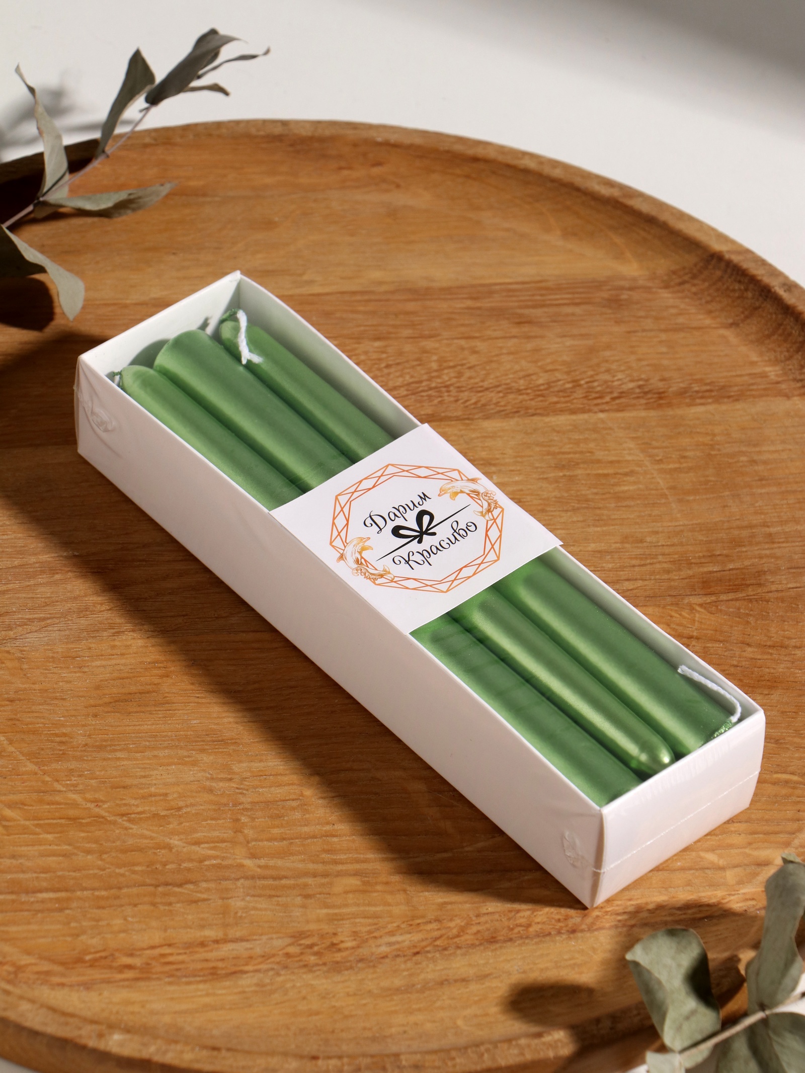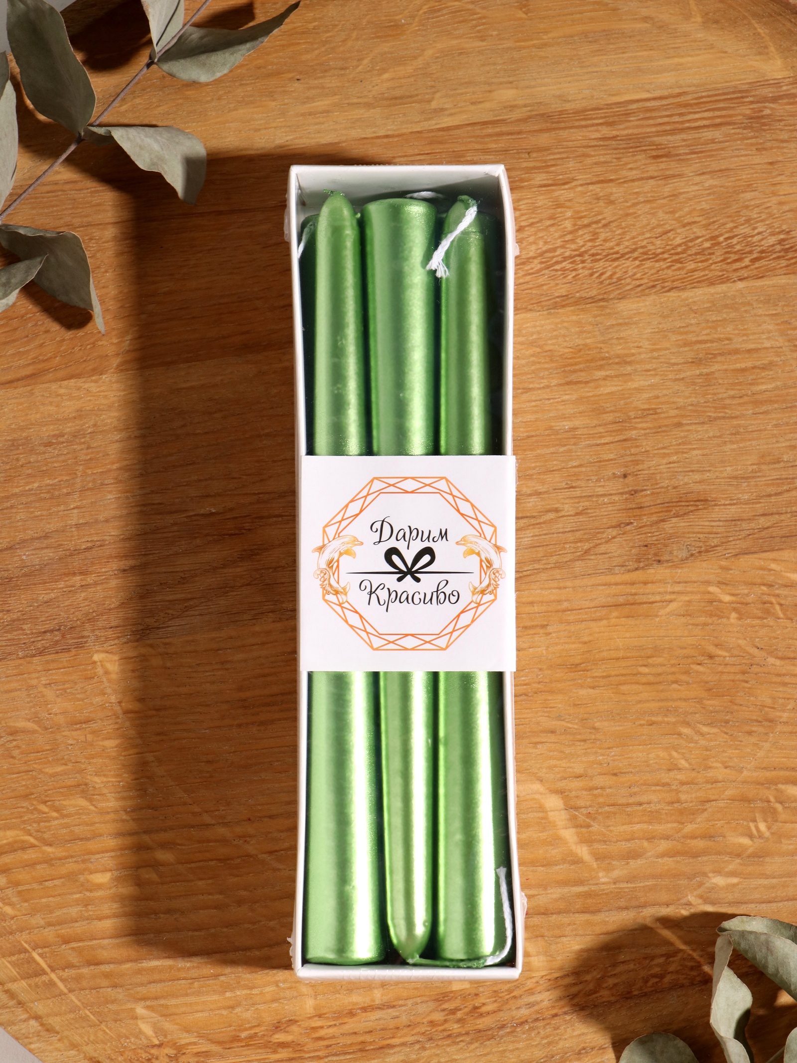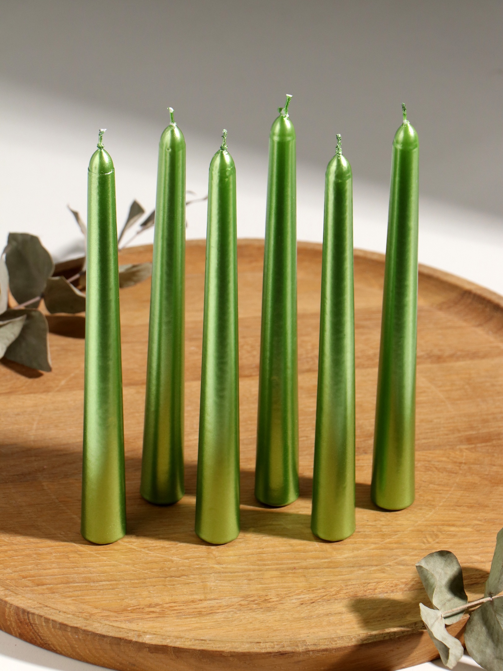 Набор свечей античных, 1.9 20 см, 6 шт., зелёный металлик