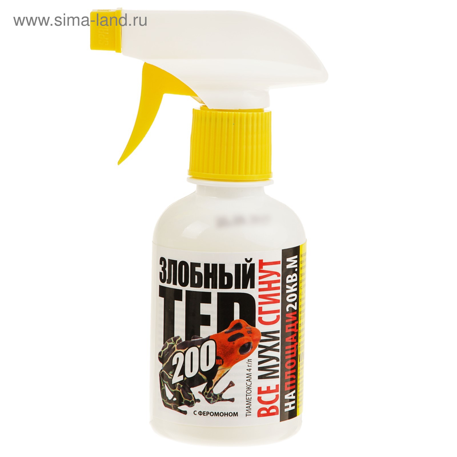 Спрей от мух "злобный тэд", с феромоном, 200 мл. Инсектицидное средство «ЗЛОБНЫЙ TED» (тиаметоксам 4 г/л) водный раствор, готовый к применению, предназначен для уничтожения летающих насекомых (мухи) и нелетающих (тараканы, постельные клопы, блохи, муравьи) в помещениях различного назначения: в бытовых (ЛПХ, кухни, спальни, коридоры и т. д. ) и промышленных помещениях (бытовки, столовые, санузлы и д. р. ), на предприятиях коммунально-бытового назначения (лестничные пролеты, складские помещения, мусоросборники, мусорные контейнеры и площадки вокруг них и т. д. ), на объектах железнодорожного транспорта и метрополитена. ПРИЯТНЫЙ ЗАПАХ. НЕ ОСТАВЛЯЕТ ПЯТЕН И РАЗВОДОВ. Допустимо применение средства для борьбы с вредителями комнатных, уличных и оранжерейных растений. Средство рекомендуется к использованию организациям, занимающимся дезинфекционной деятельностью. Способ применения: Перед использованием упаковку со средством необходимо встряхнуть. Перевести головку распылителя из нерабочего (OFF) в рабочее (SPRAY или STREAM) положение. Для обработки нажимать на курок распылителя, направляя его головку на обрабатываемую поверхность. За одно нажатие на курок из упаковки в среднем выходит: в режиме «SPRAY» – 0, 5 мл, в режиме «STREAM» – 0, 8 мл средства. Струей средства обрабатывают места скопления, обитания и проникновения в помещение насекомых, нажимая на распылительную головку с расстояния 30-50 см от обрабатываемой поверхности. По окончании работы со средством следует перевести головку распылителя в нерабочее положение (OFF). Уничтожение мух производят одним из двух способов:Сплошное нанесение (не требует дополнительных действий): Обработать средством места посадки мух в жилых и производственных помещениях: рамы окон, подоконники, дверные коробки, плафоны, потолки. Норма расхода средства 100 мл/кв. м обрабатываемой поверхности. Приготовление приманок (увеличивает пищевую привлекательность инсектицида, наиболее эффективно по действию): аккуратно открутить распылитель от флакона, добавить в раствор (200 мл) – 20 грамм сахарного песка (4 ч. л), надеть распылитель и тщательно встряхнуть приманку в течение 20-40 сек до полного растворения кристаллов сахара. Нанести приманку на подложки из расчета на одну подложку 1, 5-2, 5 г (3-5 нажатий на курок распылителя в режиме «SPRAY»). Расставить подложки в местах активности мух. Норма расхода – 2-3 подложки с приманкой на помещение площадью 10 кв. м. Расход средства зависит от численности мух и санитарного состояния помещений. При использовании метода расстановки приманок из средства с сахаром - 200 мл в среднем хватит для обработки 250 кв. м общей площади помещений. Повторные обработки проводят при появлении имаго мух в помещении. Норма расхода средства для уничтожения тараканов, постельных клопов, блох, муравьев, при его использовании способом орошения, составляет 10 мл/кв. м на поверхностях, не впитывающих влагу, и 20 мл/кв. м на поверхностях, впитывающих влагу, что соответствует 20 или 40 нажатиям на курок в режиме «SPRAY» и 12 или 25 нажатиям в режиме «STREAM». Повторные обработки -помещений проводят по энтомологическим показателям . Состав: тиаметоксам, вода, ПАВ, сорастворители Цвет: Белый Вид средства: Фумигатор Назначение: От мух  развернуть описание ▼