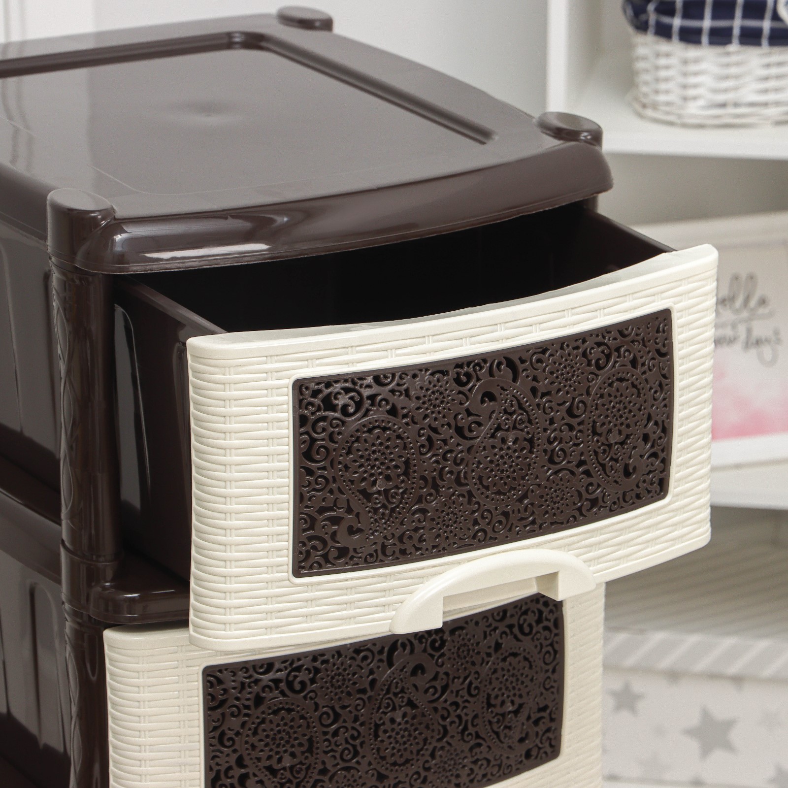 С помощью практичного пластикового комода вы правильно организуете хранение вещей. Изделие имеет жёсткую конструкцию за счёт цельных боковых стенок. Отсутствие острых углов делает его безопасным для ребёнка. Комод изготовлен из экологически чистого материала, не содержит вредных веществ.