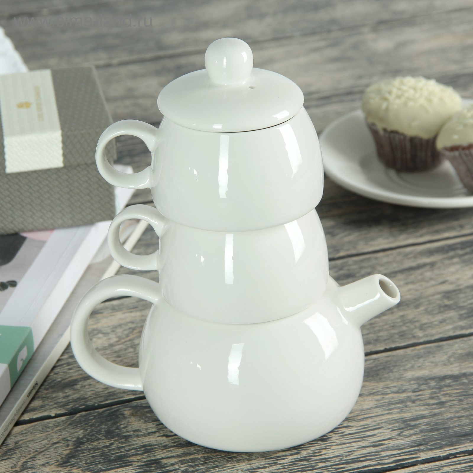 Набор керамический чайный «чай для двоих», 3 предмета: чайник 400 мл, 2 чашки 200 мл