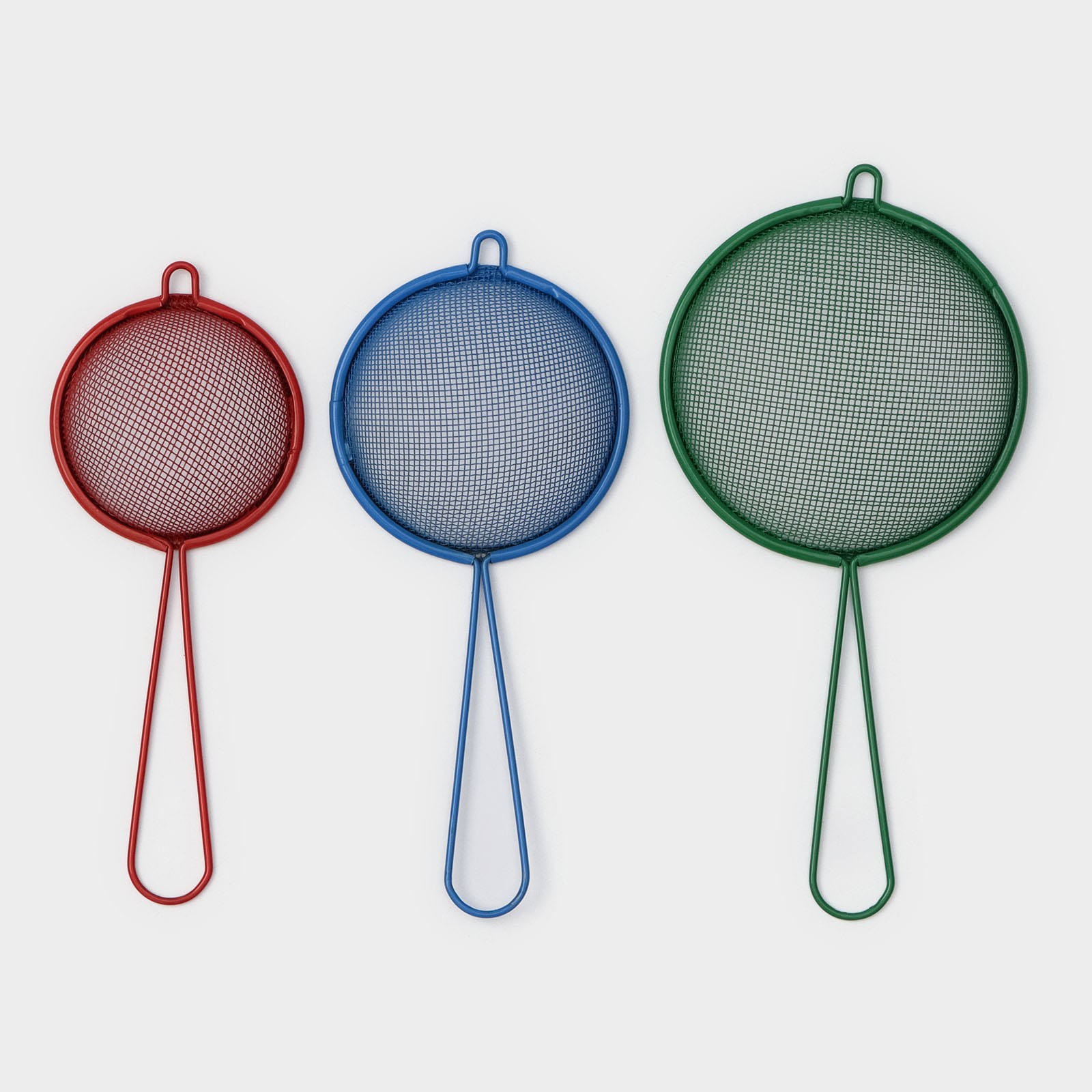 Набор сит доляна, 3 шт, d=6 см, 8 см, 9 см. Сито — предмет посуды, необходимый в каждой кухне. Именно тщательное просеивание сыпучих ингредиентов позволяет добиться превосходного результата. Сито чаще всего используется для просеивания муки, какао-порошка, сахарной пудры и других мелкодисперсных по своему составу продуктов. Сухая основа для теста, прошедшая через решётку, очищается от посторонних примесей и загустевших комков. Просеянная мука становится более воздушной и насыщается кислородом, создавая нежную консистенцию будущим мучным изделиям. Цвет: Разноцветный Диаметр, см: 6 Диаметр, см: 8 Диаметр, см: 9 В наборе, шт.: 3 Материал ручки: Металл Материал: Металл  развернуть описание ▼