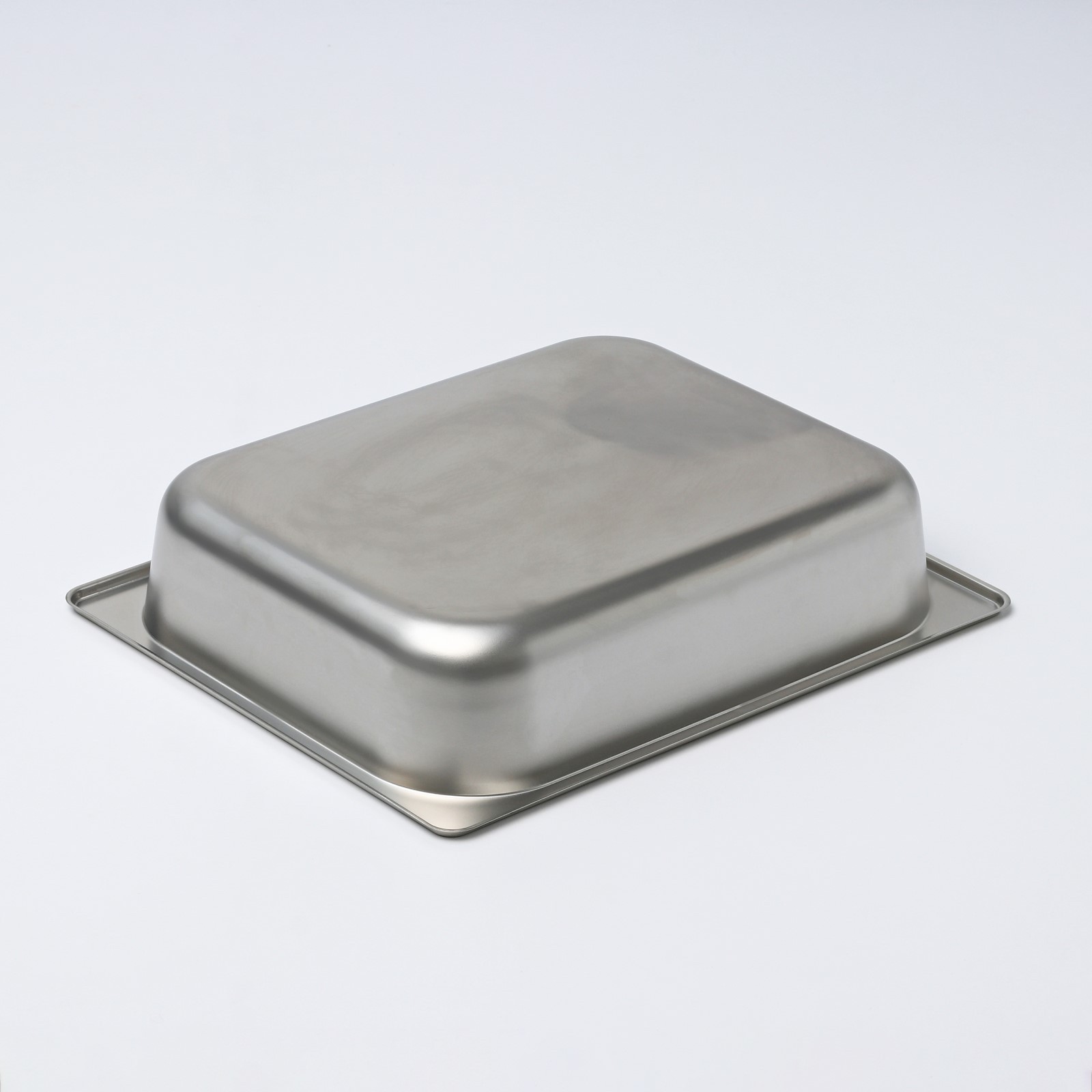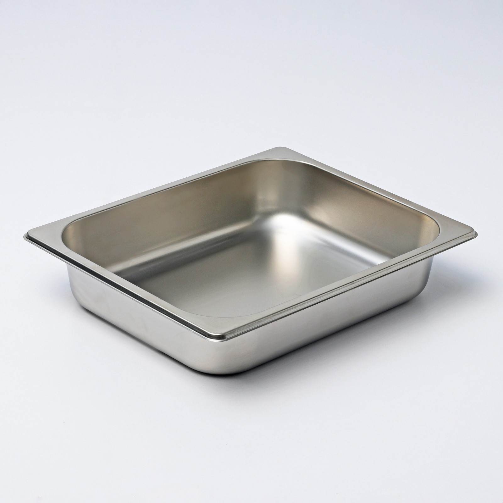 Гастроемкость 1/2 из нержавеющей стали, 65 мм, 32,5x26,5x6,5 см, толщина 0,8 мм. Незаменимыми элементами любой современной кухни являются металлические гастроёмкости, использование которых позволяет рационализировать процесс приготовления, транспортировки и хранения пищи. Многофункциональный профессиональный инструмент имеет массу достоинств: подходит для заморозки и хранения продуктов;в ней можно готовить;помогает поддерживать оптимальную температуру блюд, что особенно актуально для заведений общественного питания;стойкий к коррозии металл позволяет изделию служить долгие годы;гладкая внутренняя поверхность препятствует налипанию остатков пищи;гастроёмкость мобильна: её легко перемещать. А знали ли вы, что многие домохозяйки используют гастроёмкости на домашних кухнях? В качестве противня: используют неглубокие гастроёмкости в духовке или даже на плите. В качестве формы для выпечки: бисквиты и запеканки идеально ровной формы, без пригорания. Это ли не чудо?Для удобного хранения и заморозки урожая. Ничего не испортится. Необходимо отметить, что любая гастроёмкость рассчитана на длительное профессиональное использование, имеет высокую надежность и износостойкость. Если вы используете её дома – срок службы не ограничен! Цвет: Хромированный Форма: Прямоугольная Объём, л: 4 Вид упаковки: Пакет Материал: Нержавеющая сталь Размер: GN 1/2 Для детей до 3 лет: Нет Можно мыть в посудомоечной машине: Да Форма: Прямоугольник  развернуть описание ▼