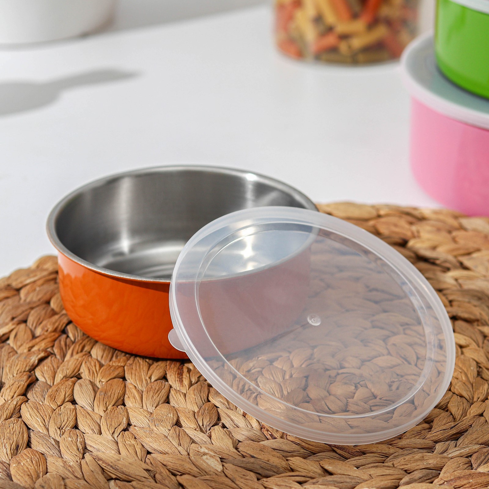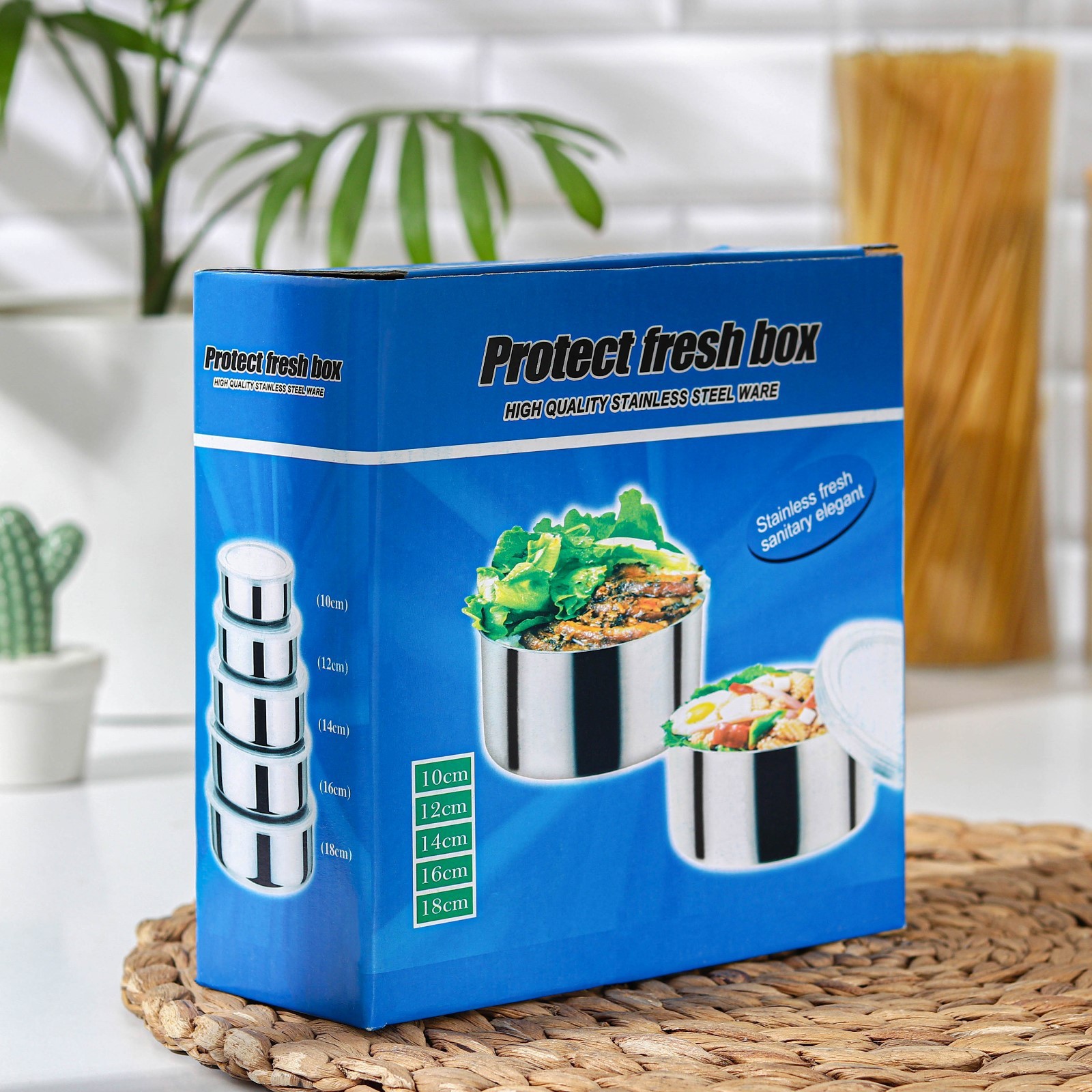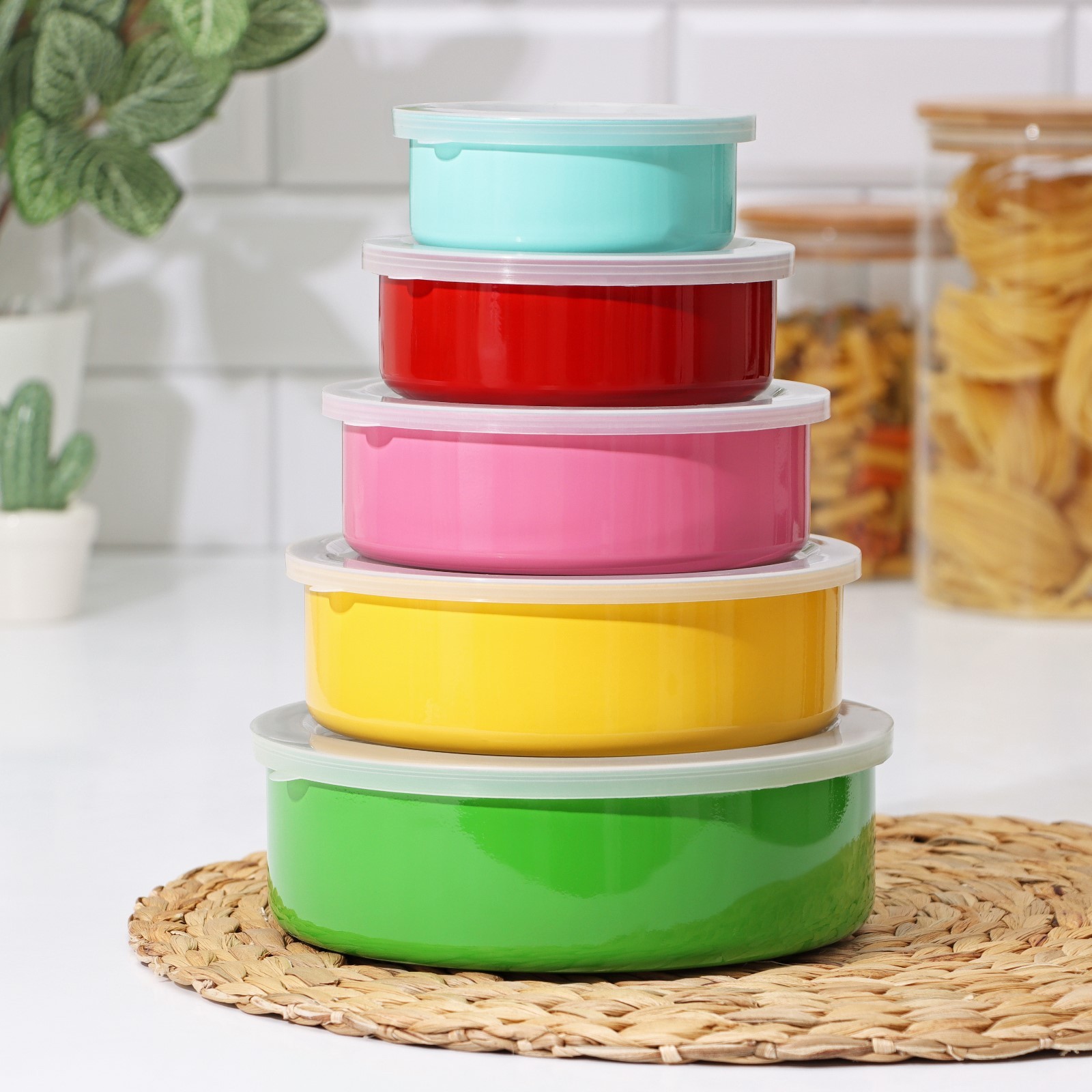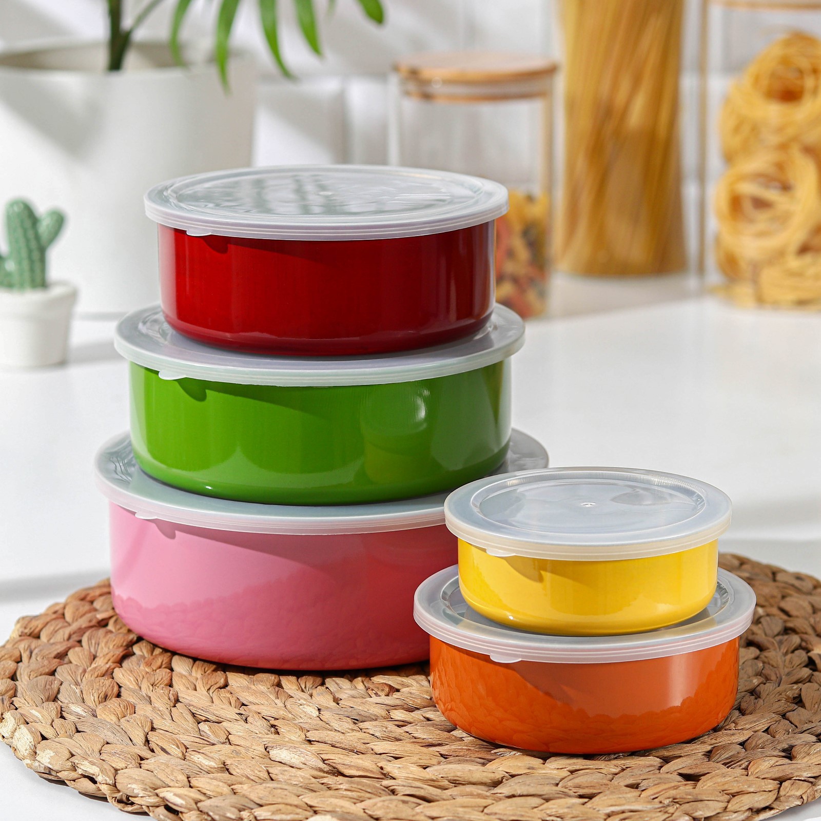 Набор салатников из нержавеющей стали «радуга», 5 шт: D=18/16/14/12/10 см, с крышками, микс