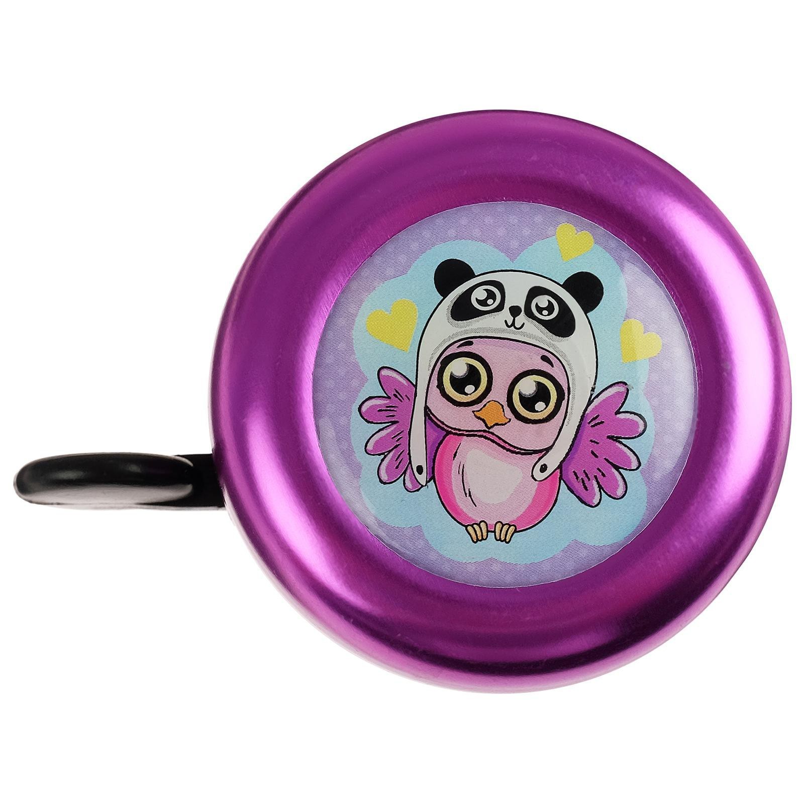 Звонок велосипедный graffiti «совушка». Громкий и узнаваемый звук этого звонка помогает обозначить себя на дороге и сделать езду более безопасной. Широкий язычок звонка удобен при использовании даже в перчатках. Звонок устанавливается на рулевую трубу диаметром от 19 до 26, 4 мм. Материал: стальТип: механический Цвет: Фиолетовый Тип: Механический  развернуть описание ▼