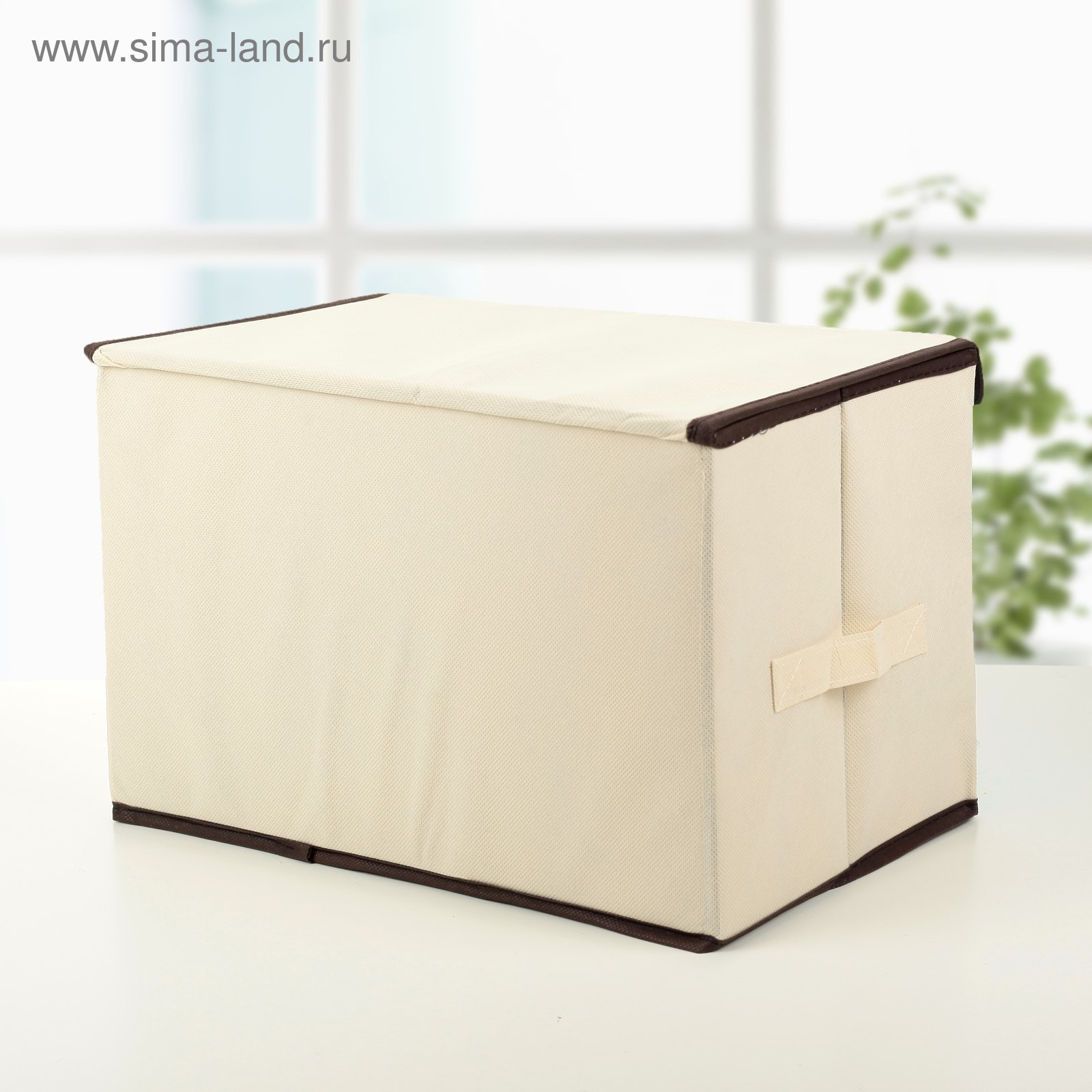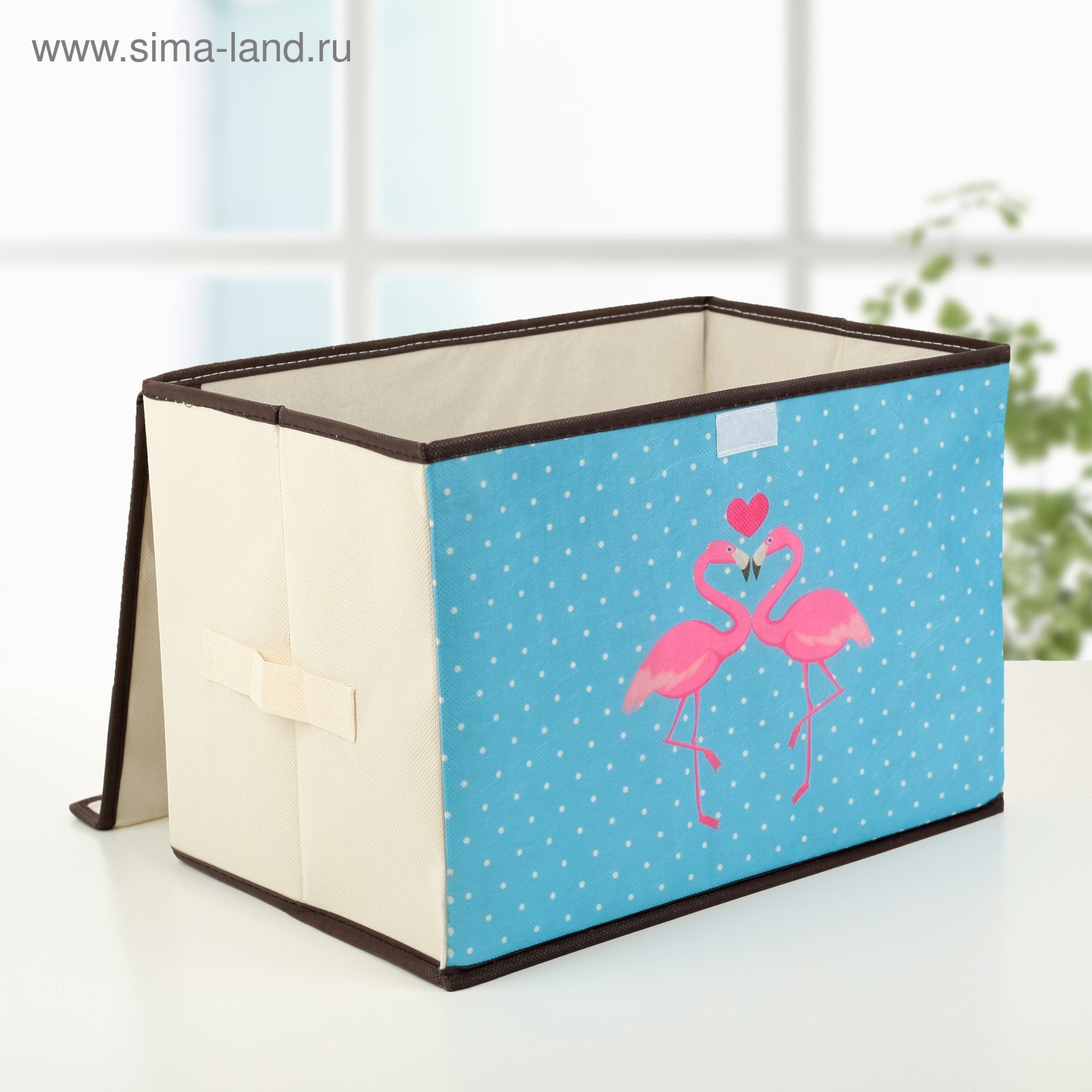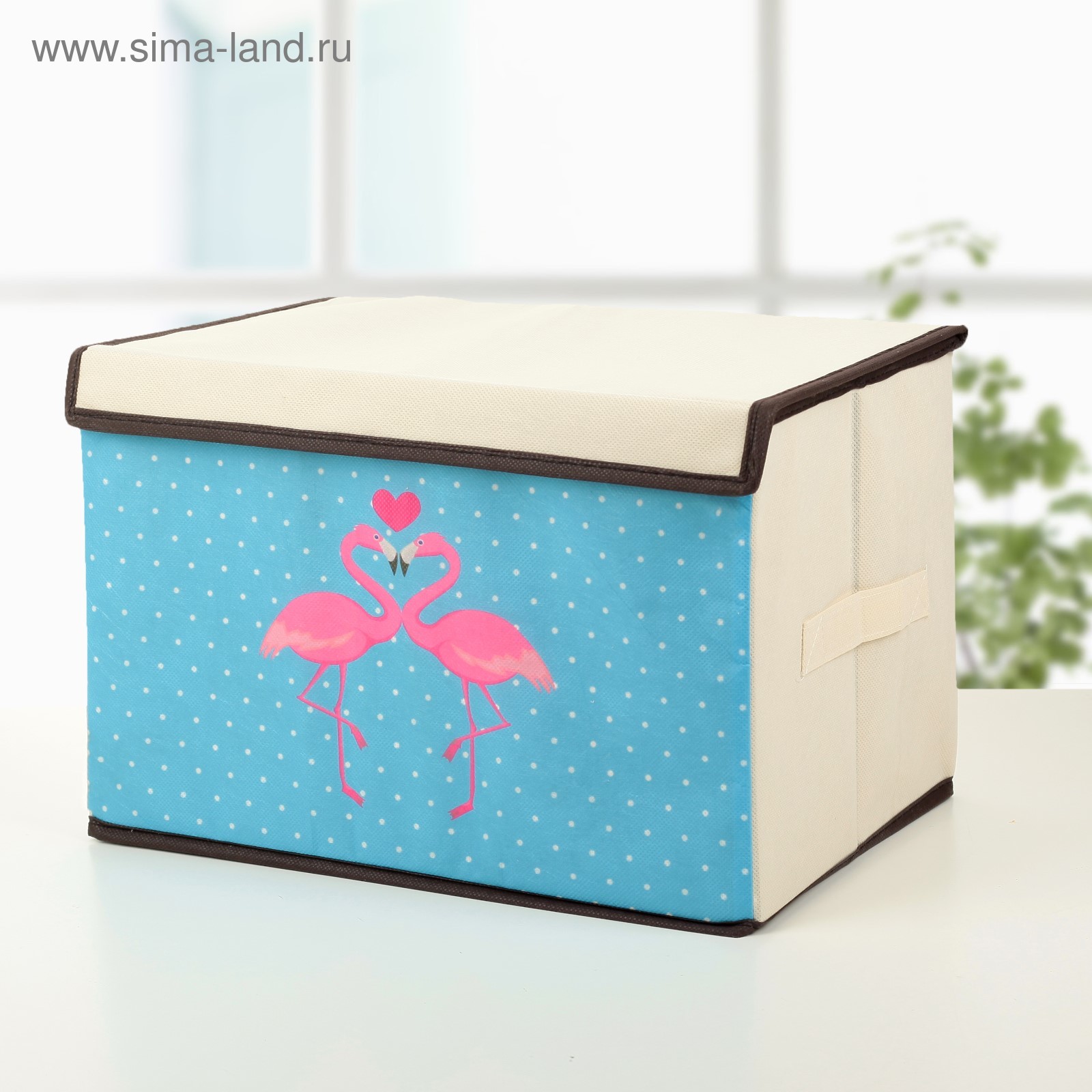 Короб стеллажный для хранения с крышкой «фламинго», 39x25x25 см, цвет бежевый