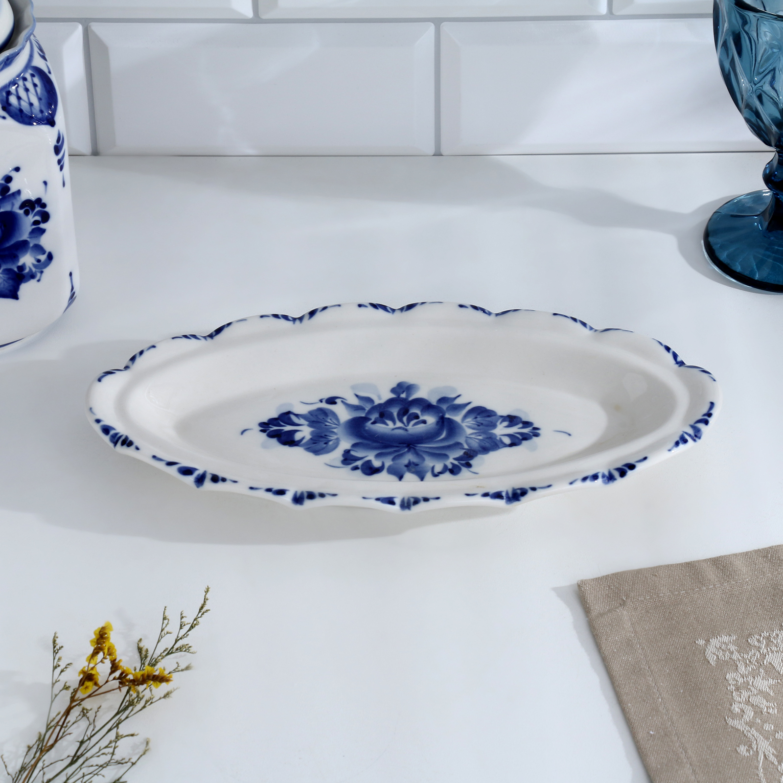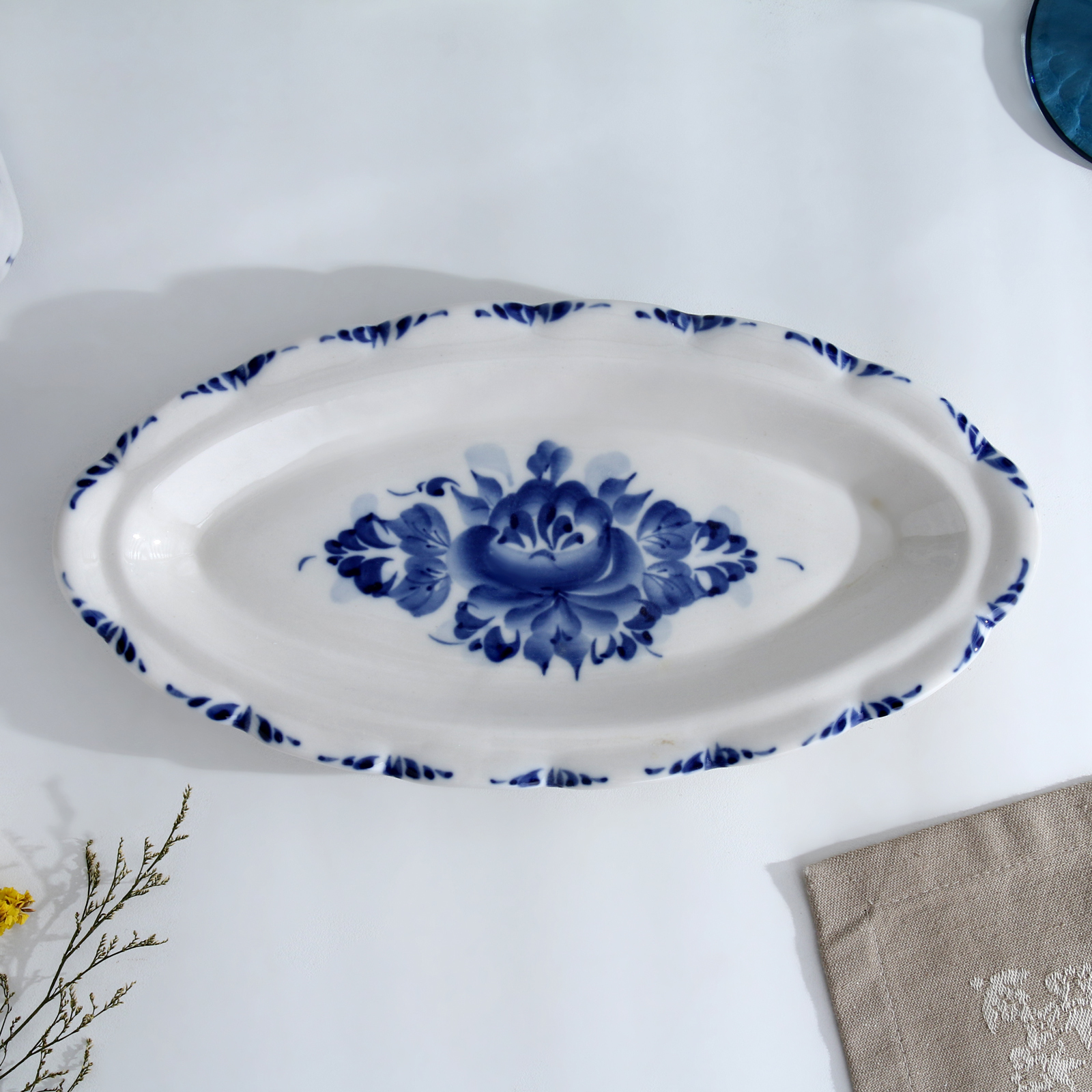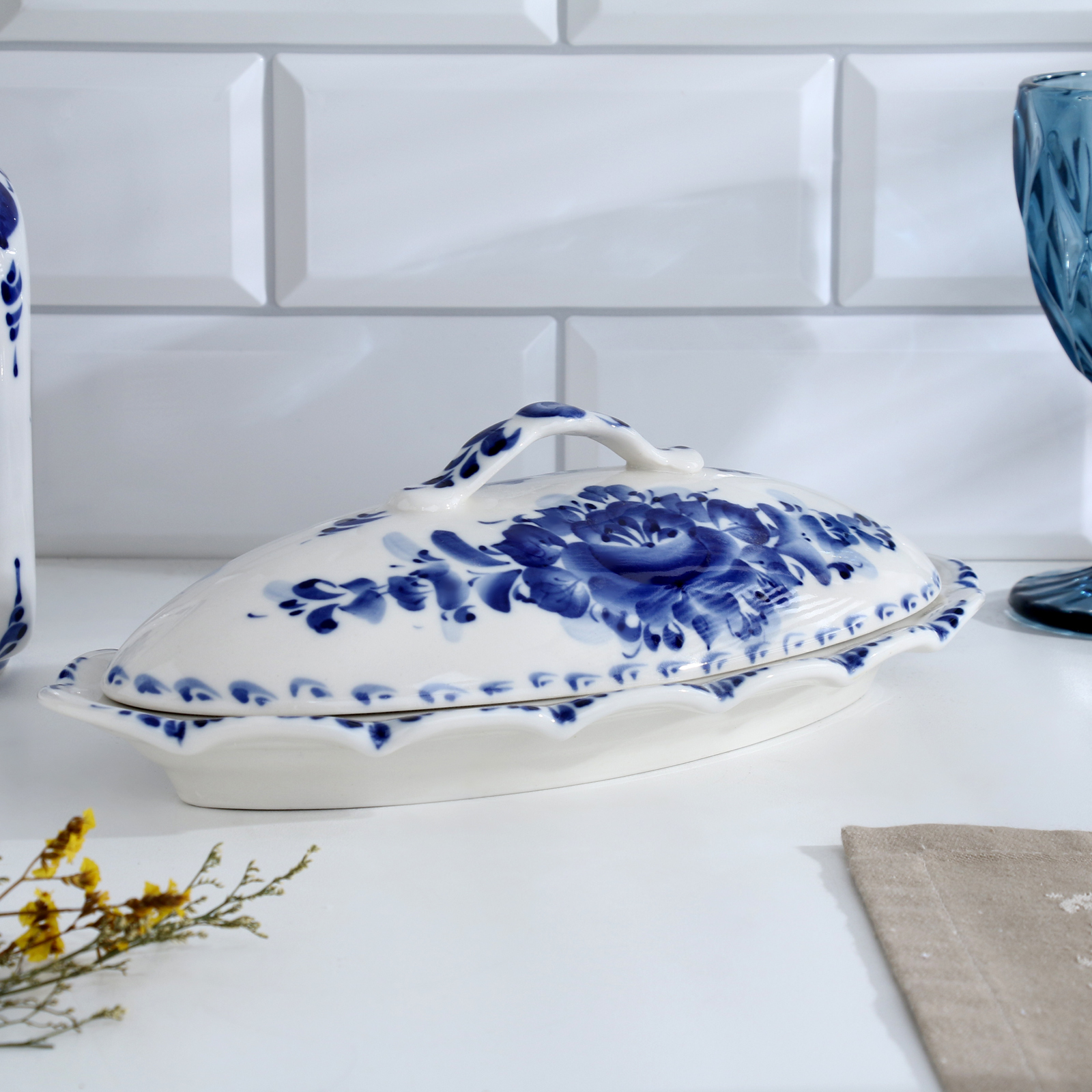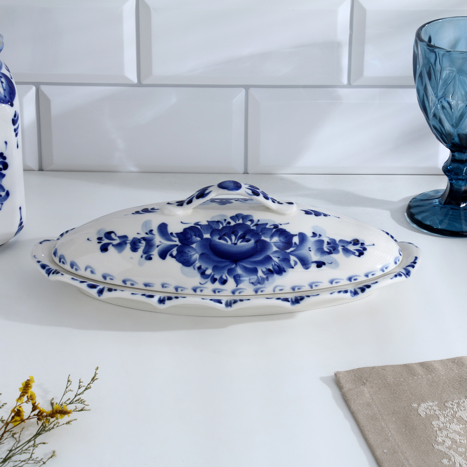 Селёдочница «семейная», с крышкой, 28,5x14,5x9 см, гжель
