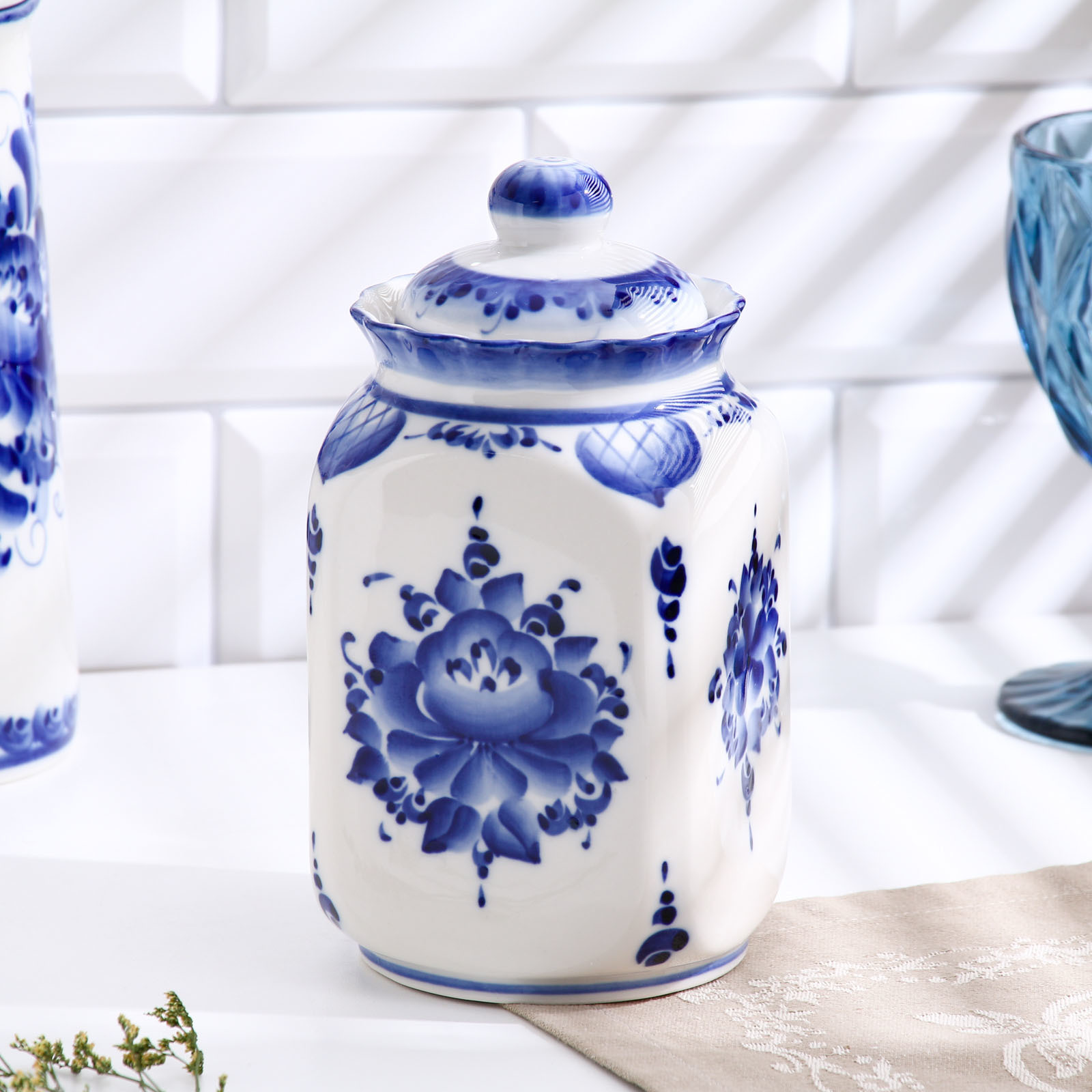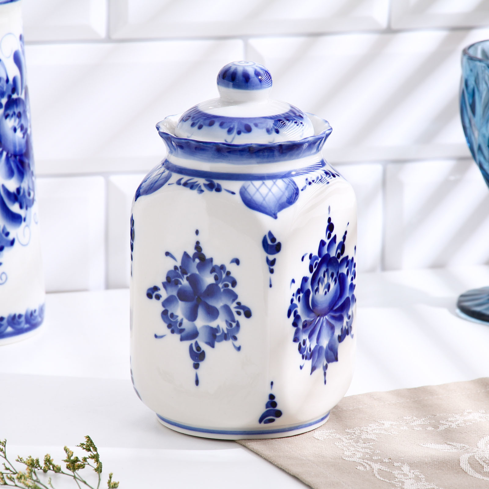 Банка «каскад», для сыпучих продуктов, средняя, 1,25 л, H=19,5 см, гжель