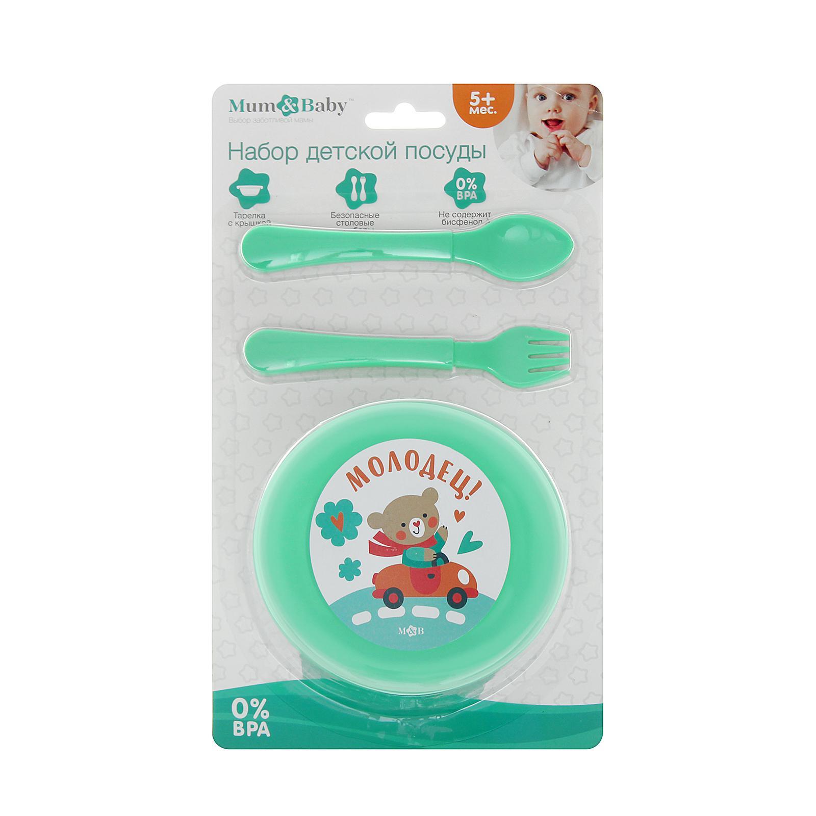 Набор детской посуды «молодец», 4 предмета: тарелка с крышкой, ложка, вилка, от 5 мес.