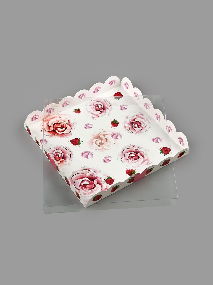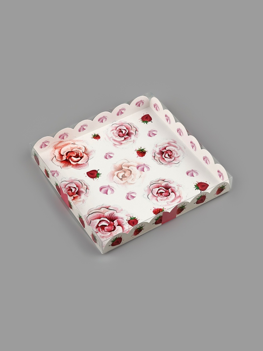 Коробка для печенья, кондитерская упаковка с пластиковой крышкой, «сладости в подарок», 21 х 21 х 3 см