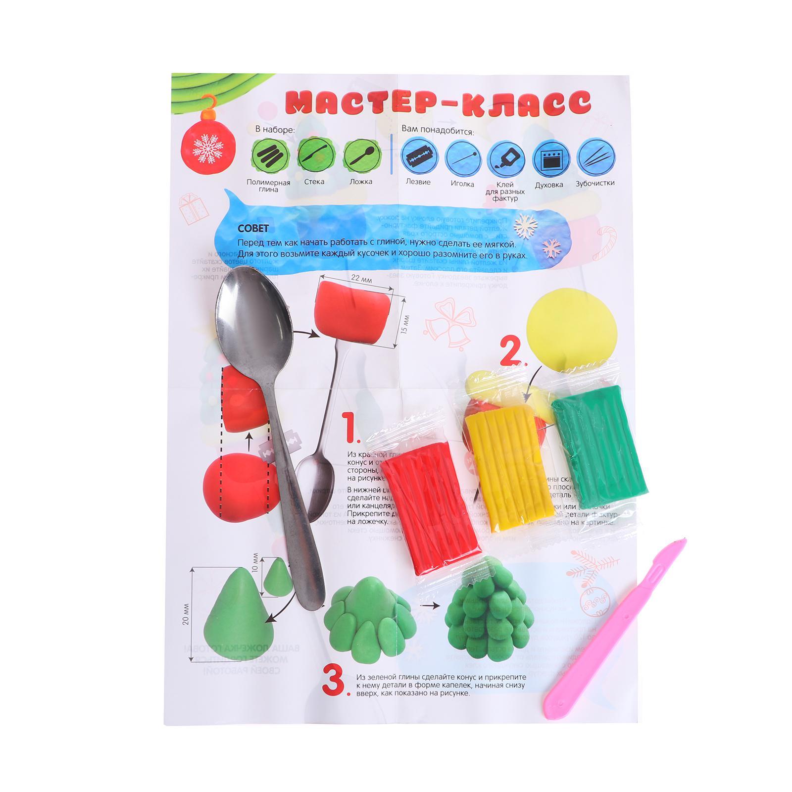 Ложка для декора полимерной глиной на новый год «ёлочка», набор для творчества