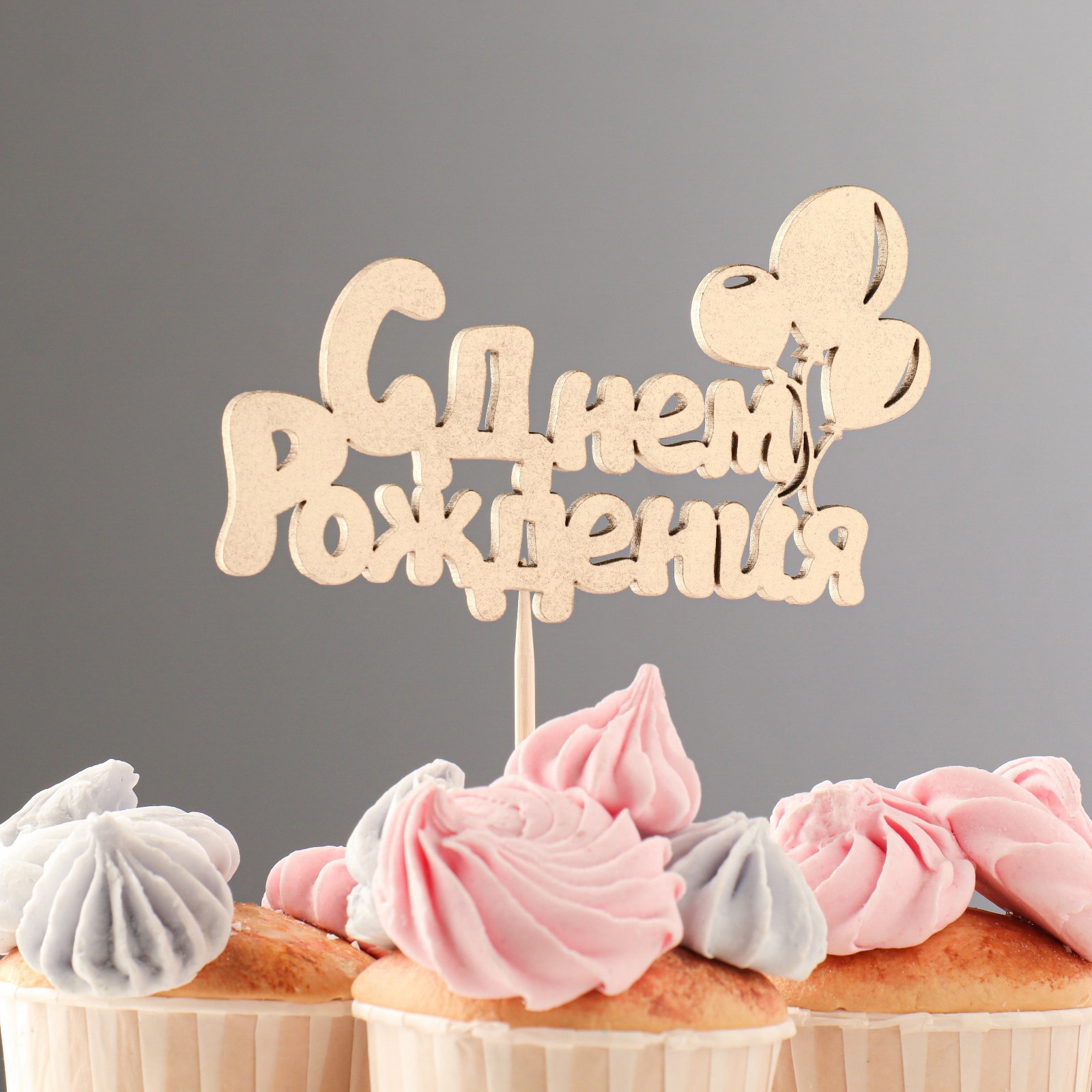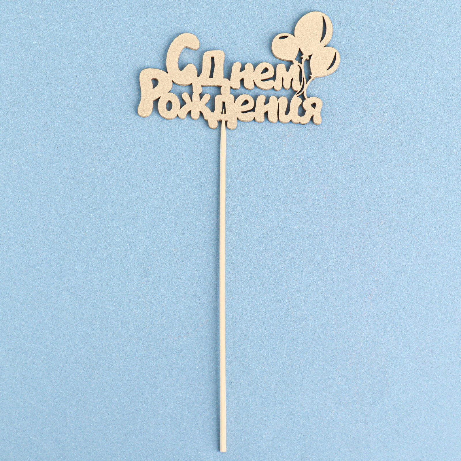 Топпер "с днём рождения, связка шариков" на подвесе, золотой дарим красиво
